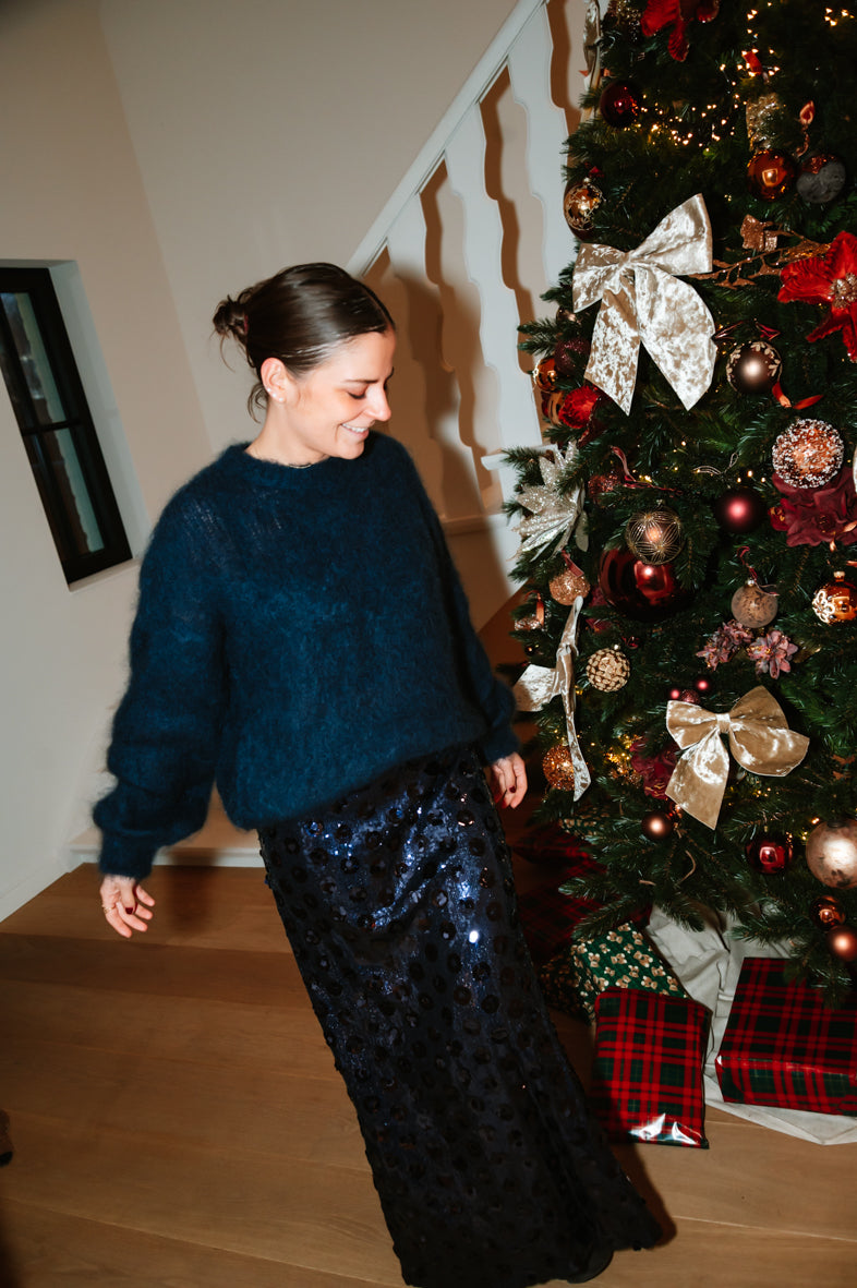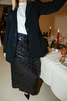 Découvrez la Jupe VICTOIRE, une pièce qui allie élégance et confort. Ses sequins fleurs scintillants créent un effet captivant à chaque mouvement, tandis que sa taille élastique épouse parfaitement votre silhouette. Disponible en S, M et L, cette jupe longue est votre allié pour briller sans compromis.