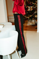 Découvrez le Pantalon AURORA, coupé dans une matière fluide et élégante, il arbore une bande bordeaux scintillante à sequins sur les côtés pour une touche de sophistication. Disponible en S, M et L, ce pantalon noir intemporel se réinvente avec style et glamour.