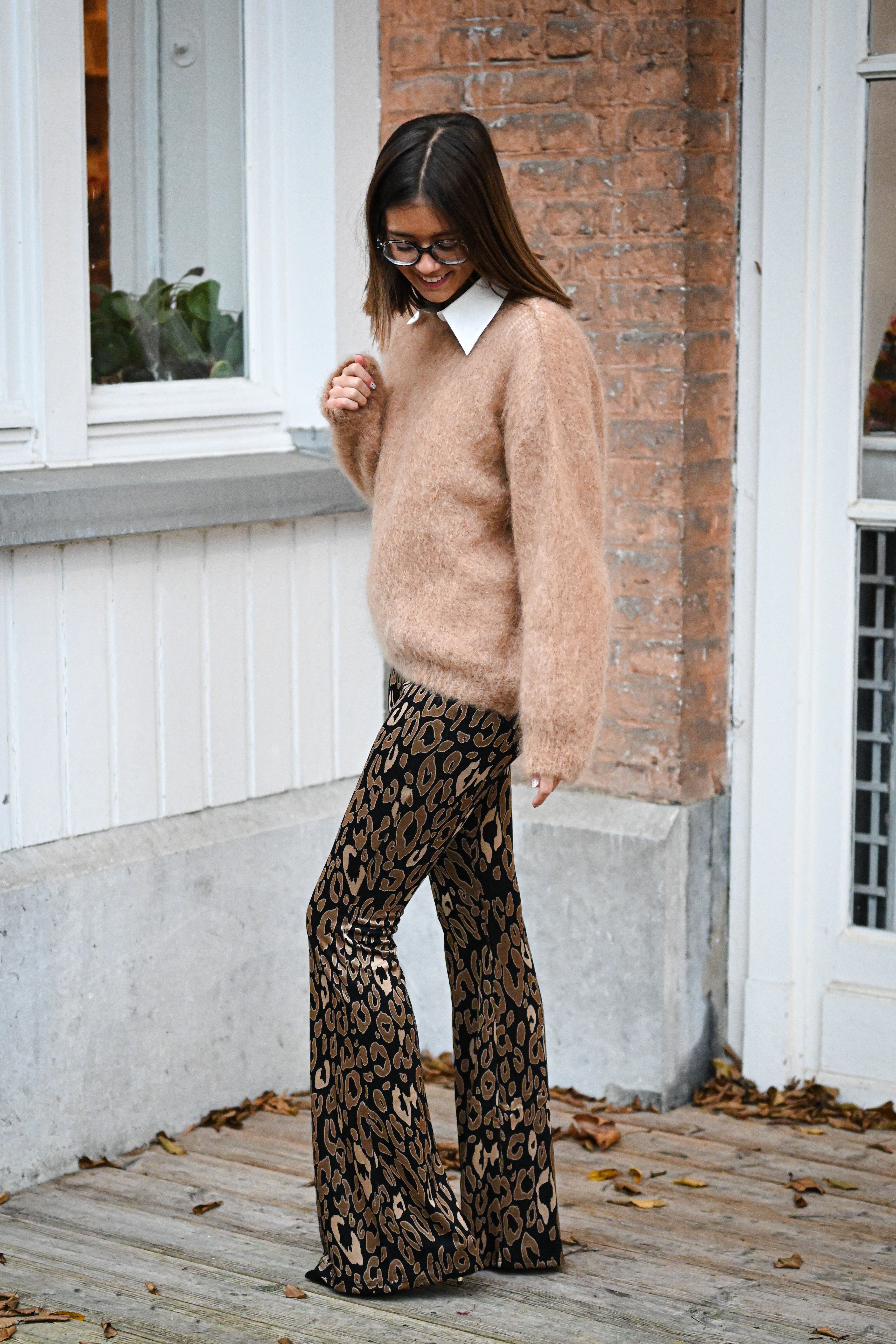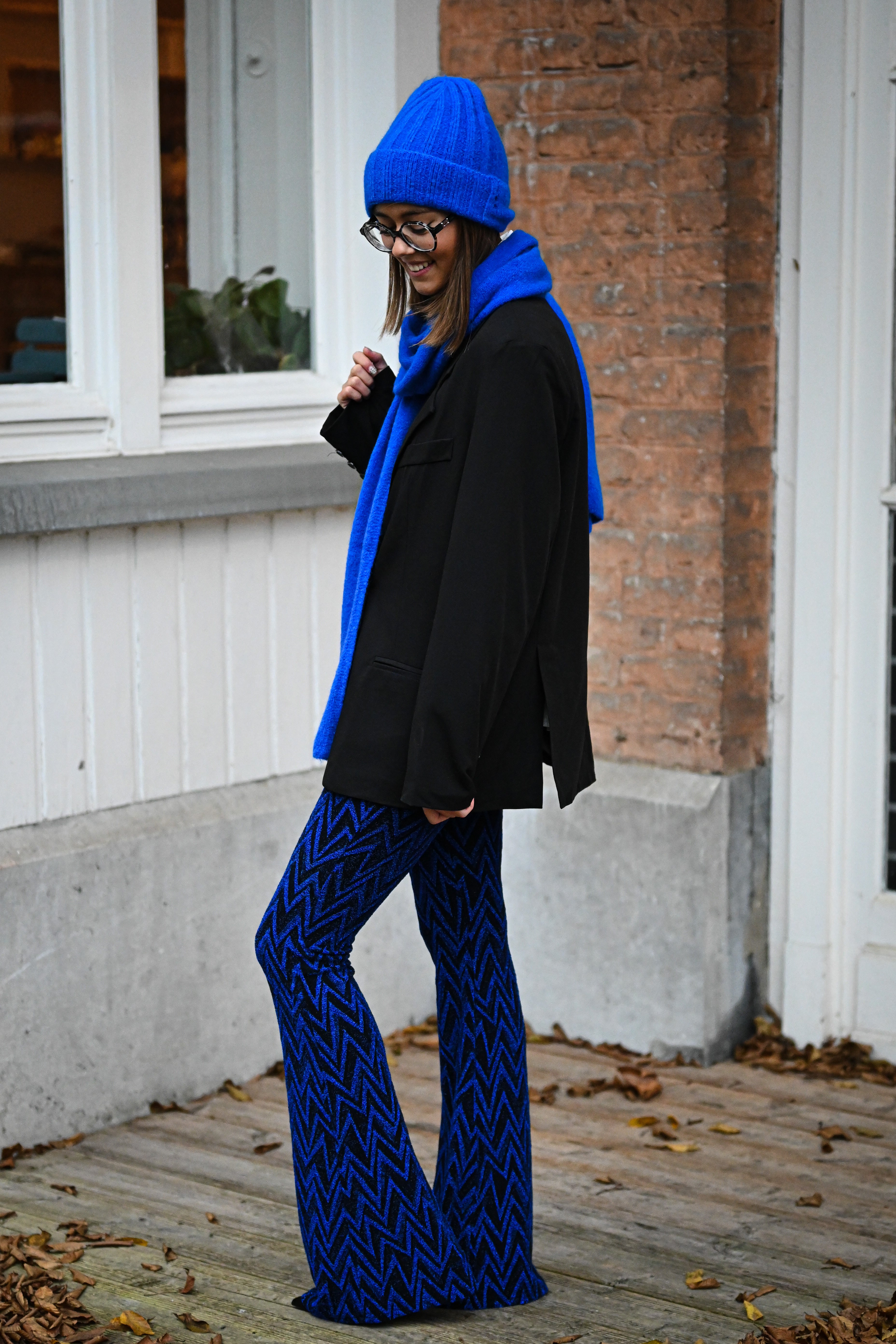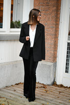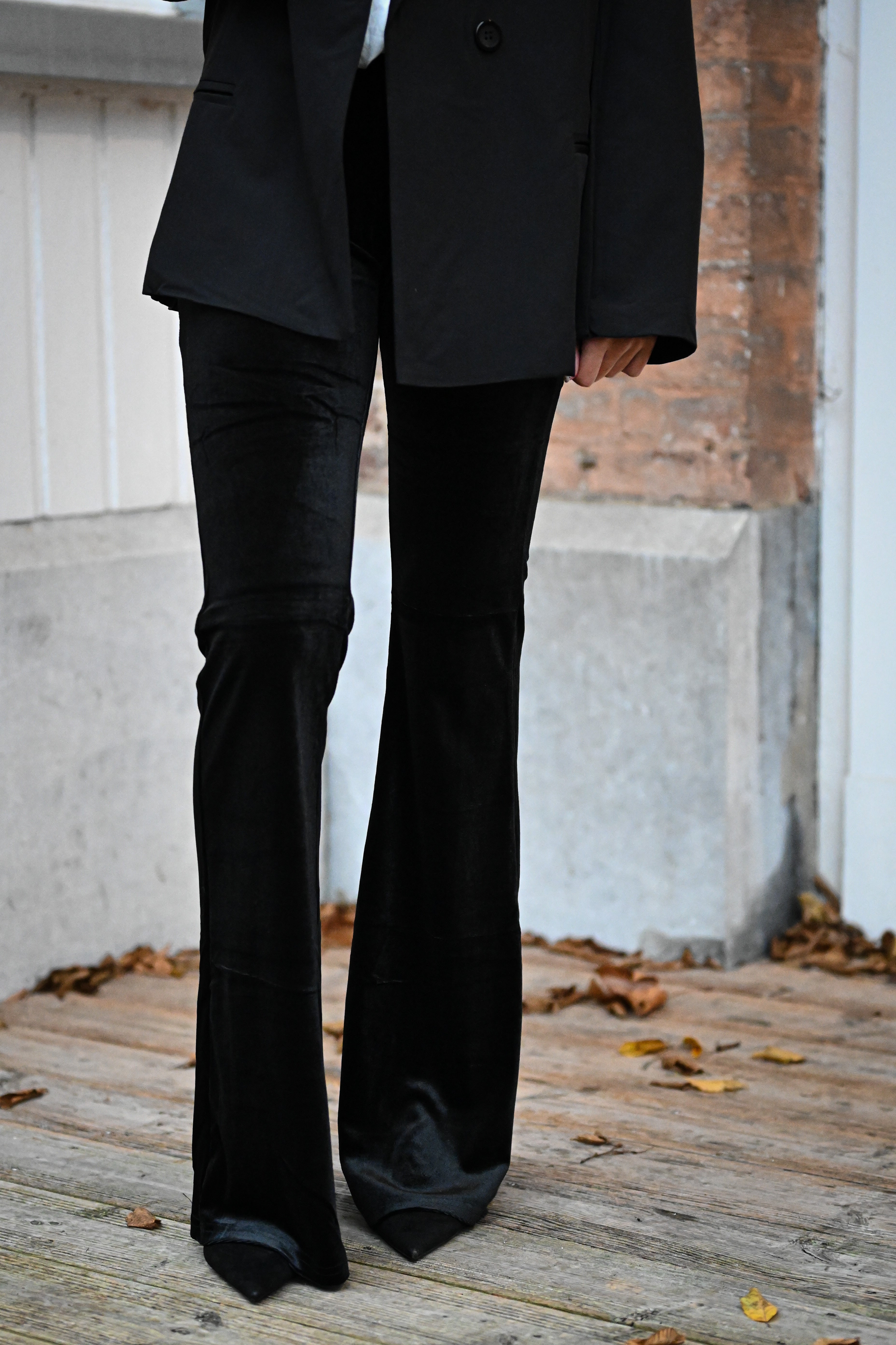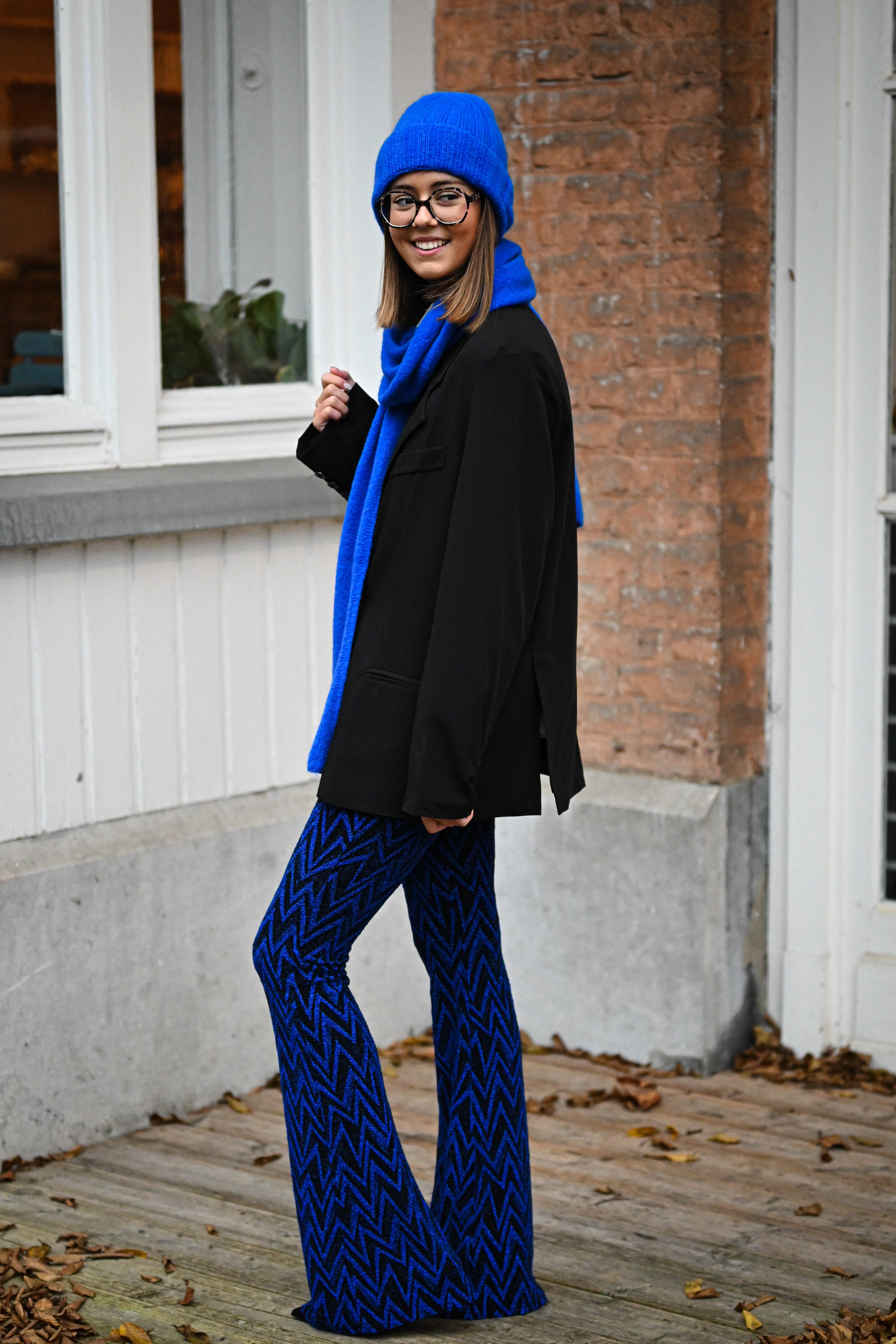 Ce pantalon est proposé en plusieurs couleurs et motifs, avec une coupe ajustée sur les cuisses et évasée en bas. Confectionné dans une matière douce et extensible, il assure un confort optimal. Disponible en tailles S, M et L.