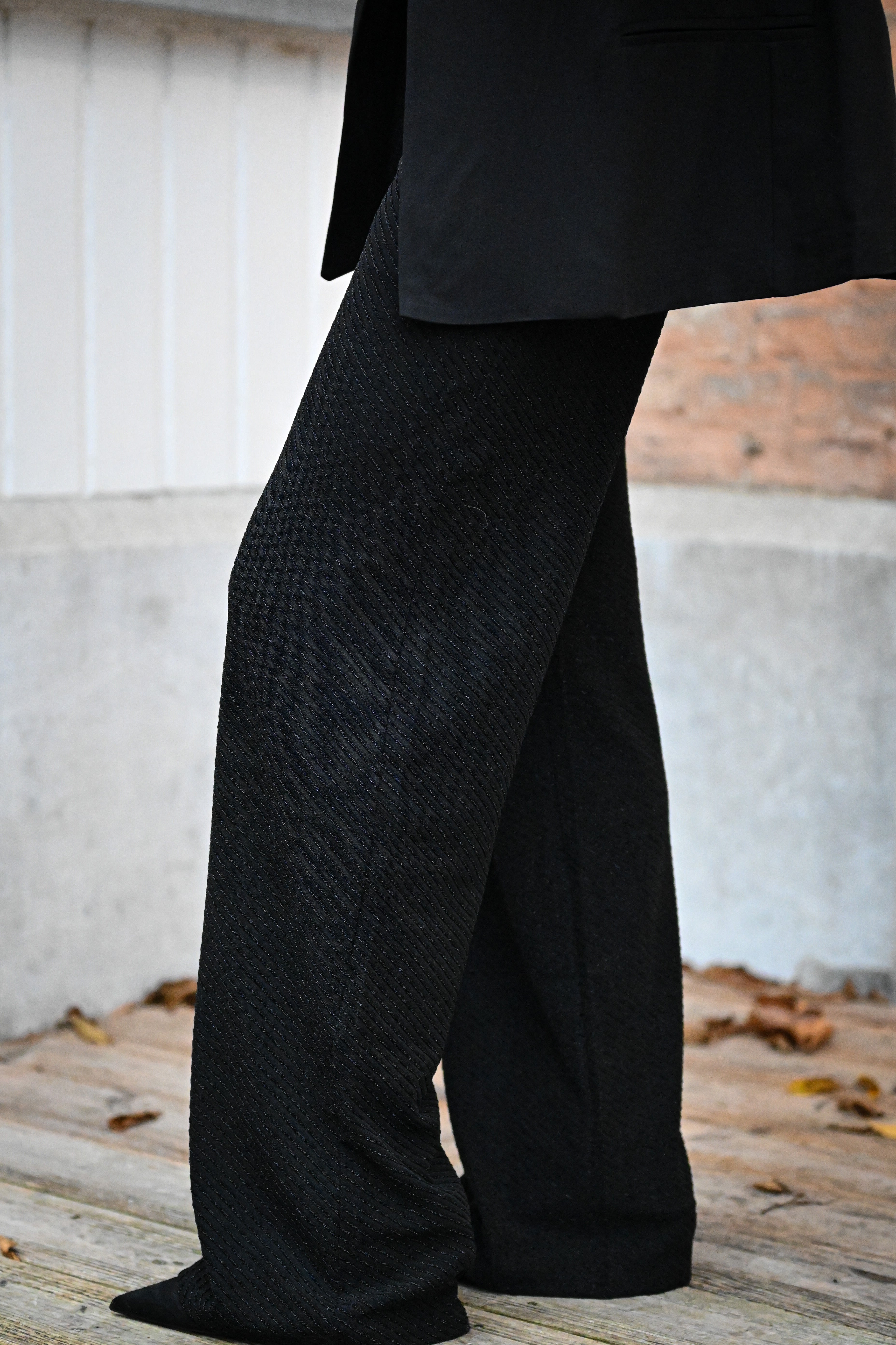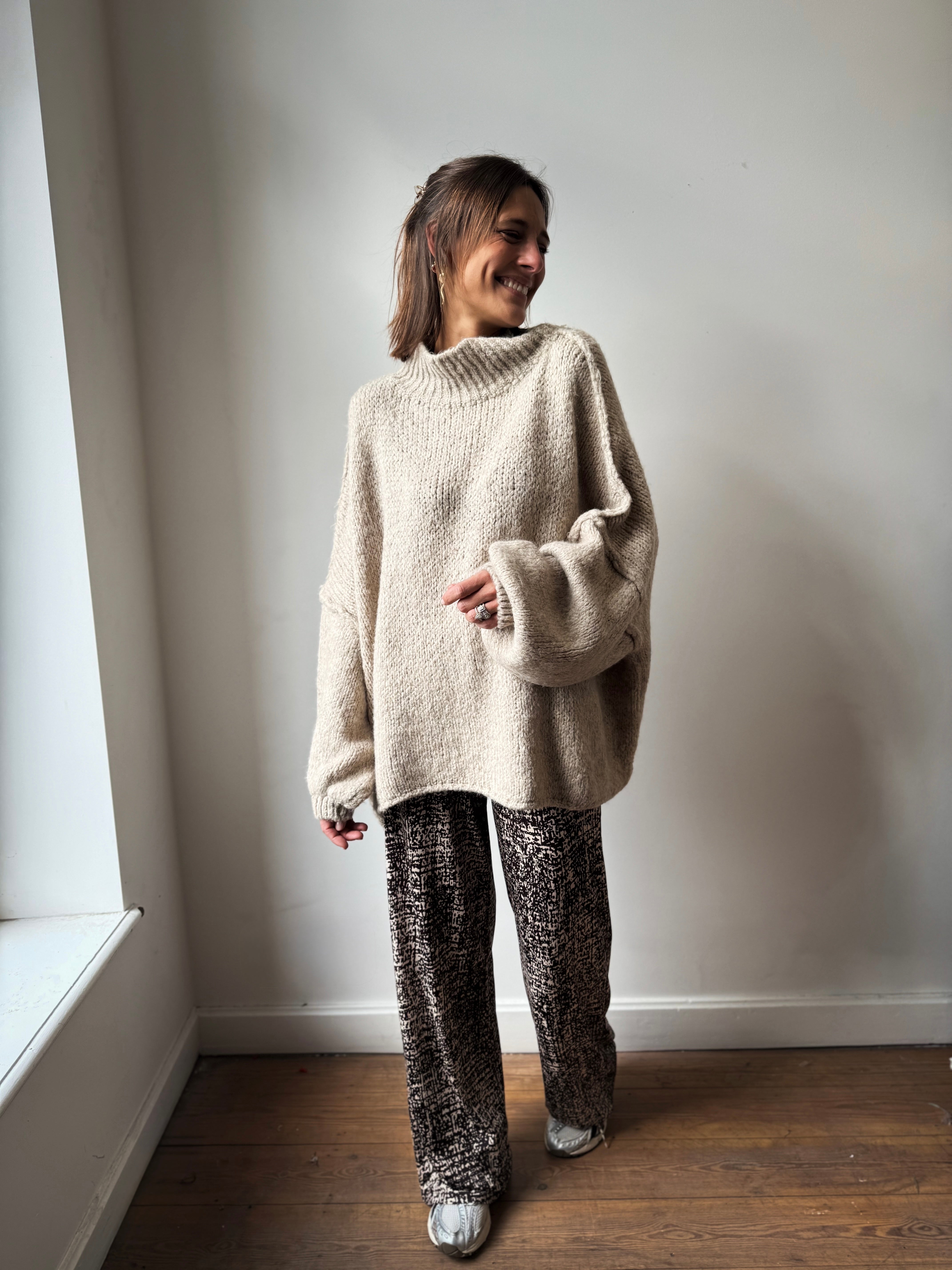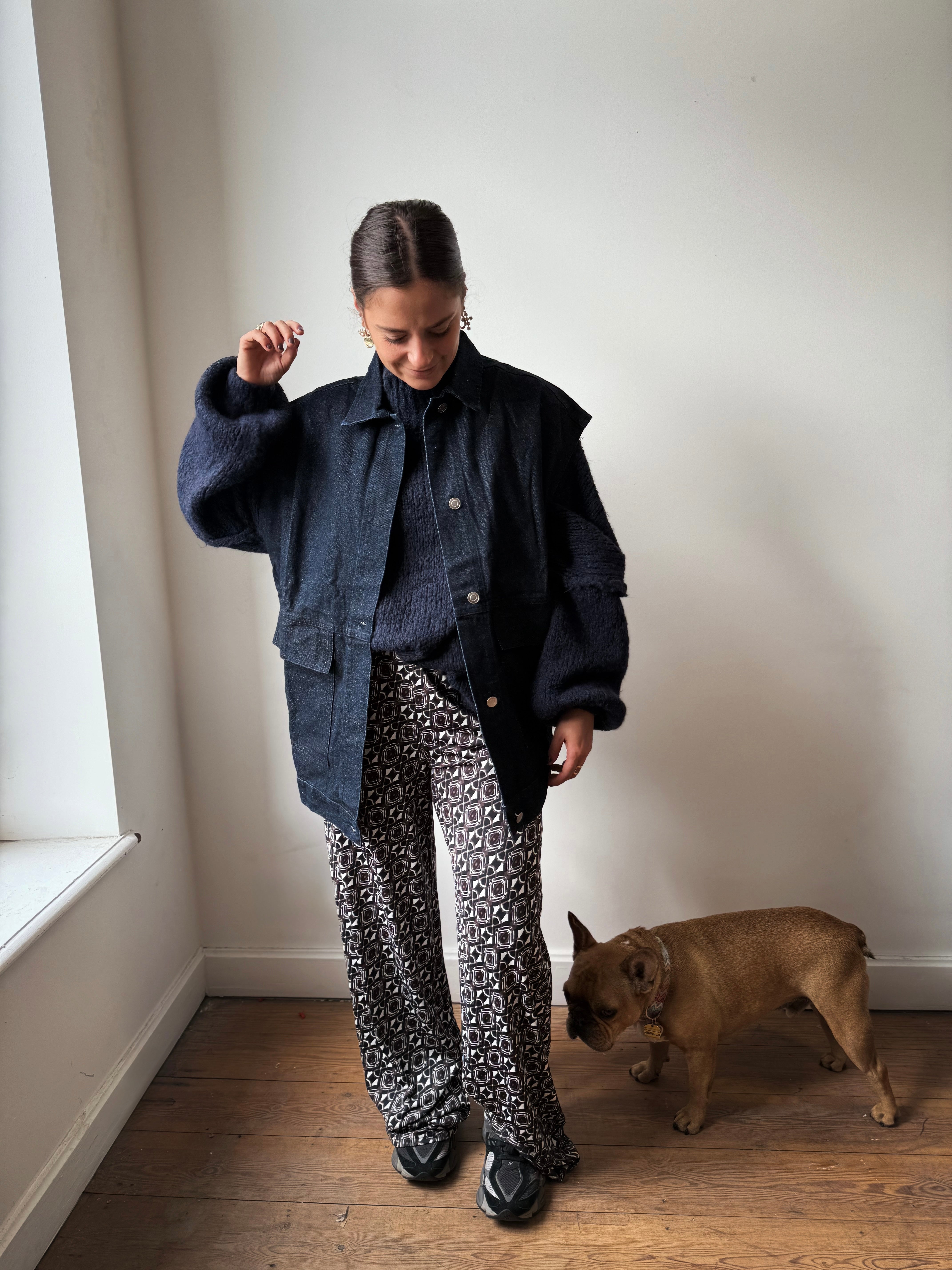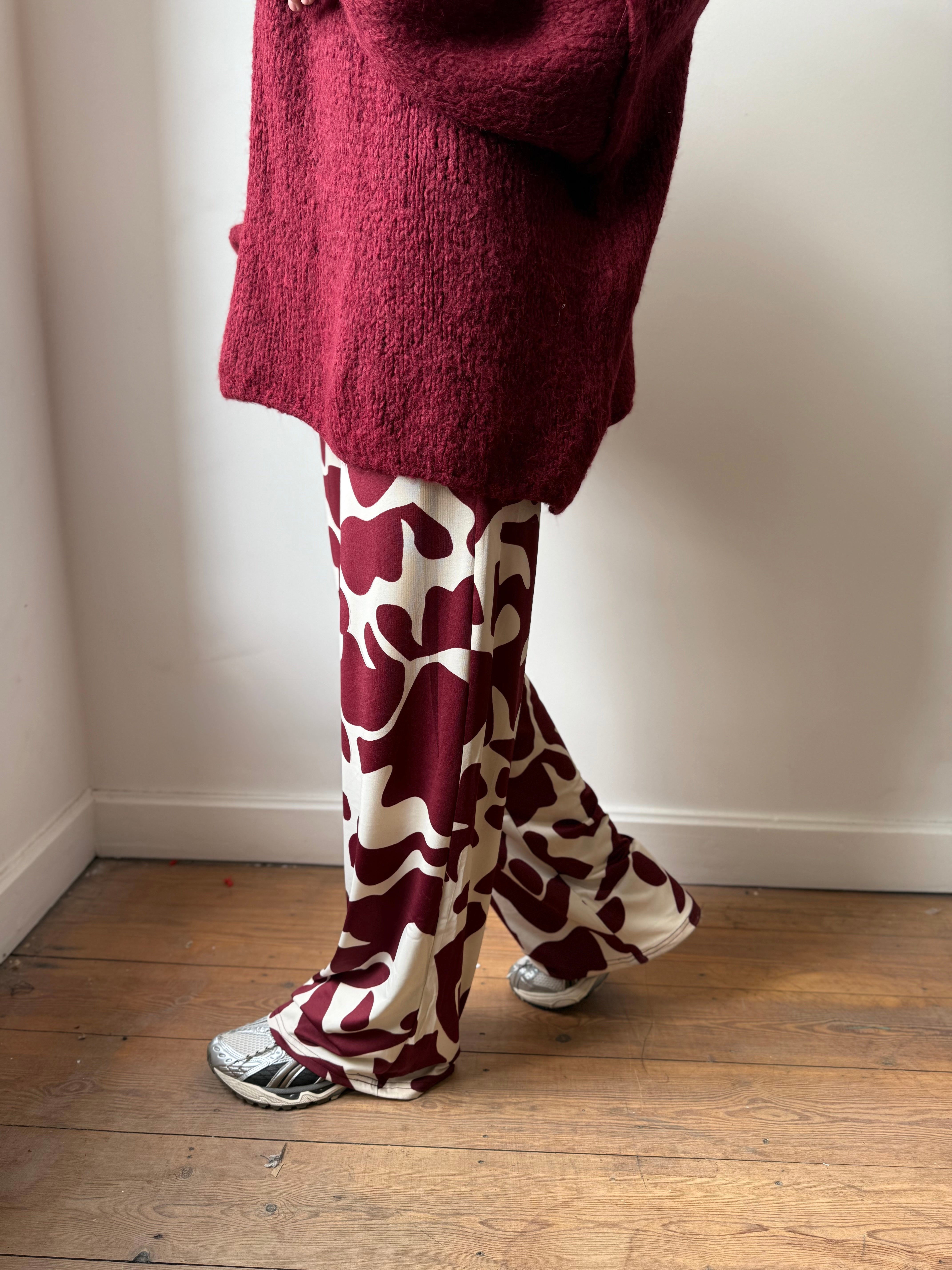 Ce pantalon ample et léger, orné d'un motif élégant, est muni d'une taille élastiquée pour un confort optimal. Disponible en tailles S, M et L, il convient parfaitement à diverses silhouettes.