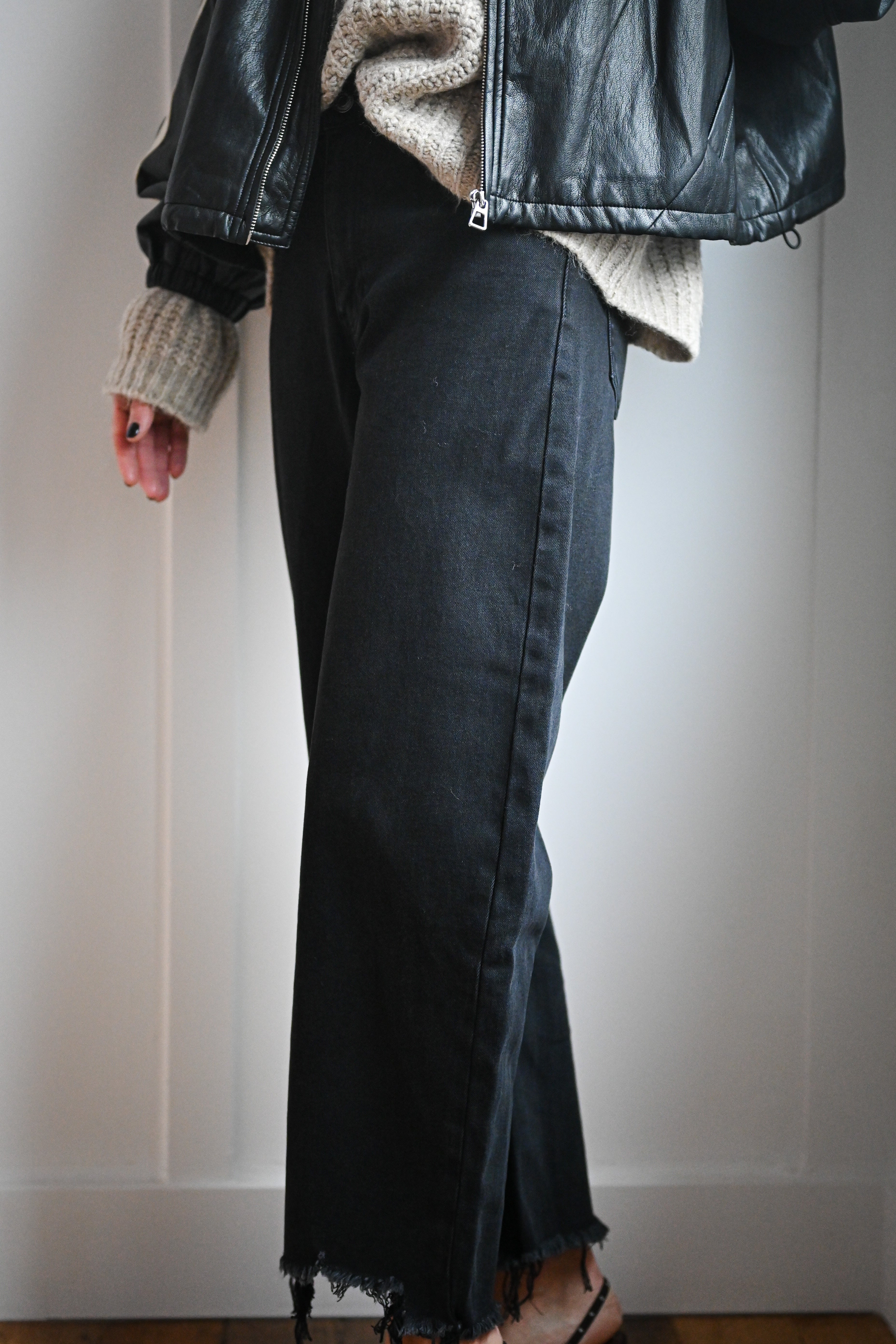 Découvrez le Jeans DEMI, un incontournable de la garde-robe moderne. Avec sa coupe droite intemporelle et sa longueur légèrement raccourcie, il épouse parfaitement votre silhouette. Le détail déchiré au bas ajoute une touche d'attitude urbaine à votre look. Disponible de la taille 34 à 42, ce noir profond se marie avec tout. Un jean polyvalent qui passe du casual au chic en un instant.