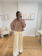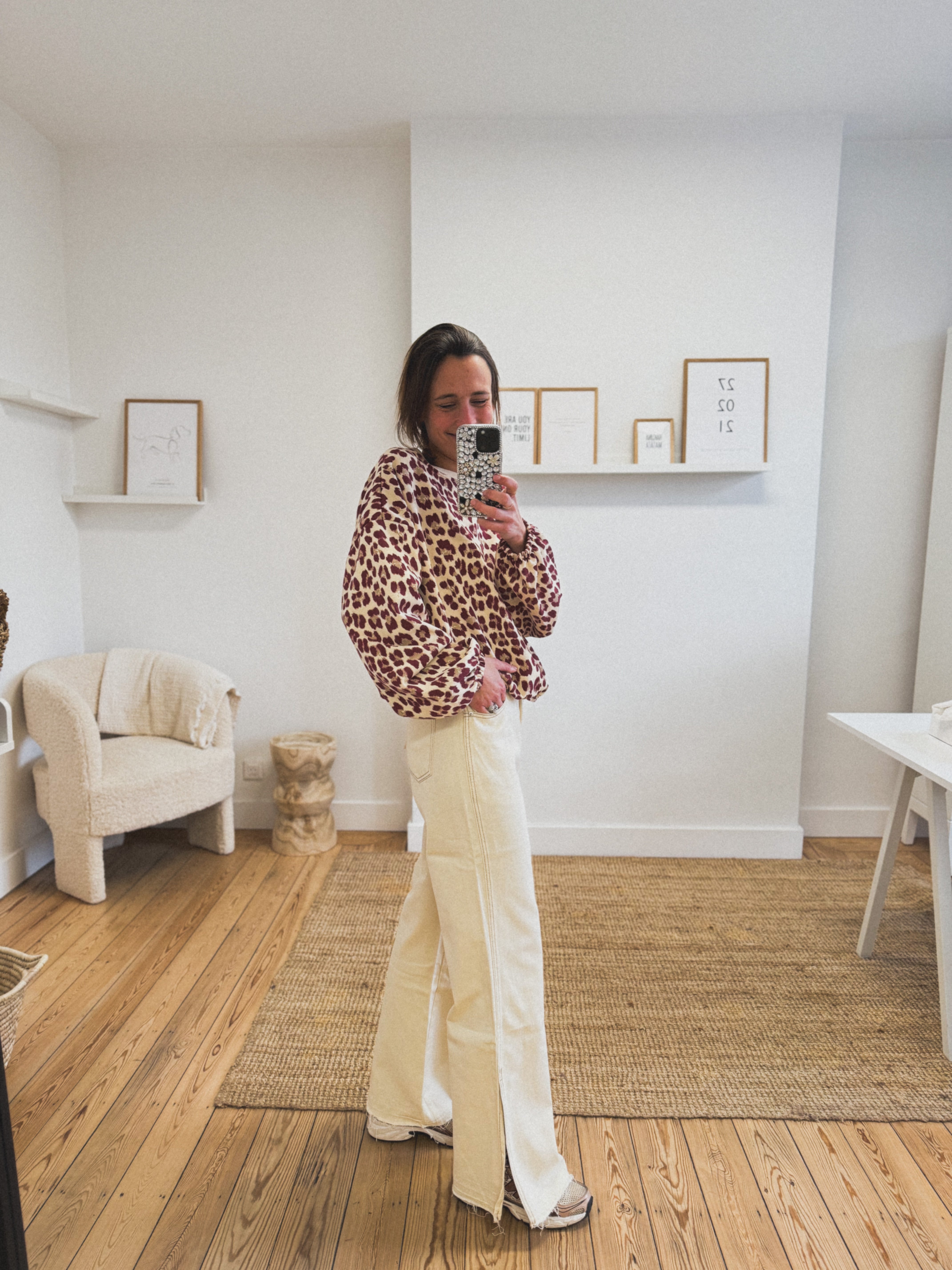 Ce jean beige est orné de coutures brunes qui soulignent son design. Sa finition avec un bord coupé apporte une touche stylée et moderne à votre tenue.