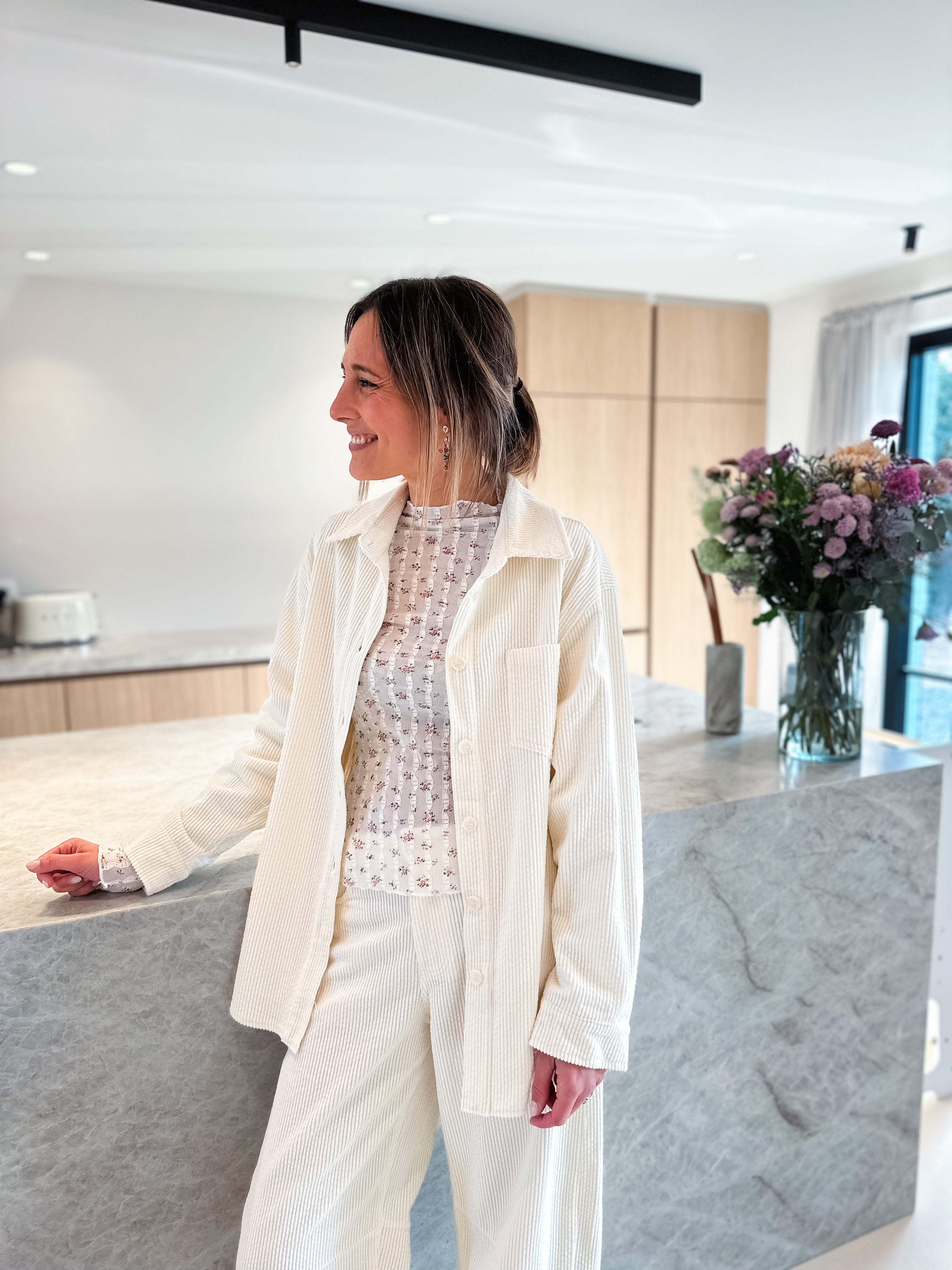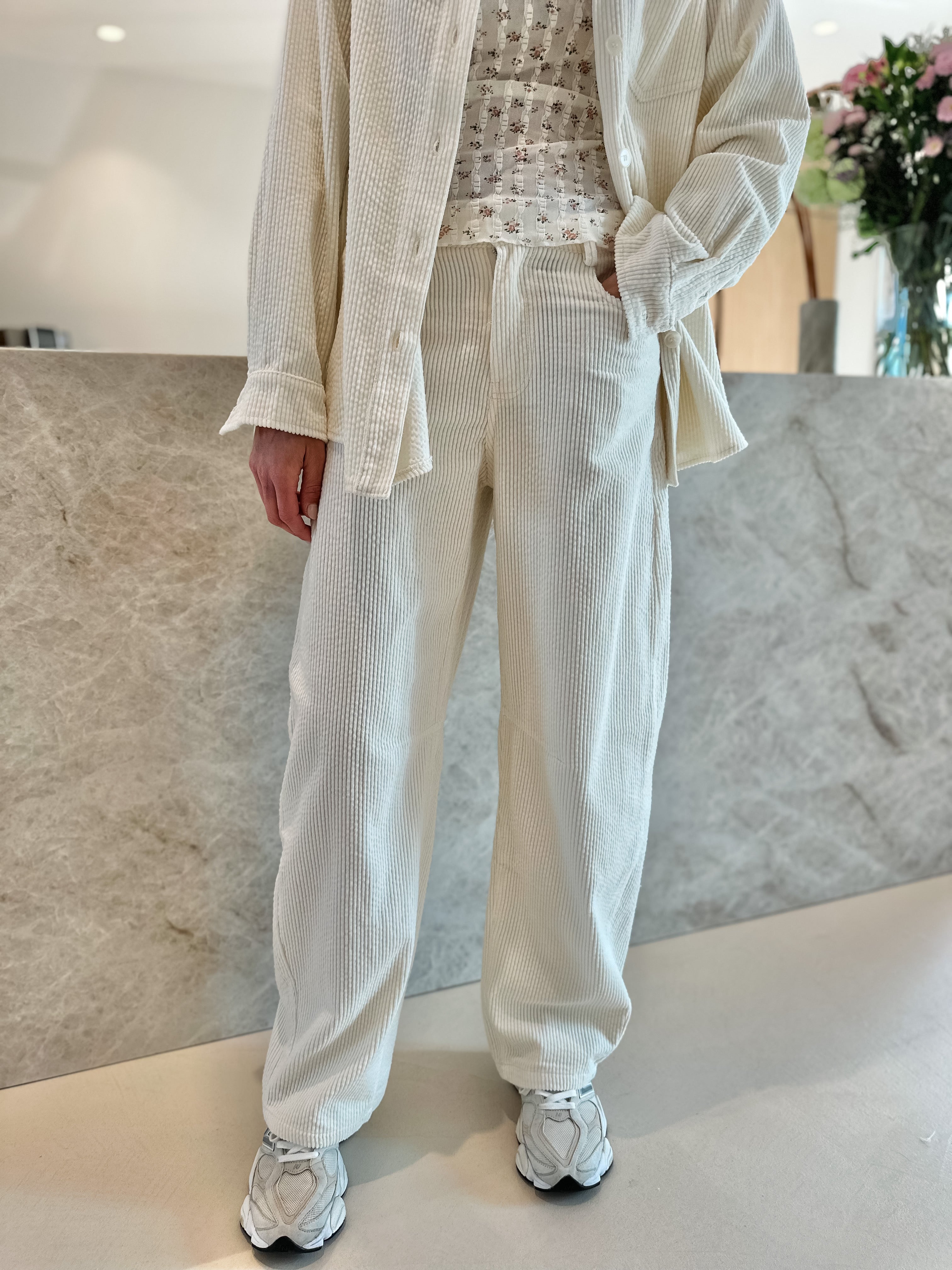 Pantalon en velours blanc cassé. Coupe plutôt large et courte. Disponible en taille S, M et L.