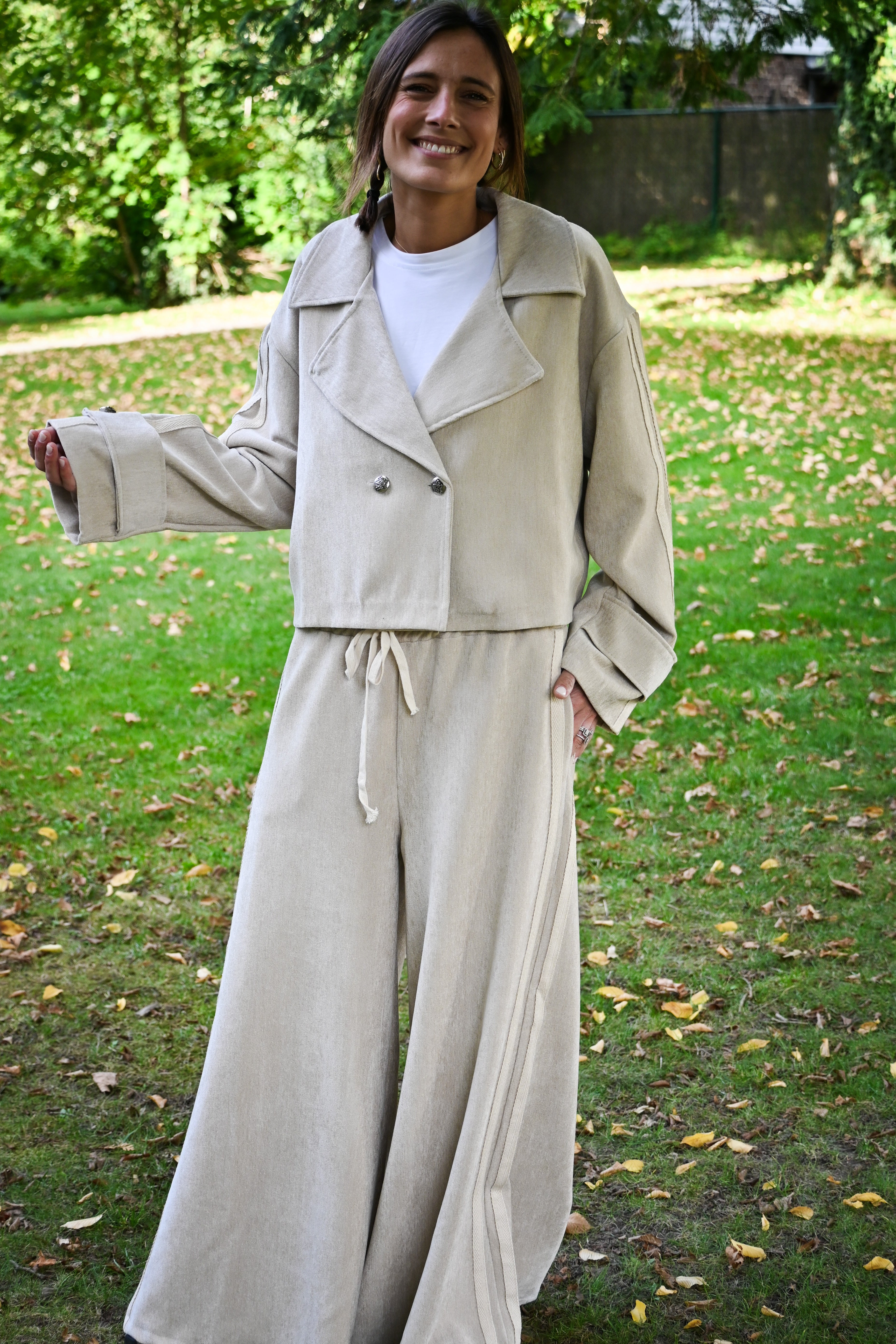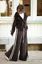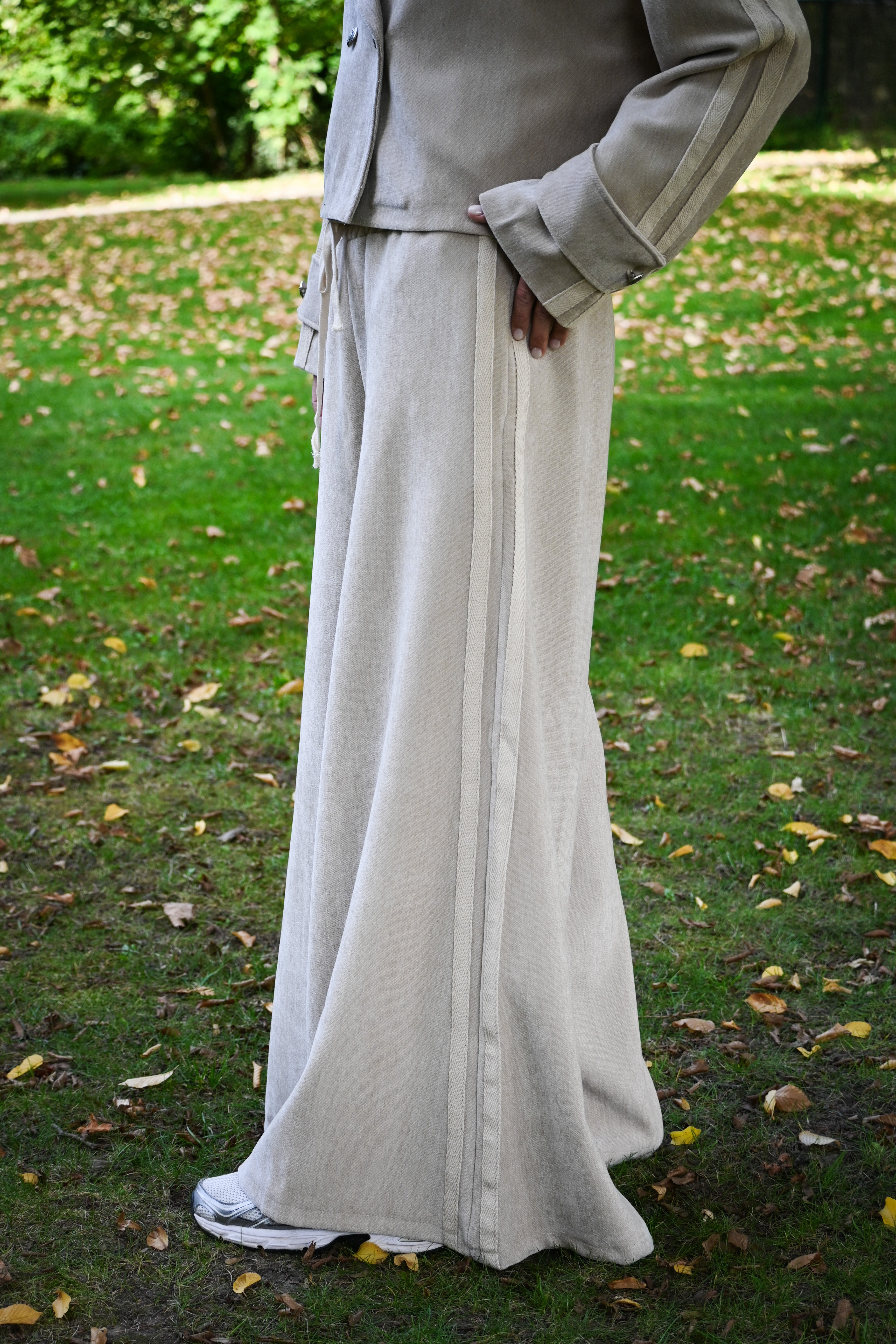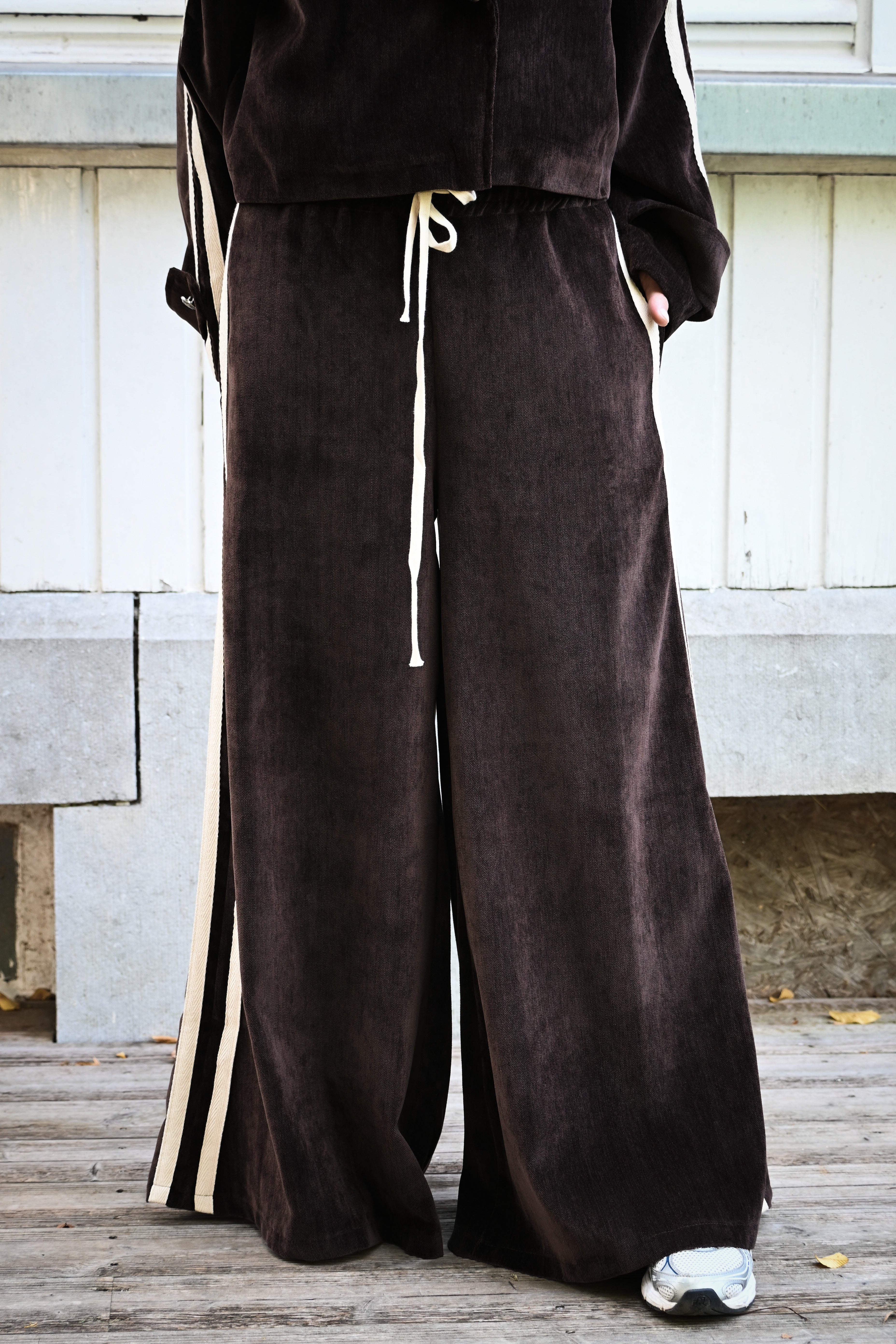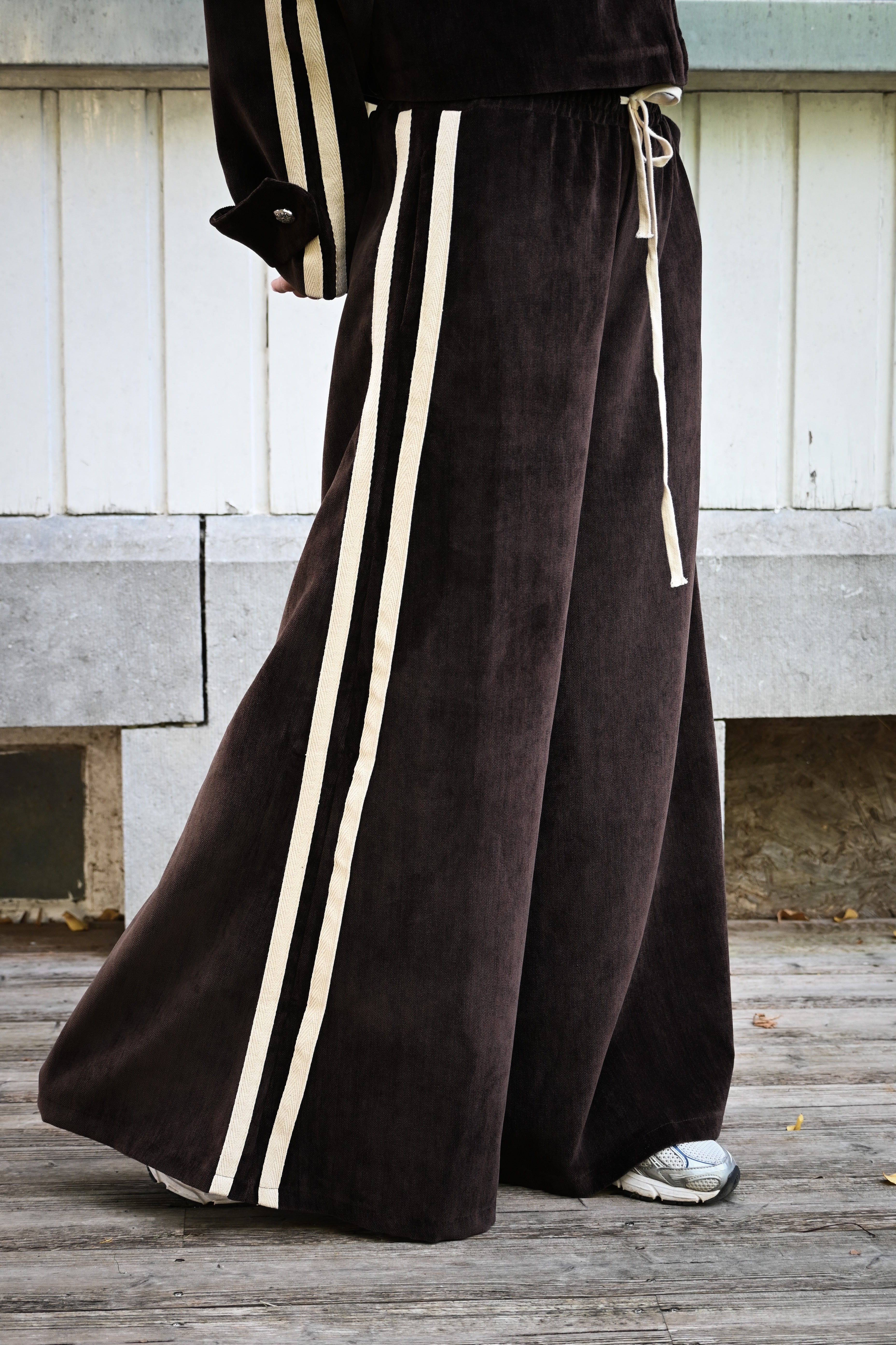 Pantalon ample doté d’une ceinture élastiquée en velours et d’une bande latérale. Disponible uniquement en taille unique, il s’ajuste aisément pour un confort optimal.