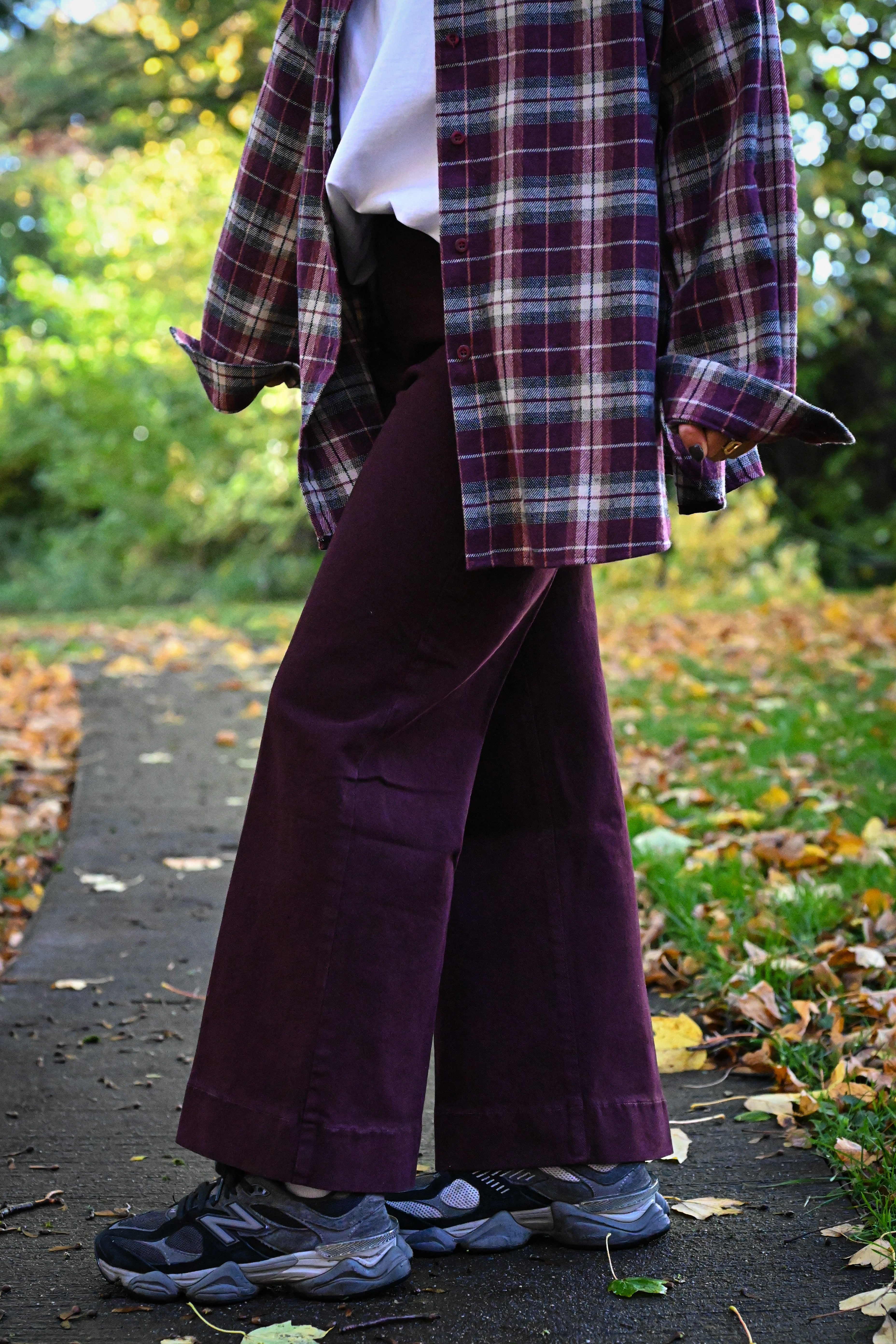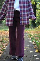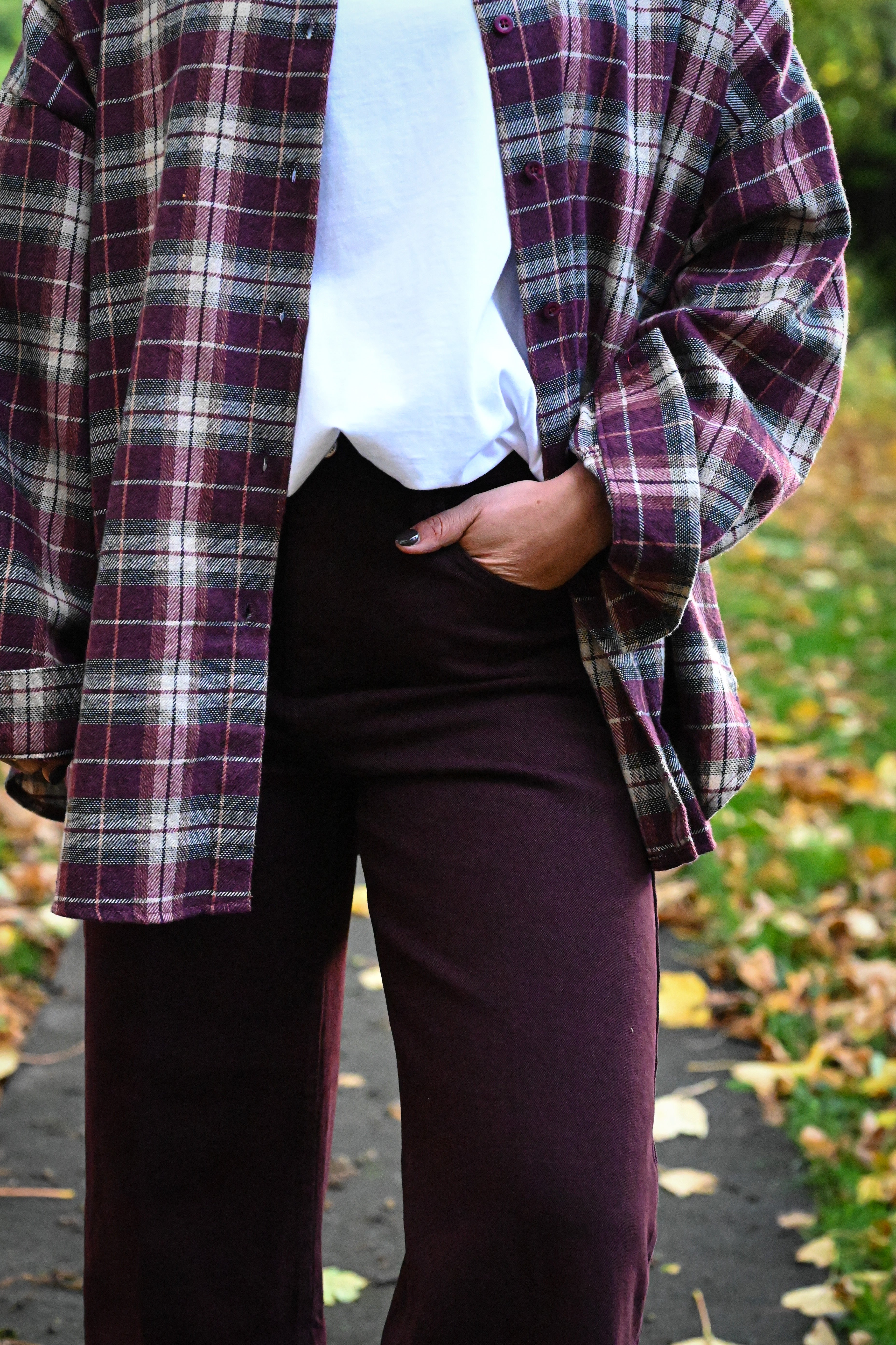 Découvrez le pantalon bordeaux en toile jeans, doté d'une coupe droite élégante et d'un ourlet 3/4 large au bas. Disponible du 34 au 42, il allie style et confort pour sublimer toutes vos tenues.