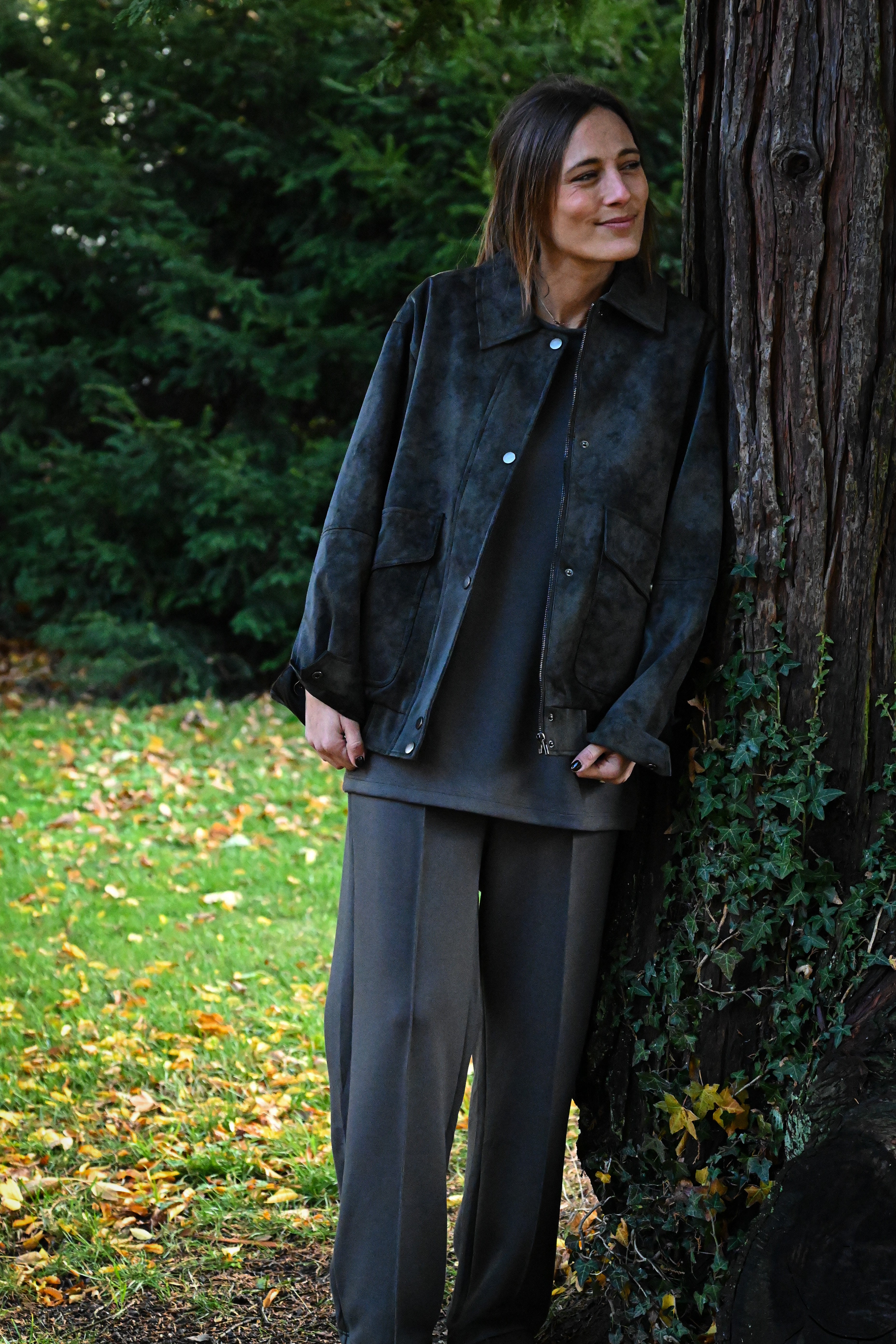 Composition : 48% polyester, 45% viscose et 7% élasthanne. Laver à 30 degrés.