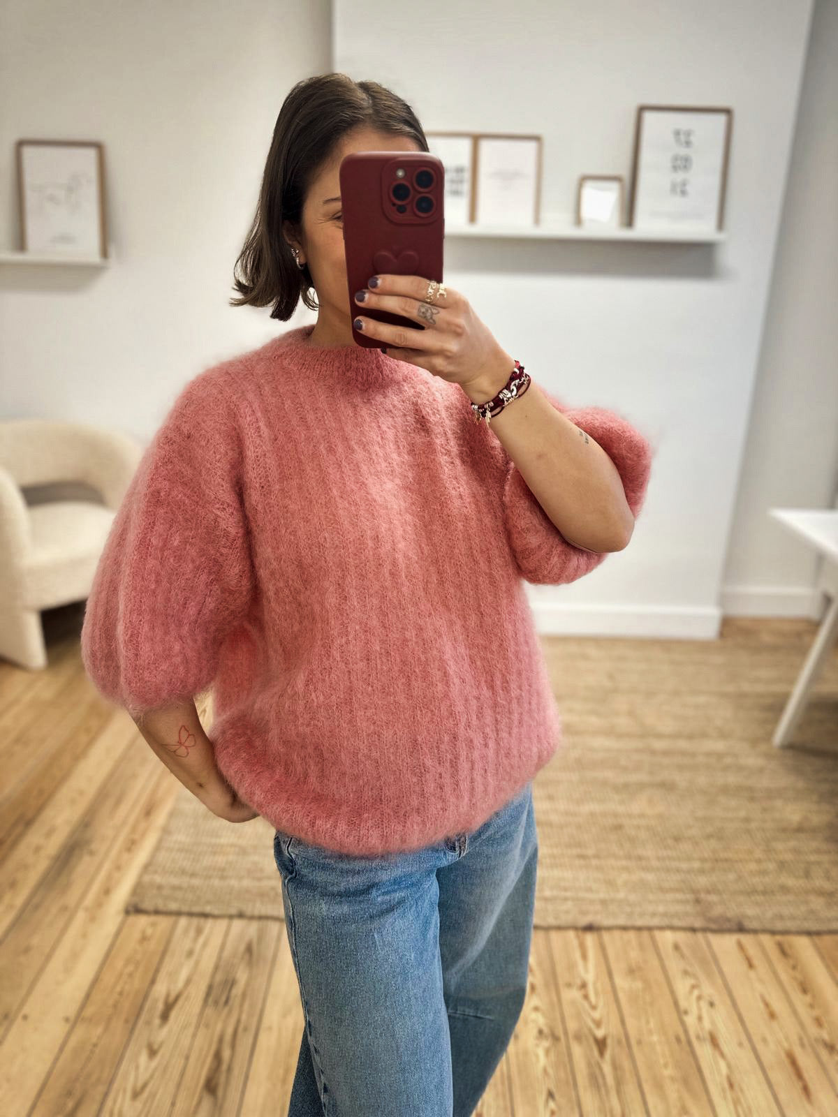 Composition : 81% kid mohair, 17% polyamide et 2% élasthanne. Nous vous conseillons de le laver à la main.