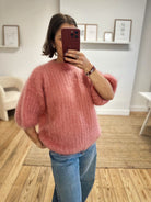 Ce pull en laine, doté d’un col rond et de manches courtes ajustées aux extrémités, offre une coupe ample pour un confort optimal.