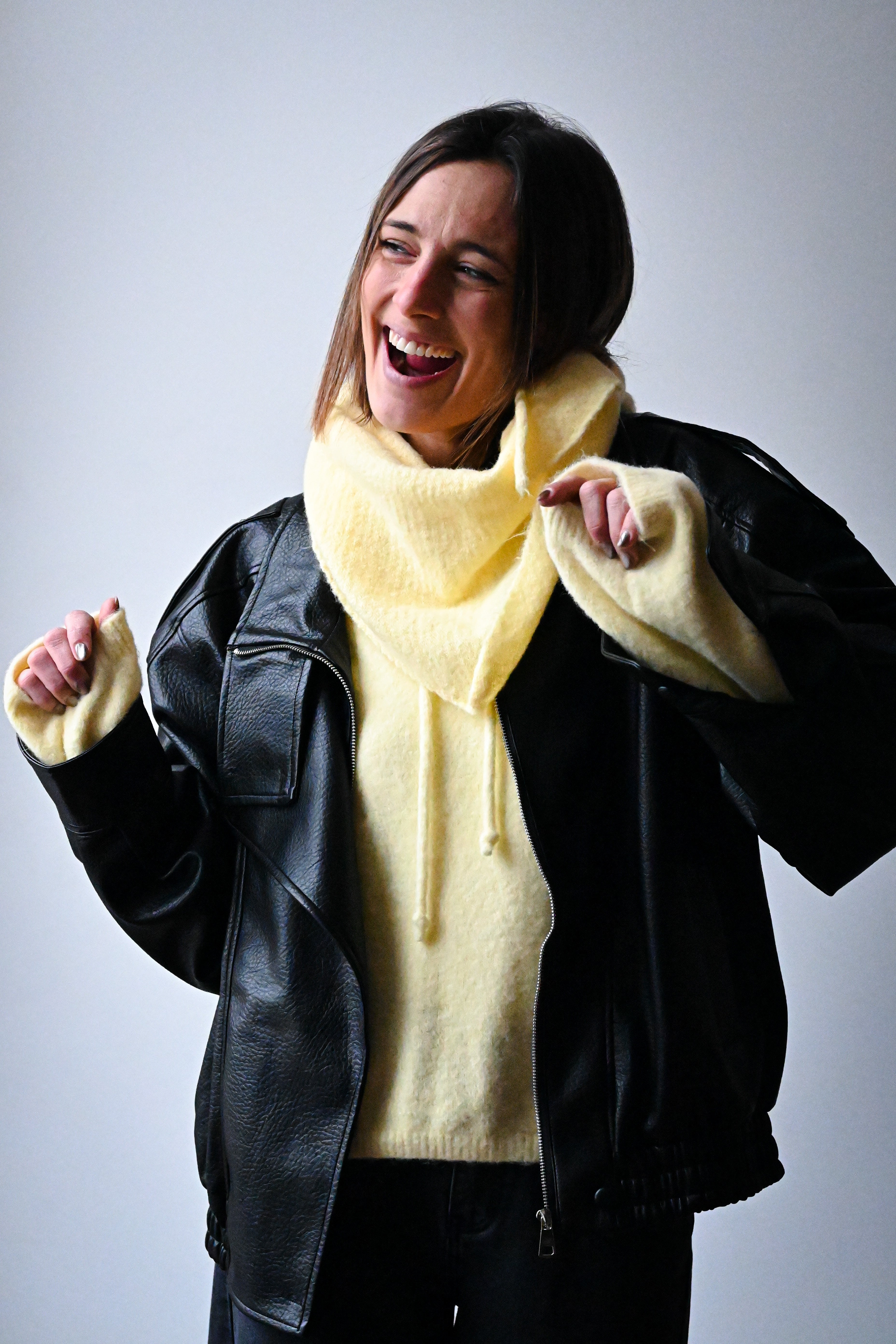 Composition : 10% laine, 9% nylon, 29% acrylique, 24% polyester recyclé, 10% alpaga, 4% spandex.