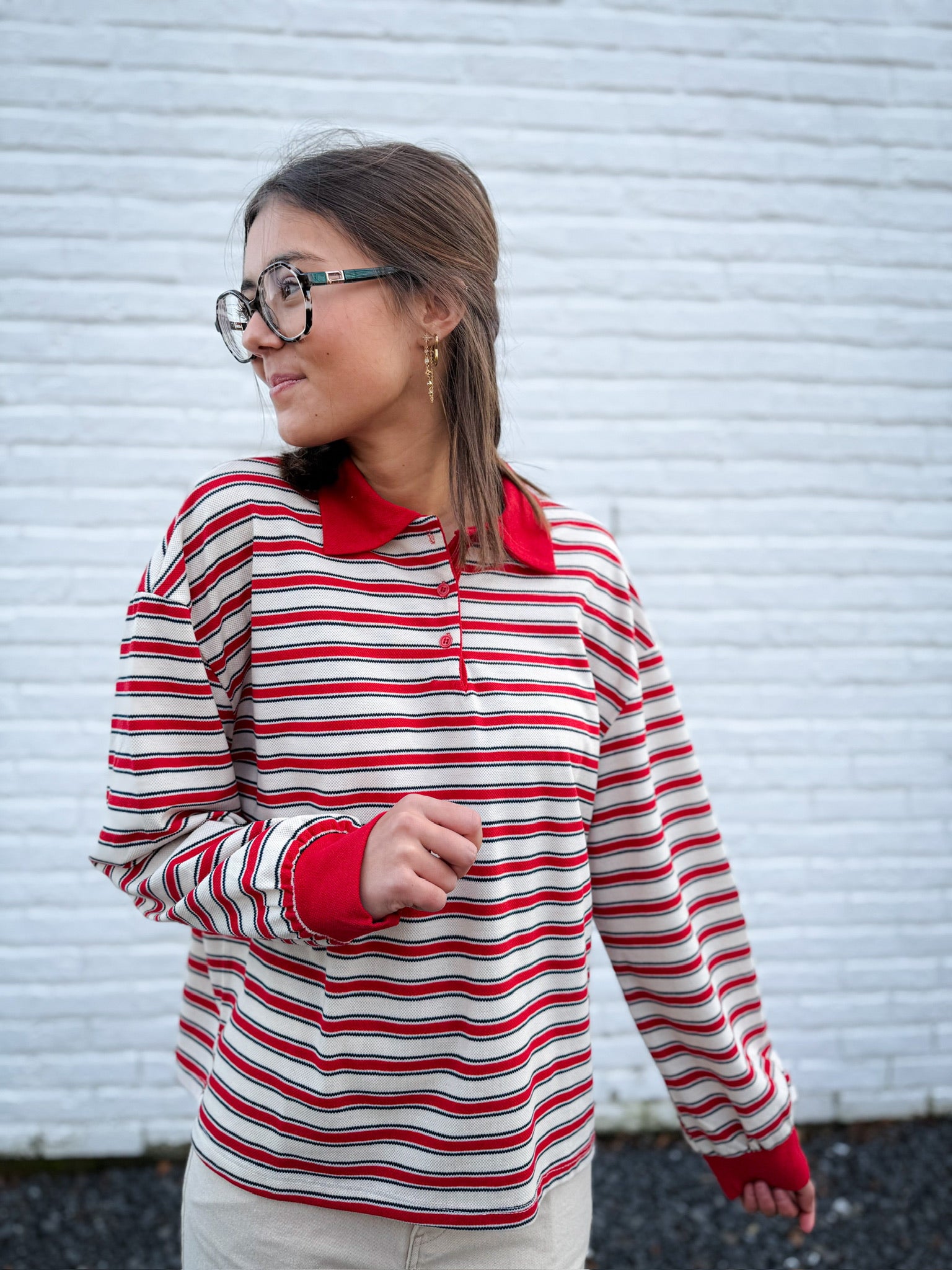 Découvrez le Sweat BEA, au col polo rouge qui allie style et confort. Coupe généreuse en taille unique, il épouse parfaitement votre silhouette pour un look décontracté et élégant. Ses lignes épurées en font la pièce polyvalente idéale pour tous vos looks du quotidien.