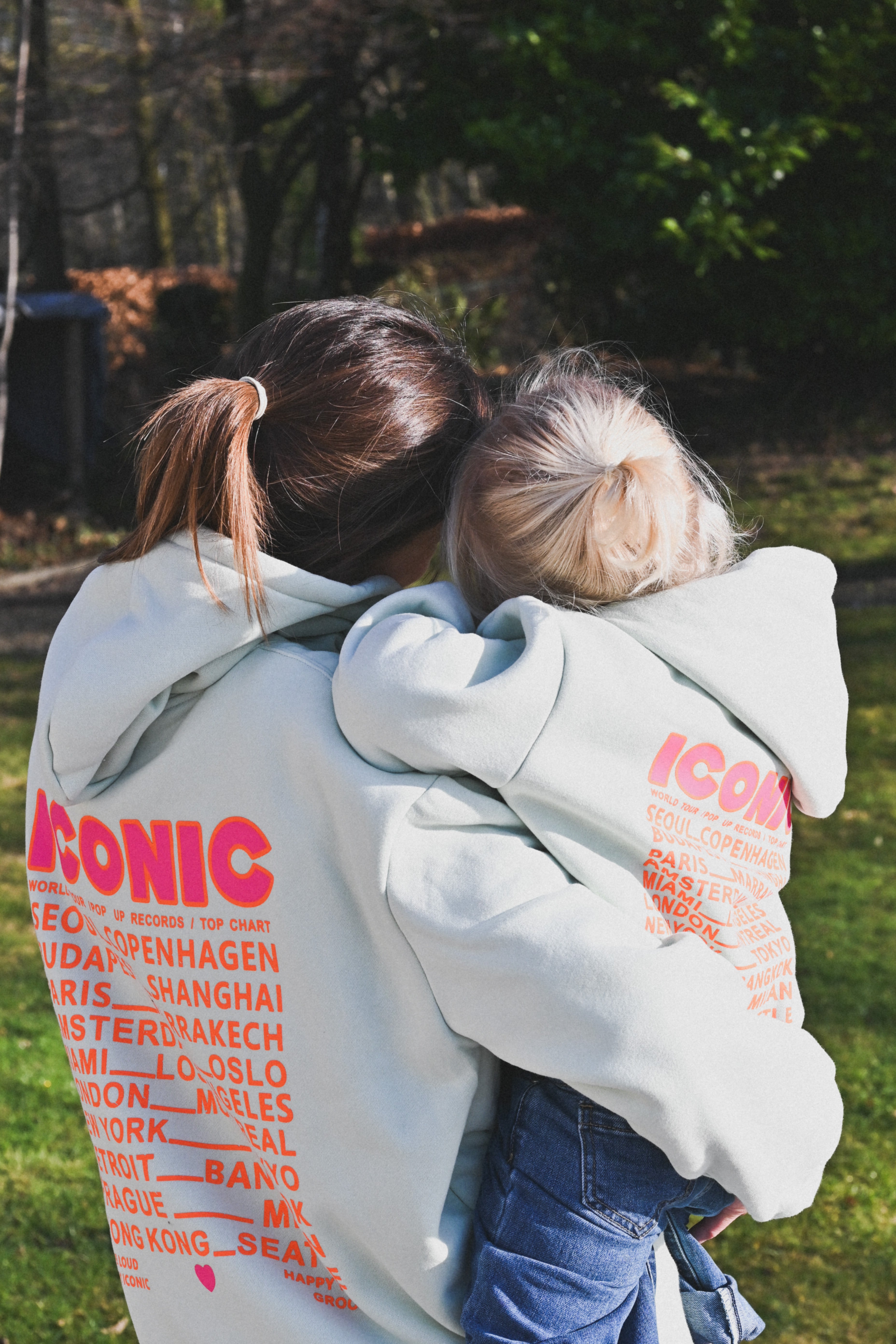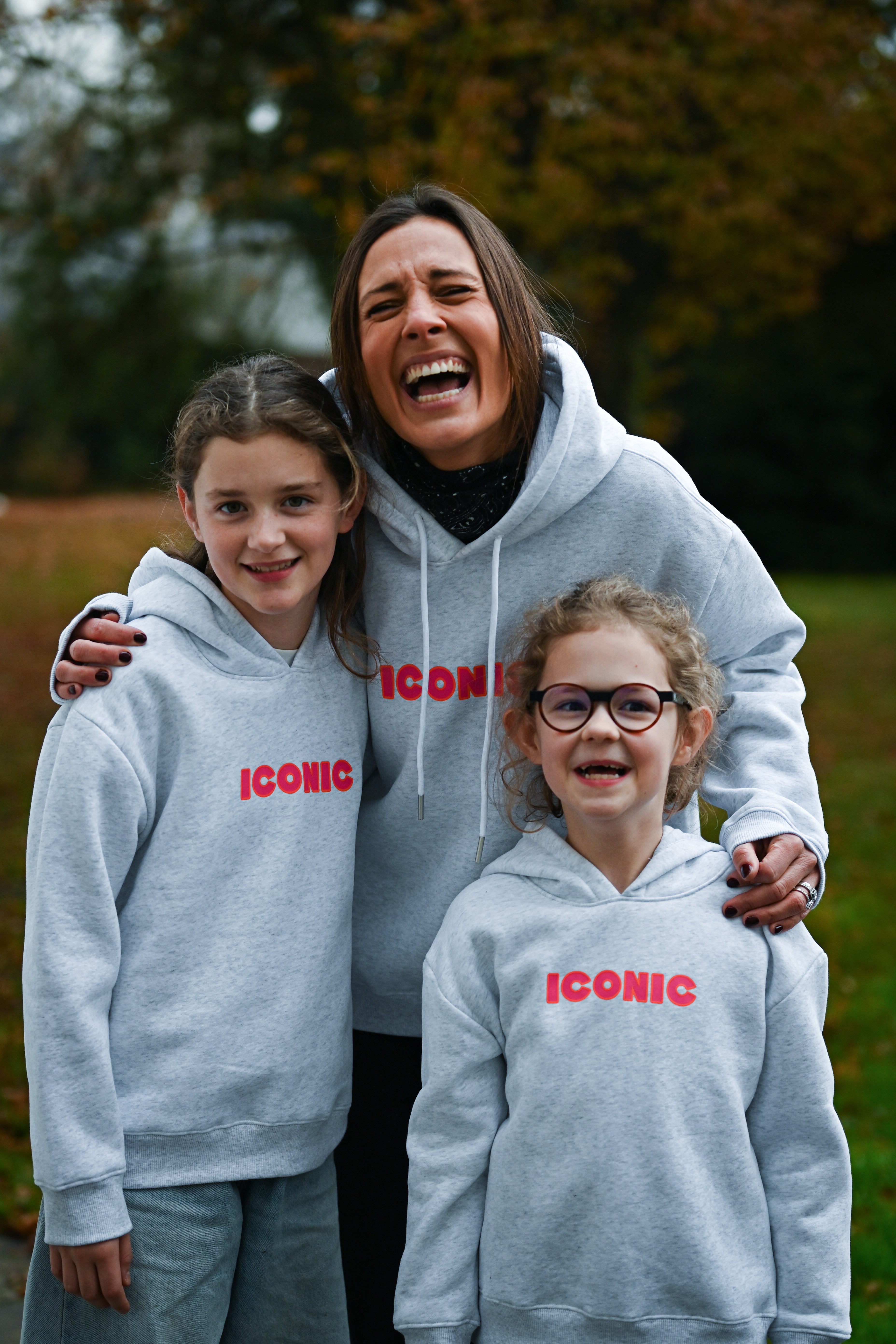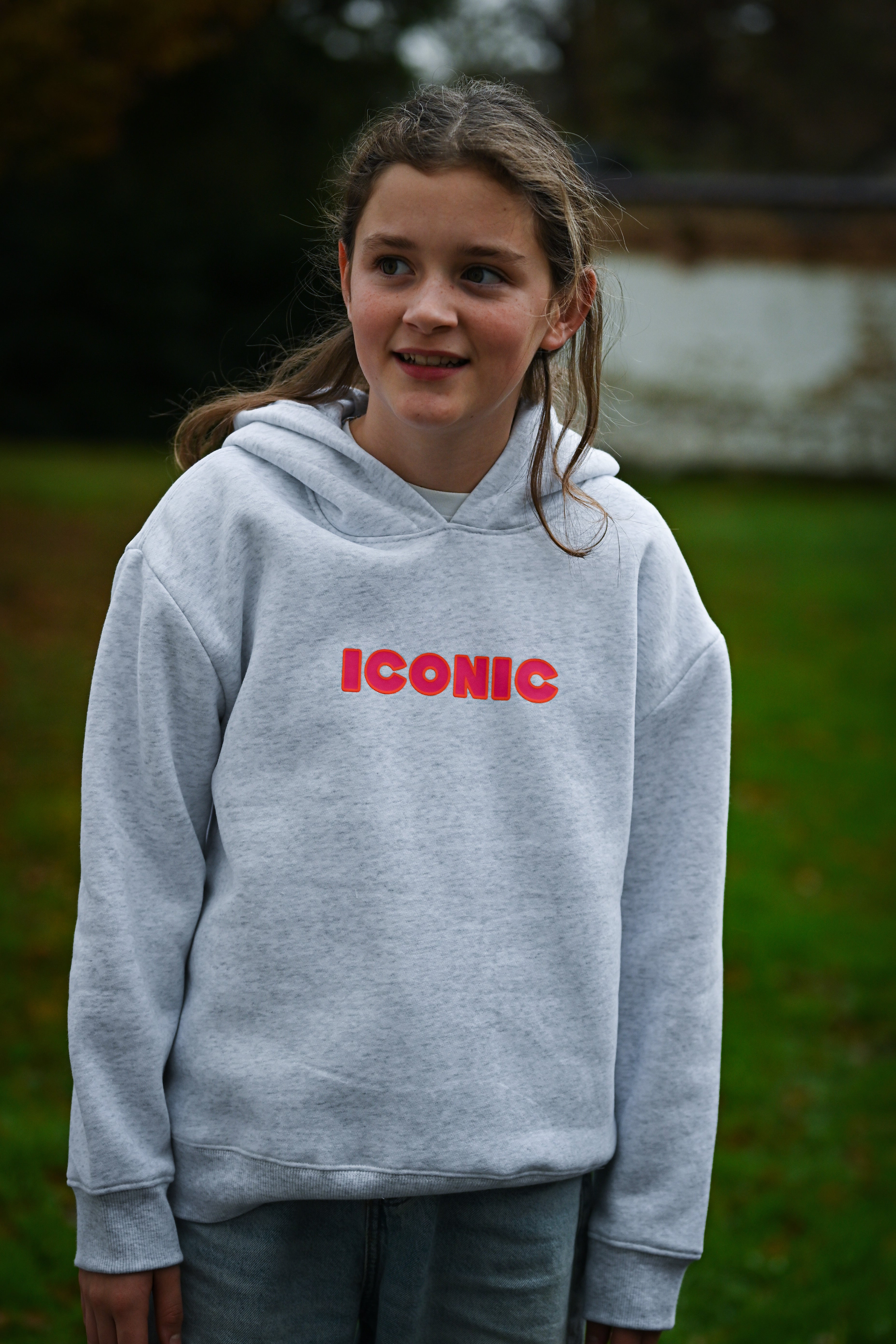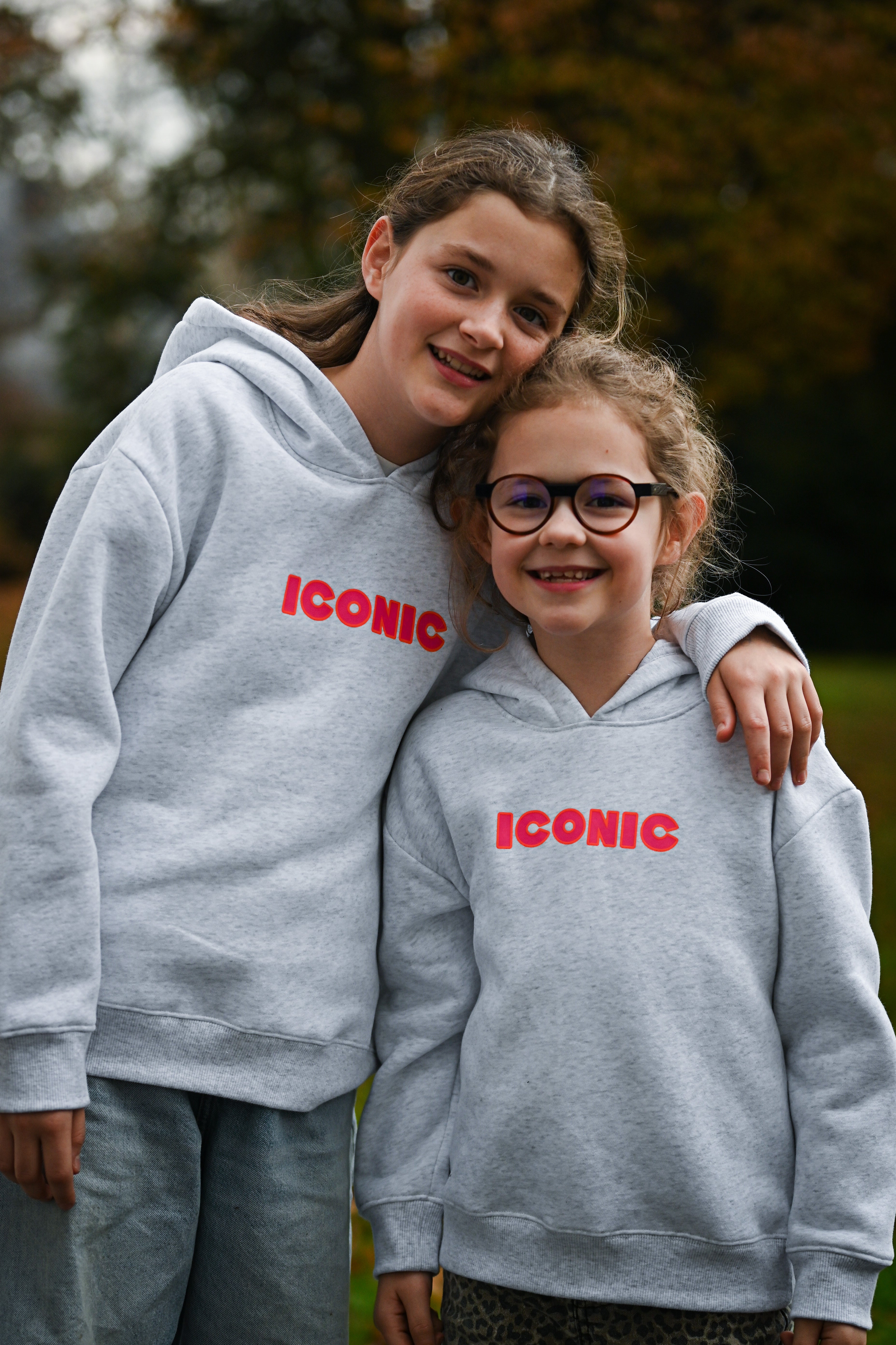 Le sweat ICONIC se distingue par ses inscriptions à l'avant et au dos et sa capuche. Disponible en tailles S, M, L et XL pour adultes, ainsi que de la taille 4 à 16 ans pour enfants, il offre un style assorti pour toute la famille.