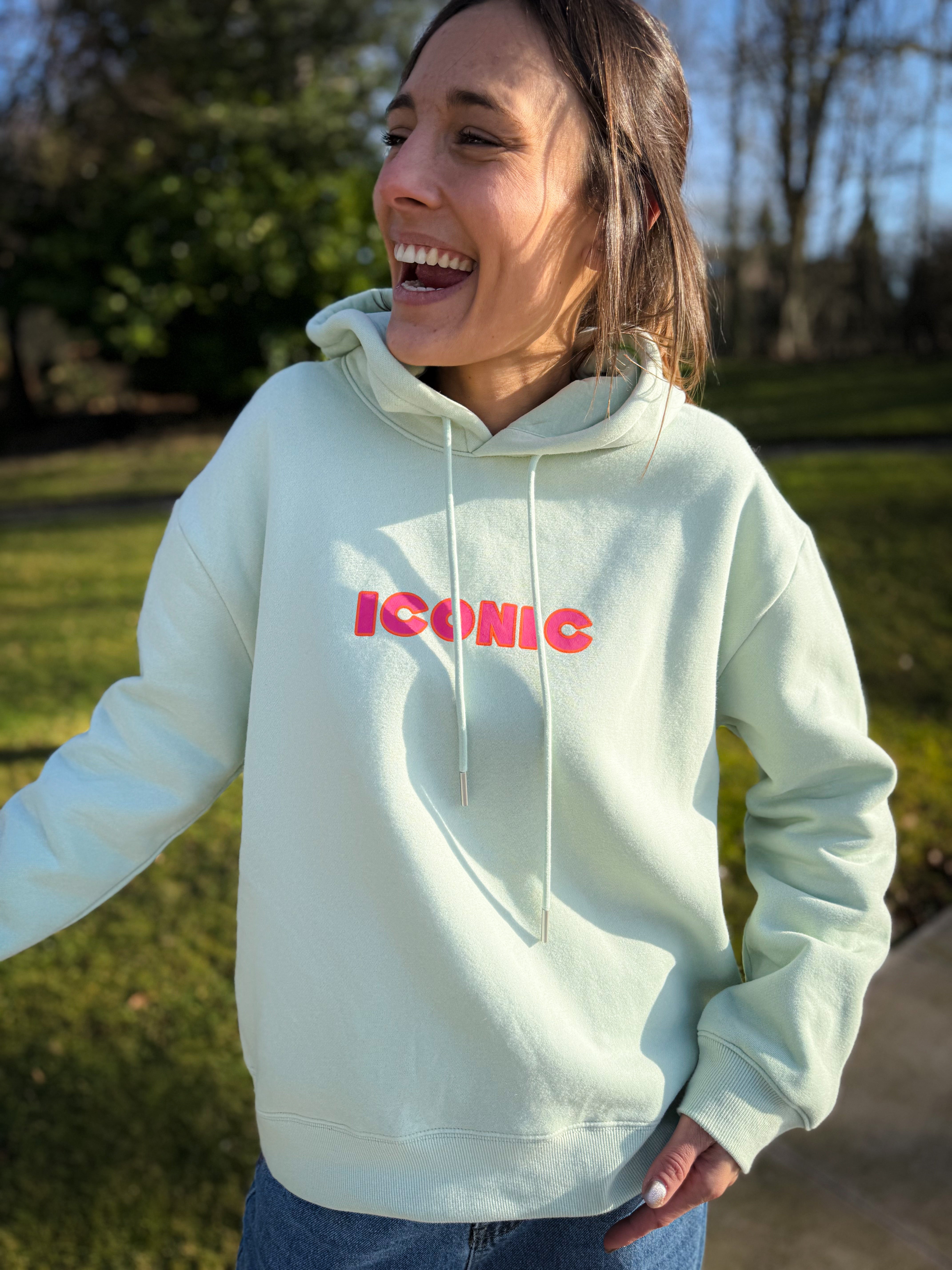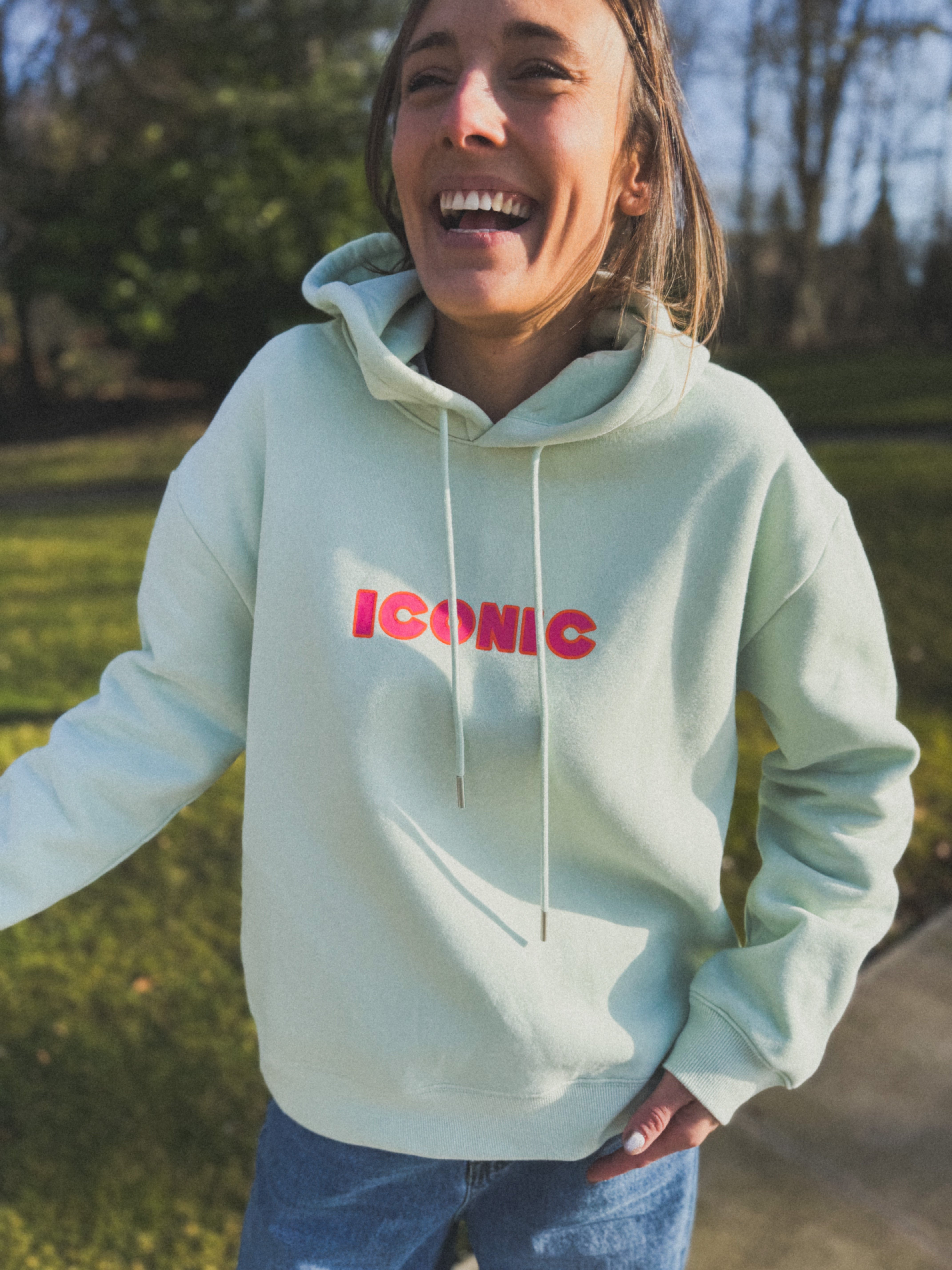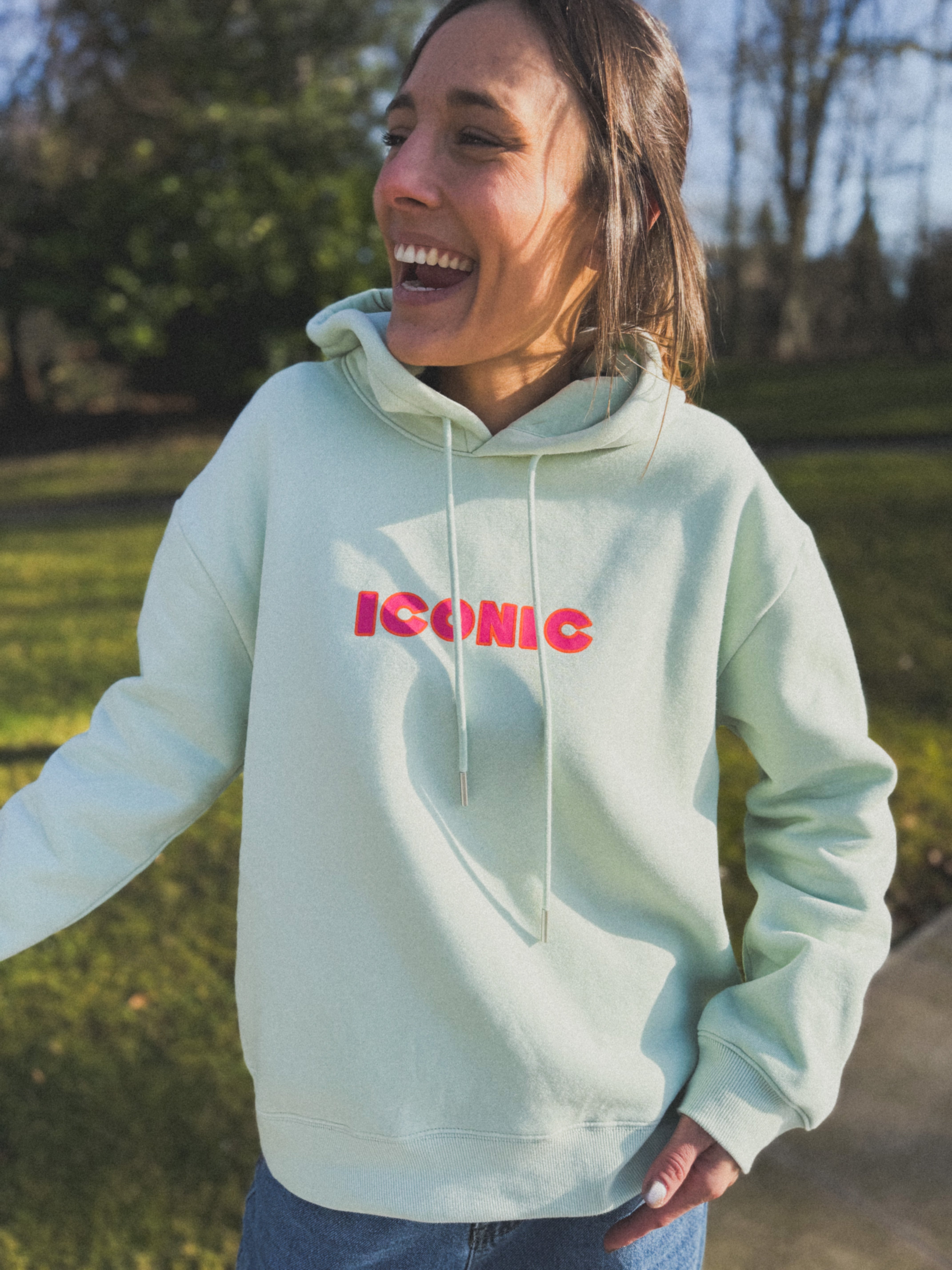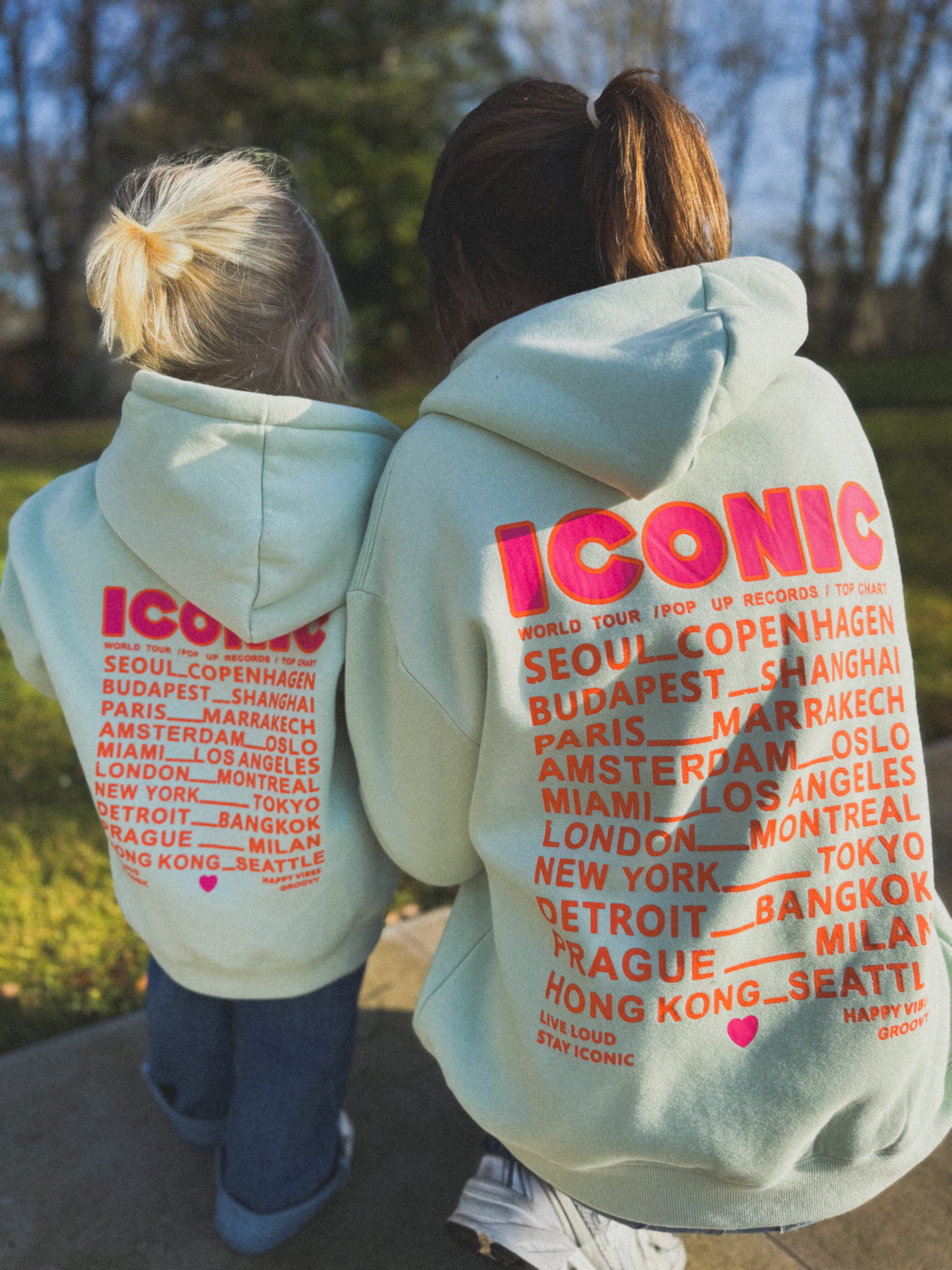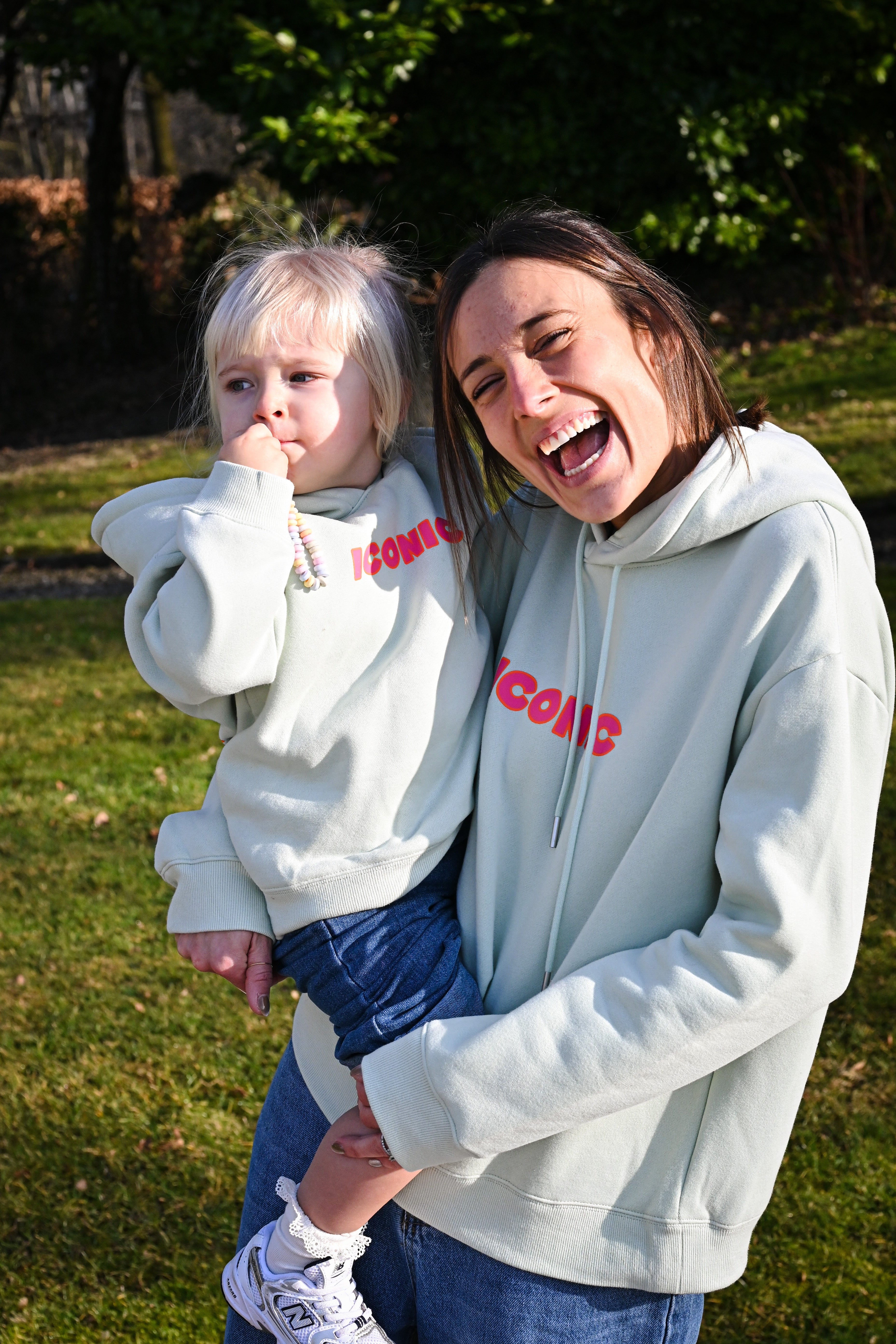 Le sweat ICONIC se distingue par ses inscriptions à l'avant et au dos et sa capuche. Disponible en tailles S, M, L et XL pour adultes, ainsi que de la taille 4 à 16 ans pour enfants, il offre un style assorti pour toute la famille.