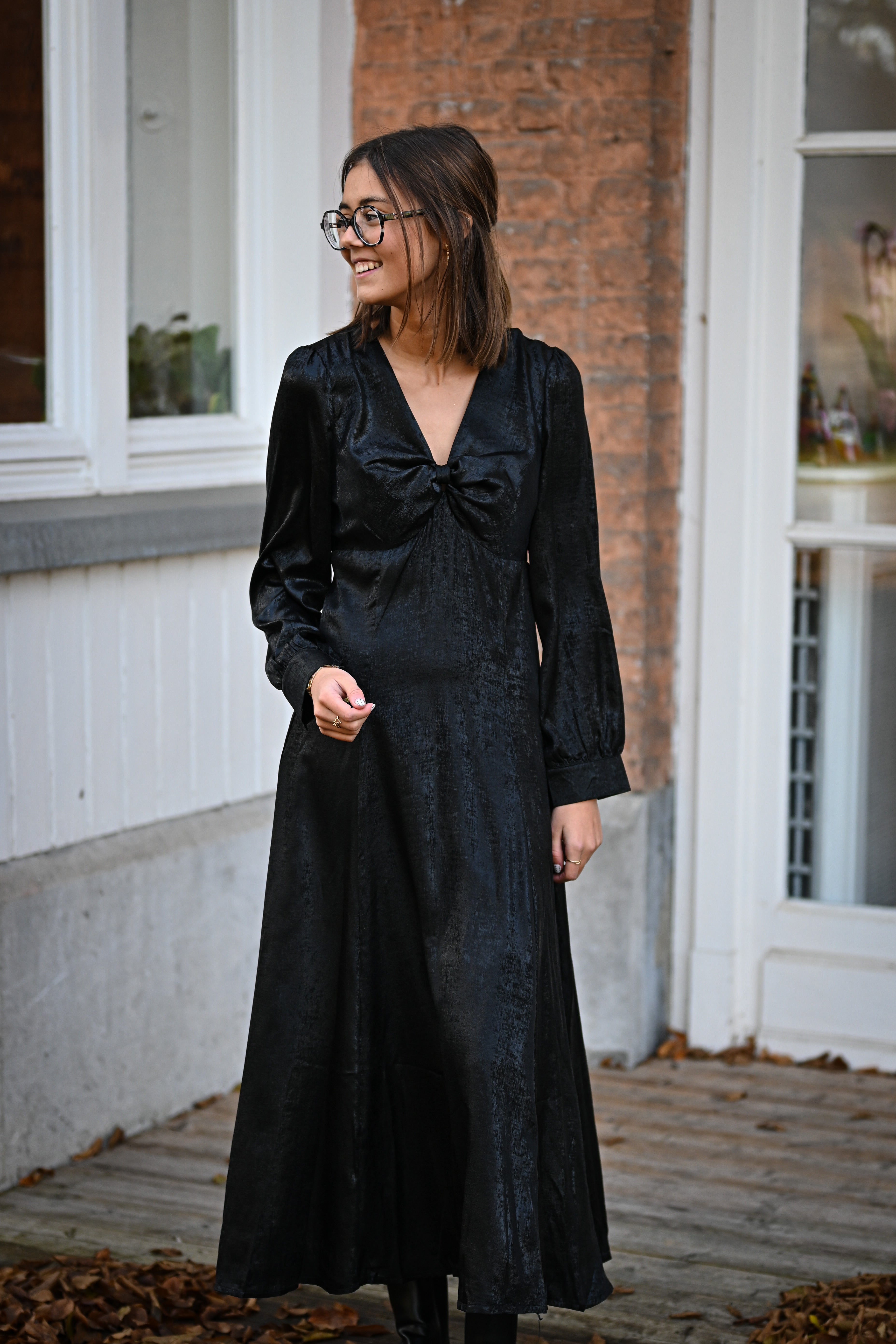Découvrez la Robe LEANNE, une pièce alliant élégance et sophistication. Confectionnée dans une matière délicatement satinée, elle séduit par son nœud avant distinctif et son dos nu audacieux. Les manches longues offrent une couverture raffinée, tandis que la coupe longue crée une silhouette flatteuse. Disponible en S, M et L pour trouver votre taille idéale.