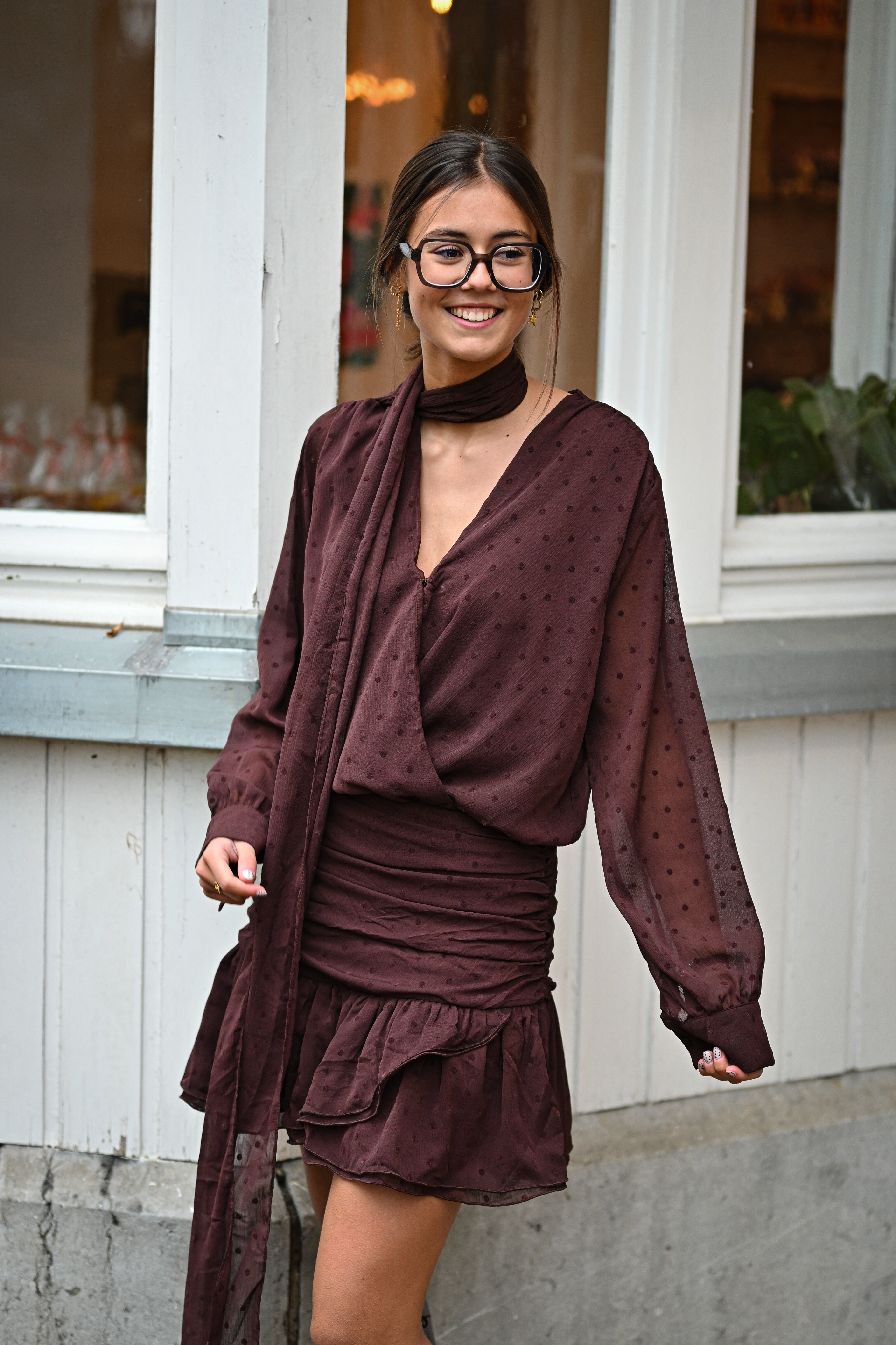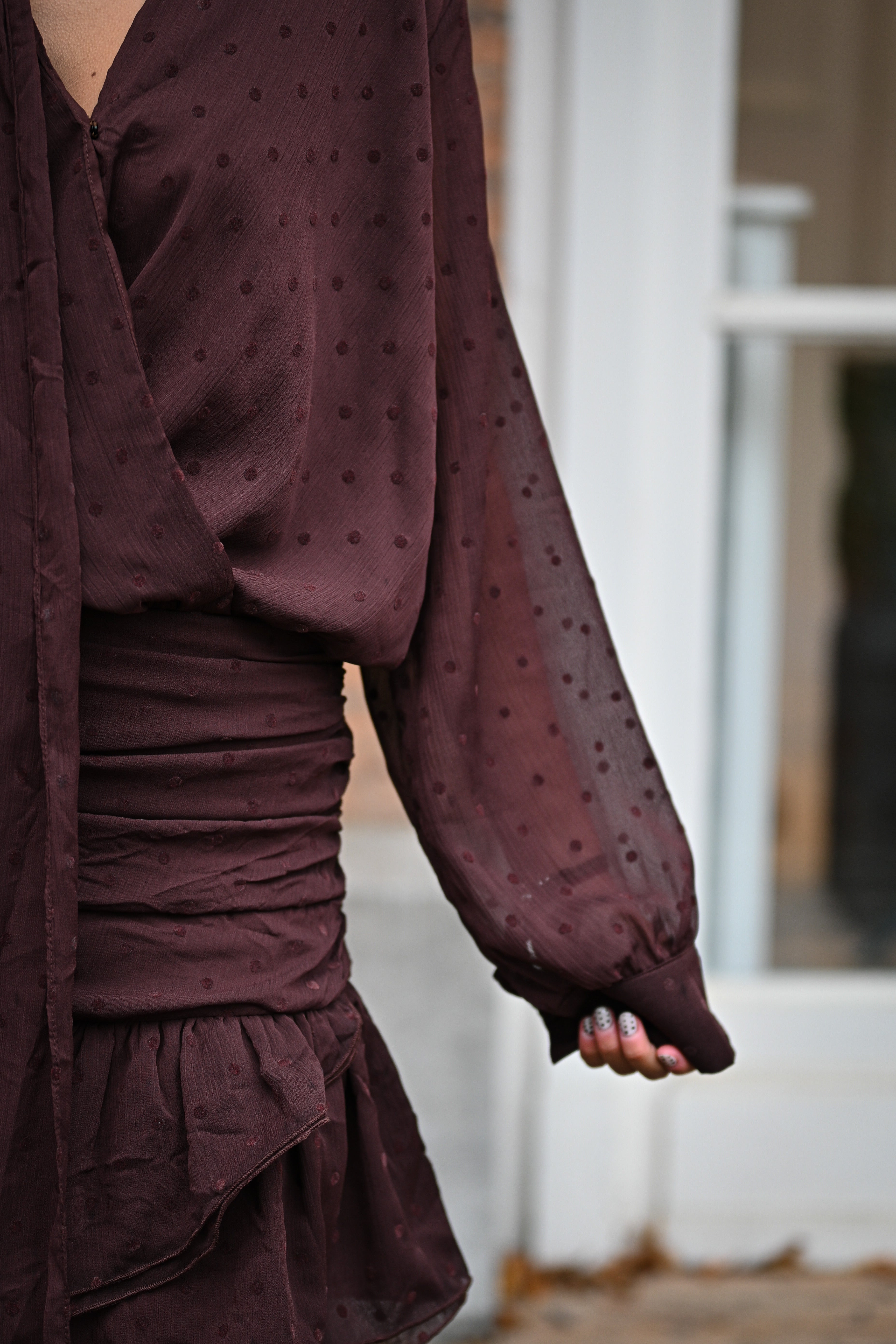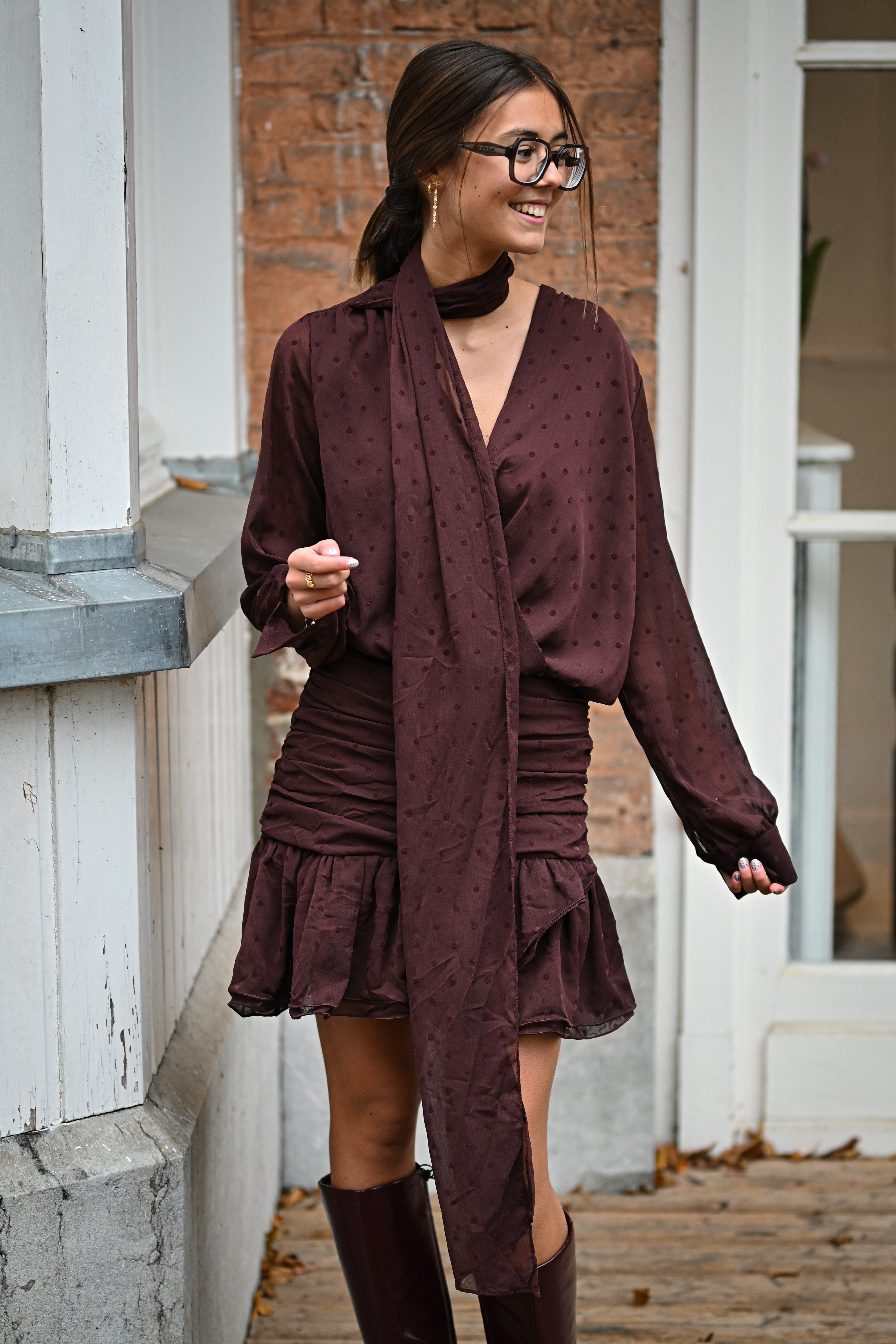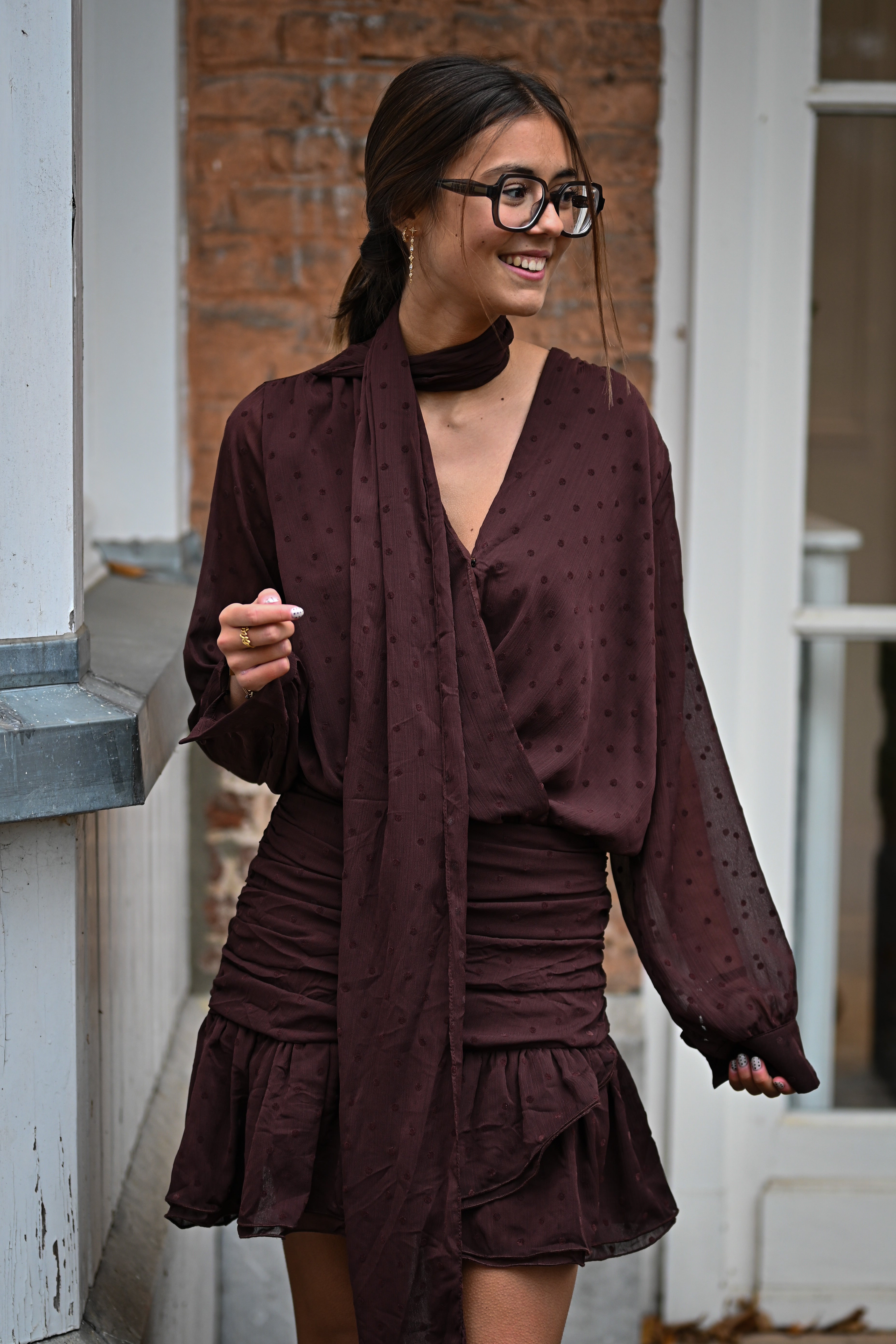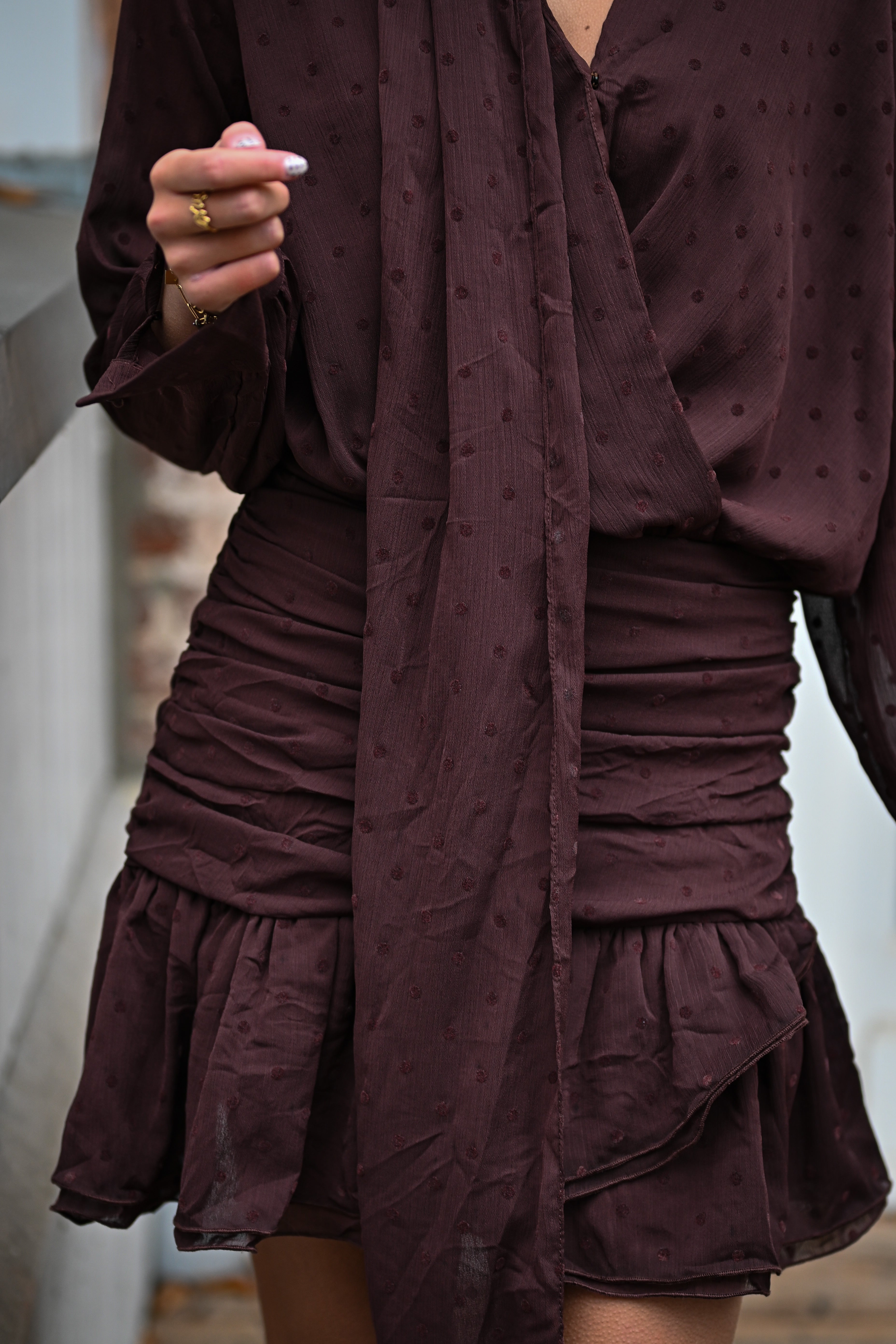 Découvrez la Robe MIA, une pièce incontournable aux détails raffinés. Son col cache-cœur flatteuse épouse vos formes tandis que le motif à pois apporte une touche de charme intemporel. Les fronces à l'ourlet créent une silhouette élégante et dynamique. Disponible en S, M et L pour trouver votre taille parfaite.