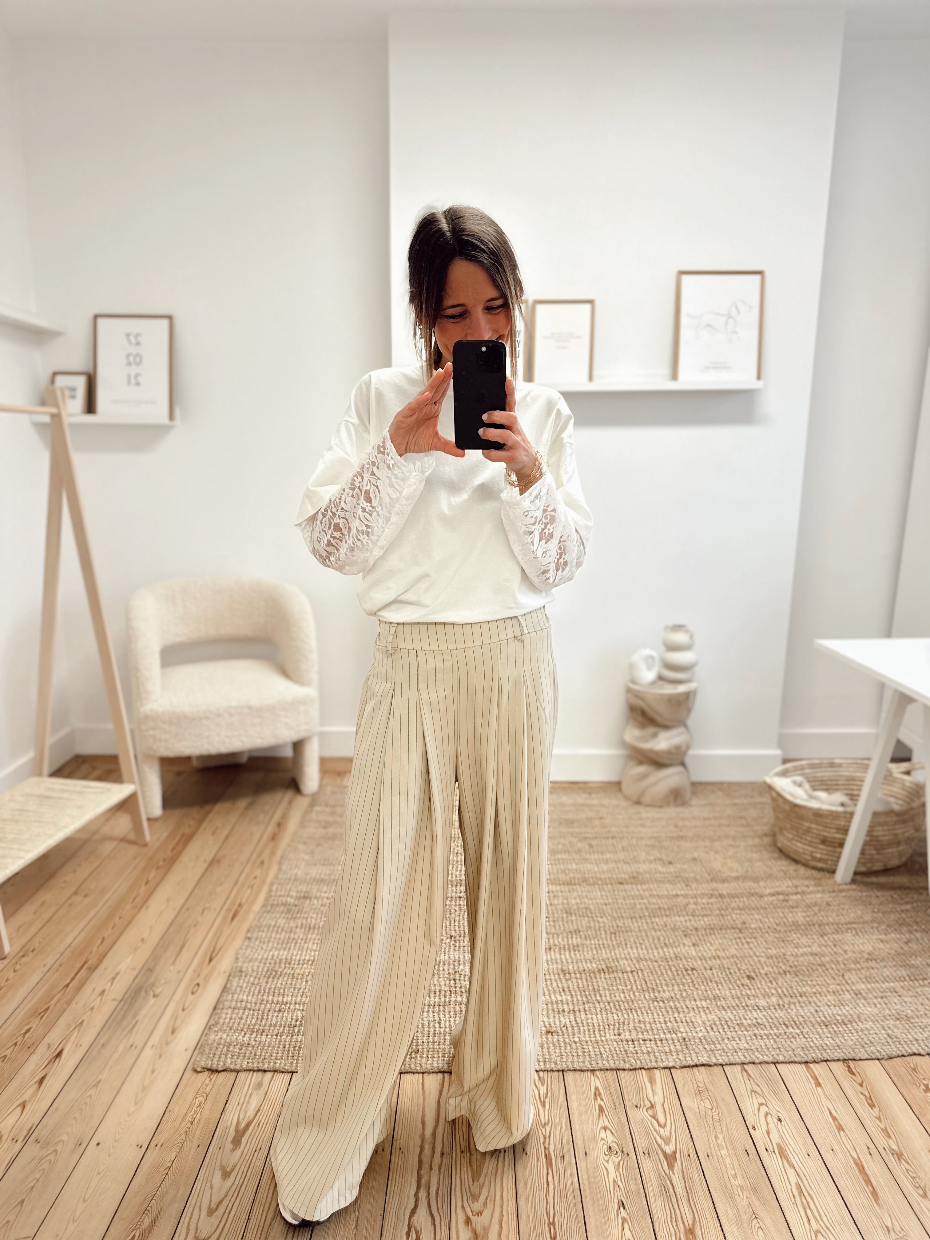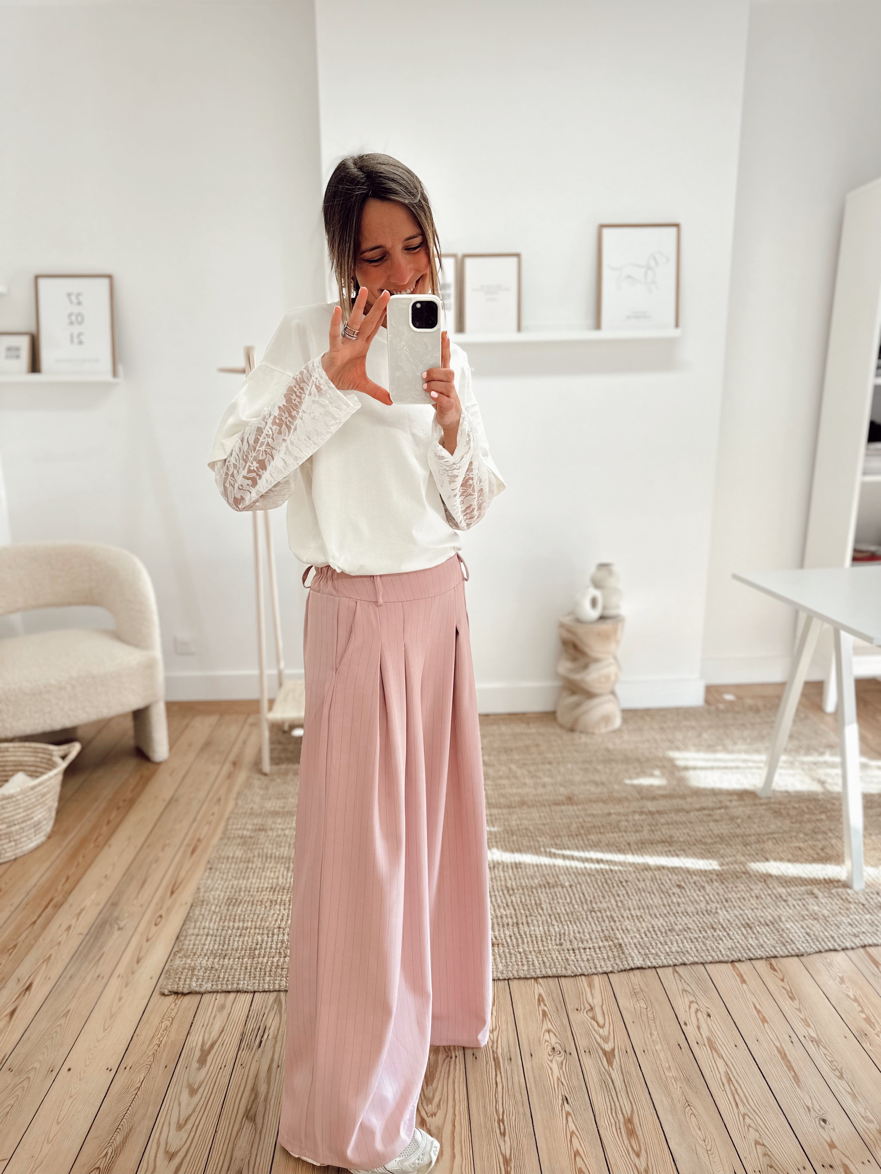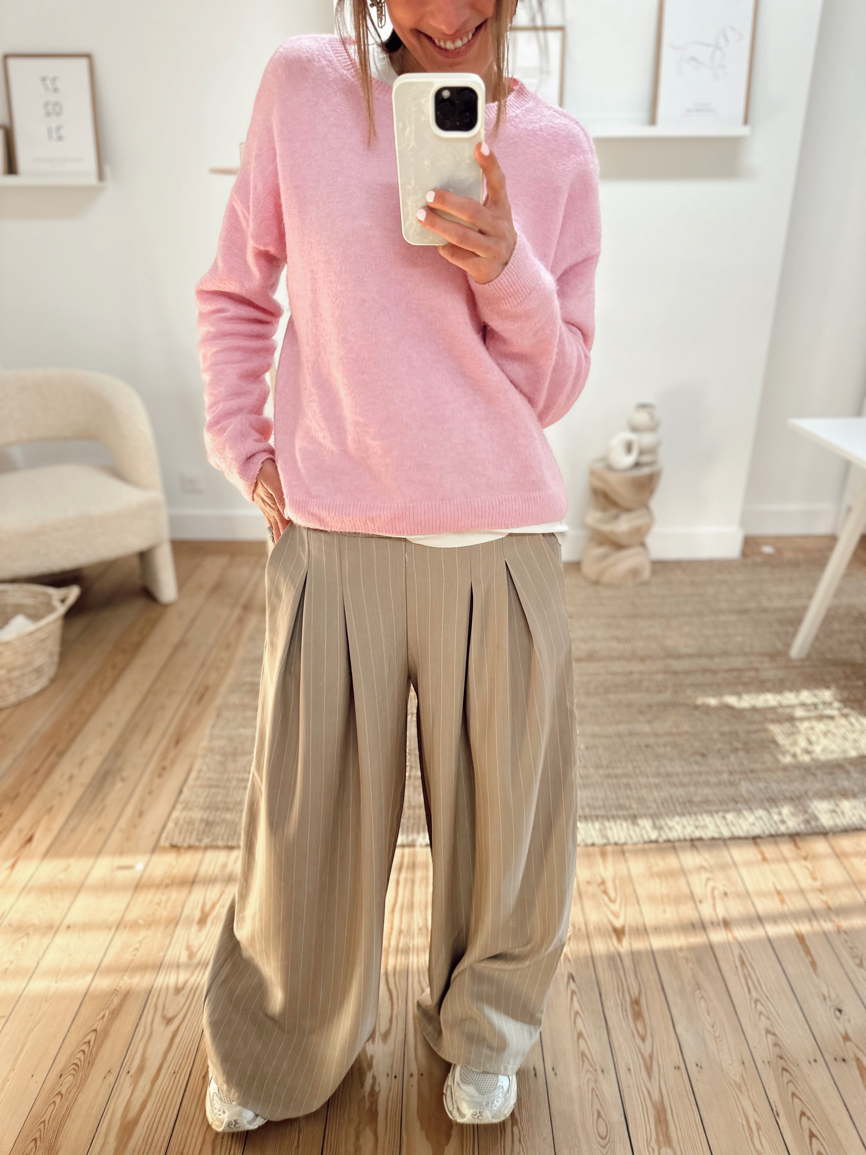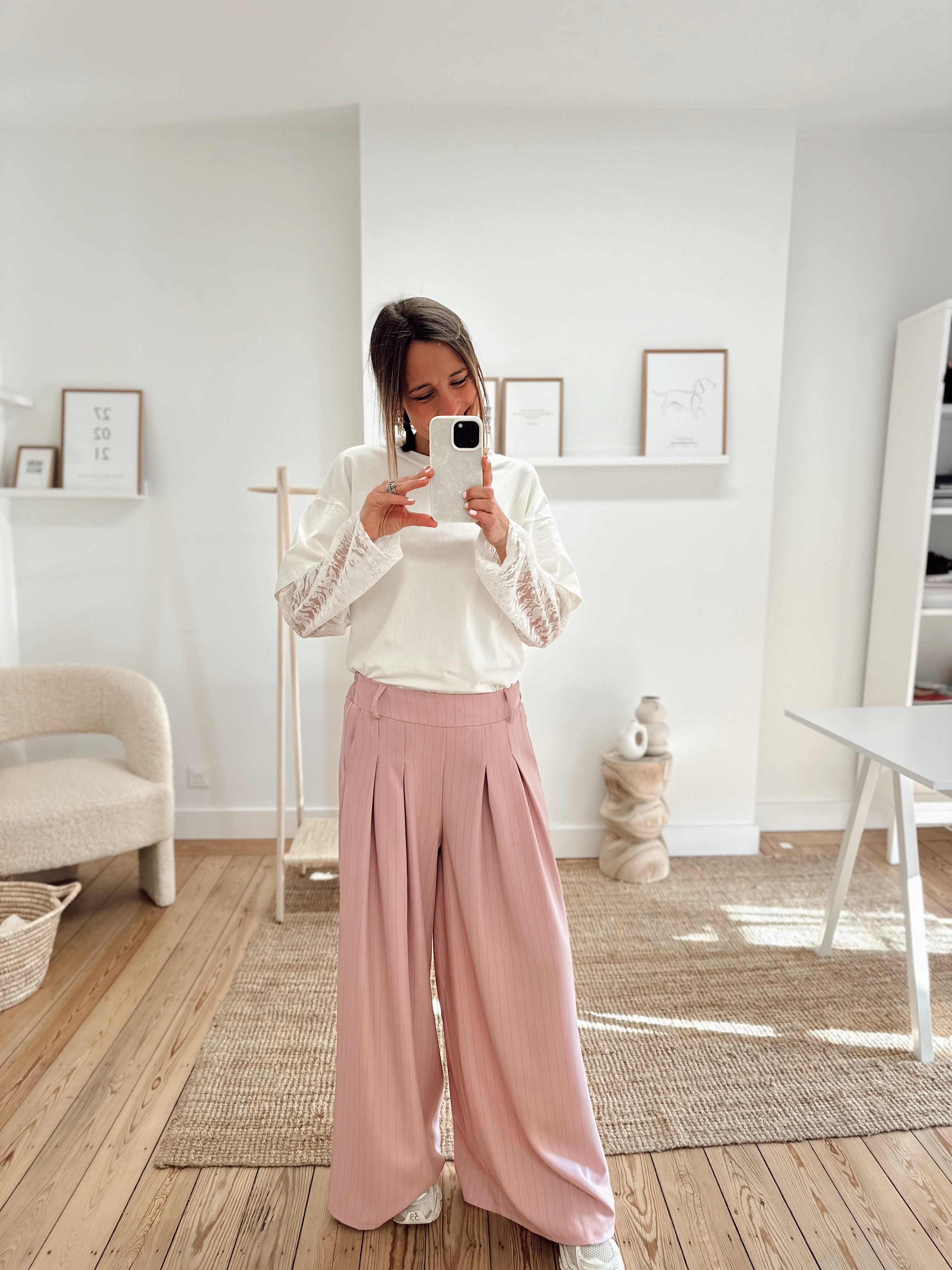 Pantalon ligné bleu et blanc. Avec un élastique à la taille, il est disponible seulement en taille unique et taille assez grand.
