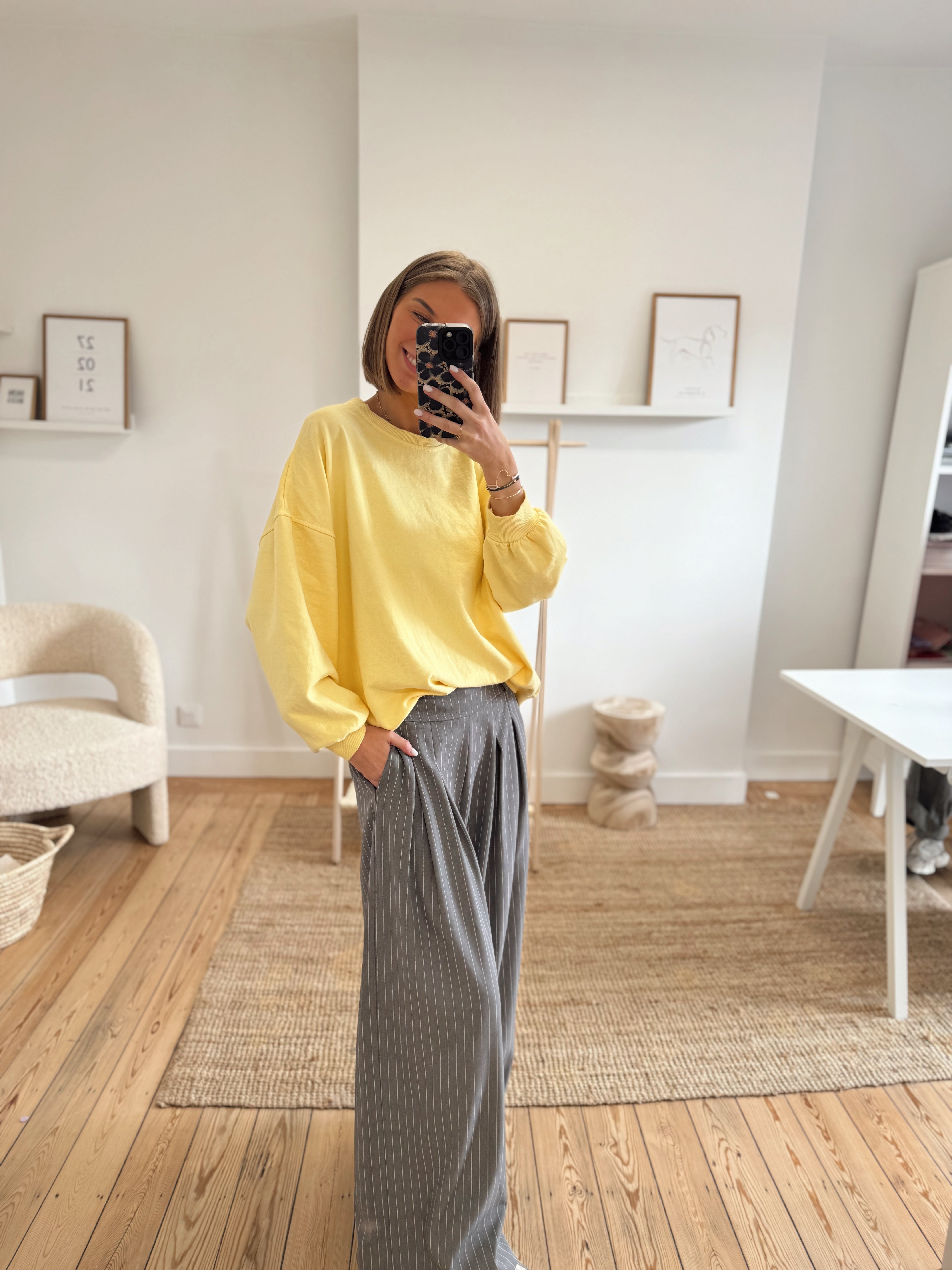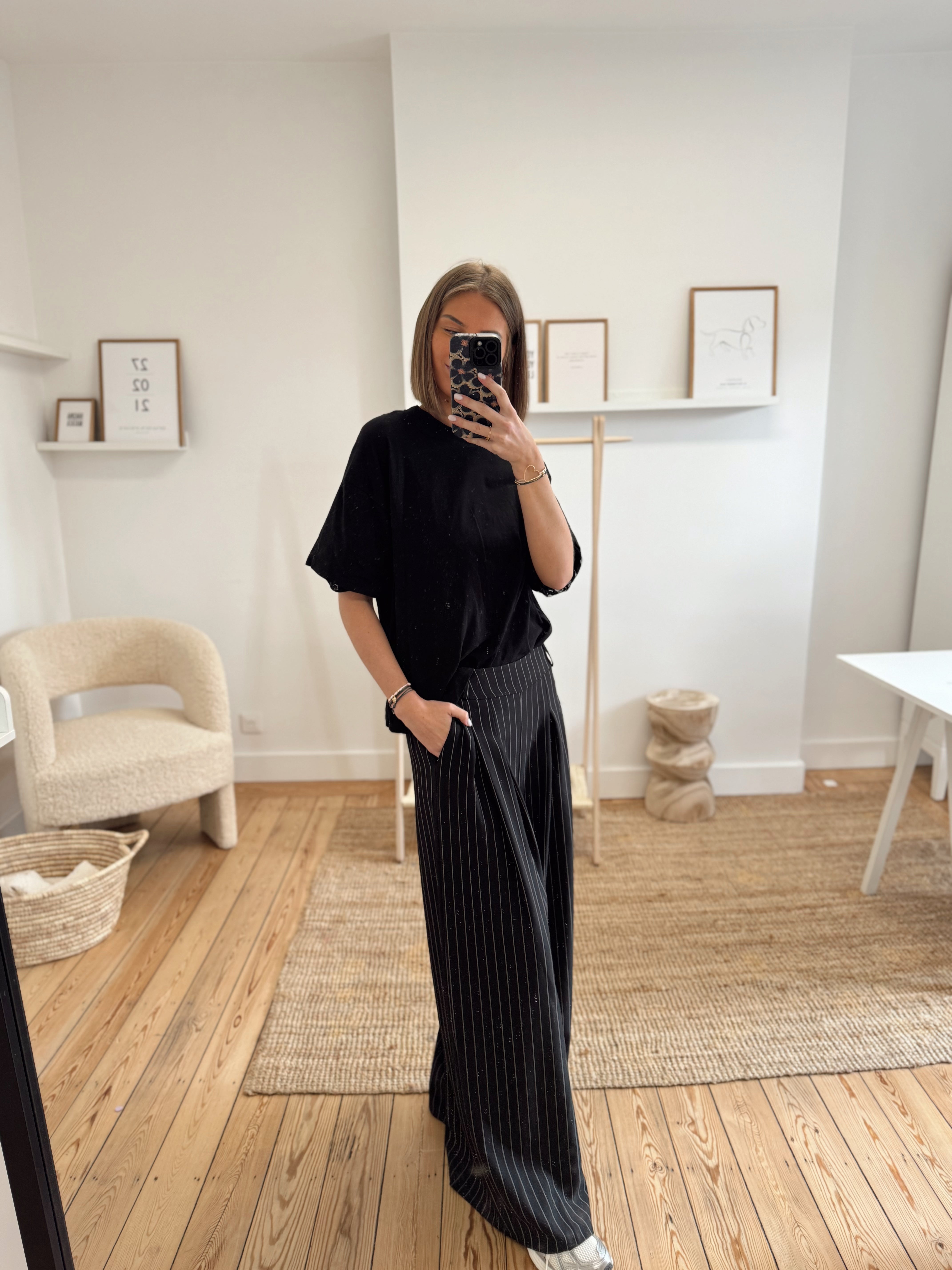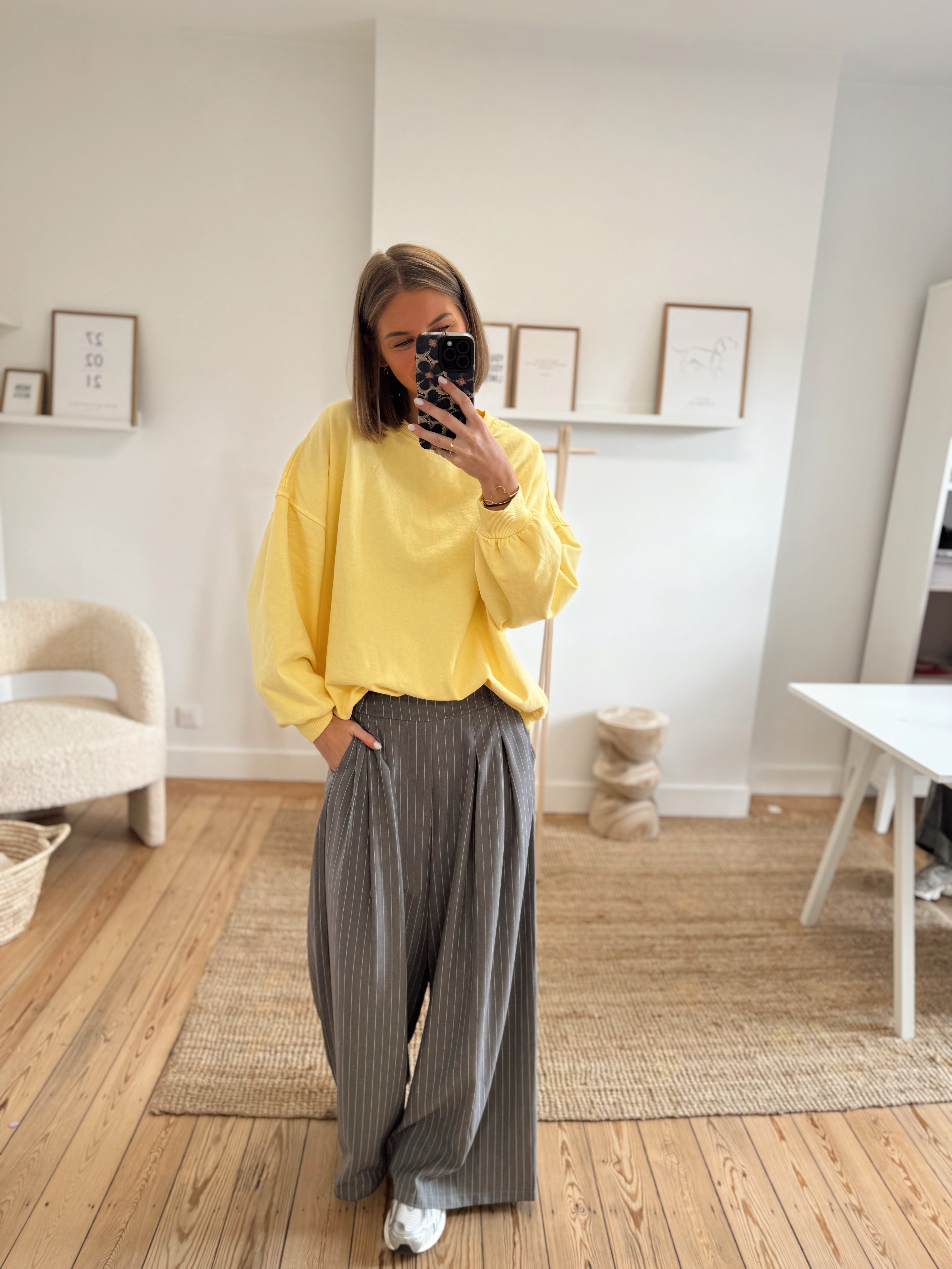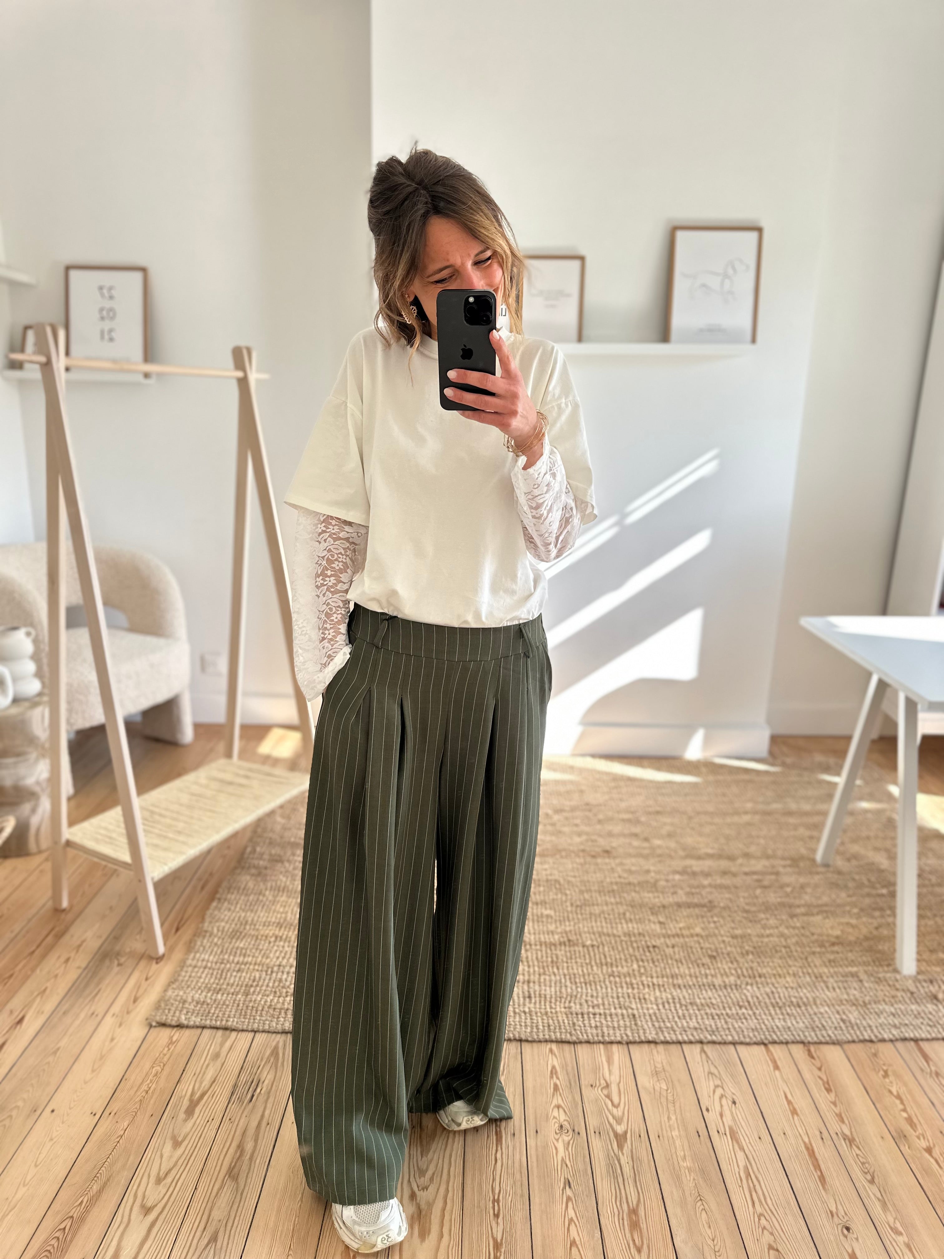 Pantalon ligné bleu et blanc. Avec un élastique à la taille, il est disponible seulement en taille unique et taille assez grand.