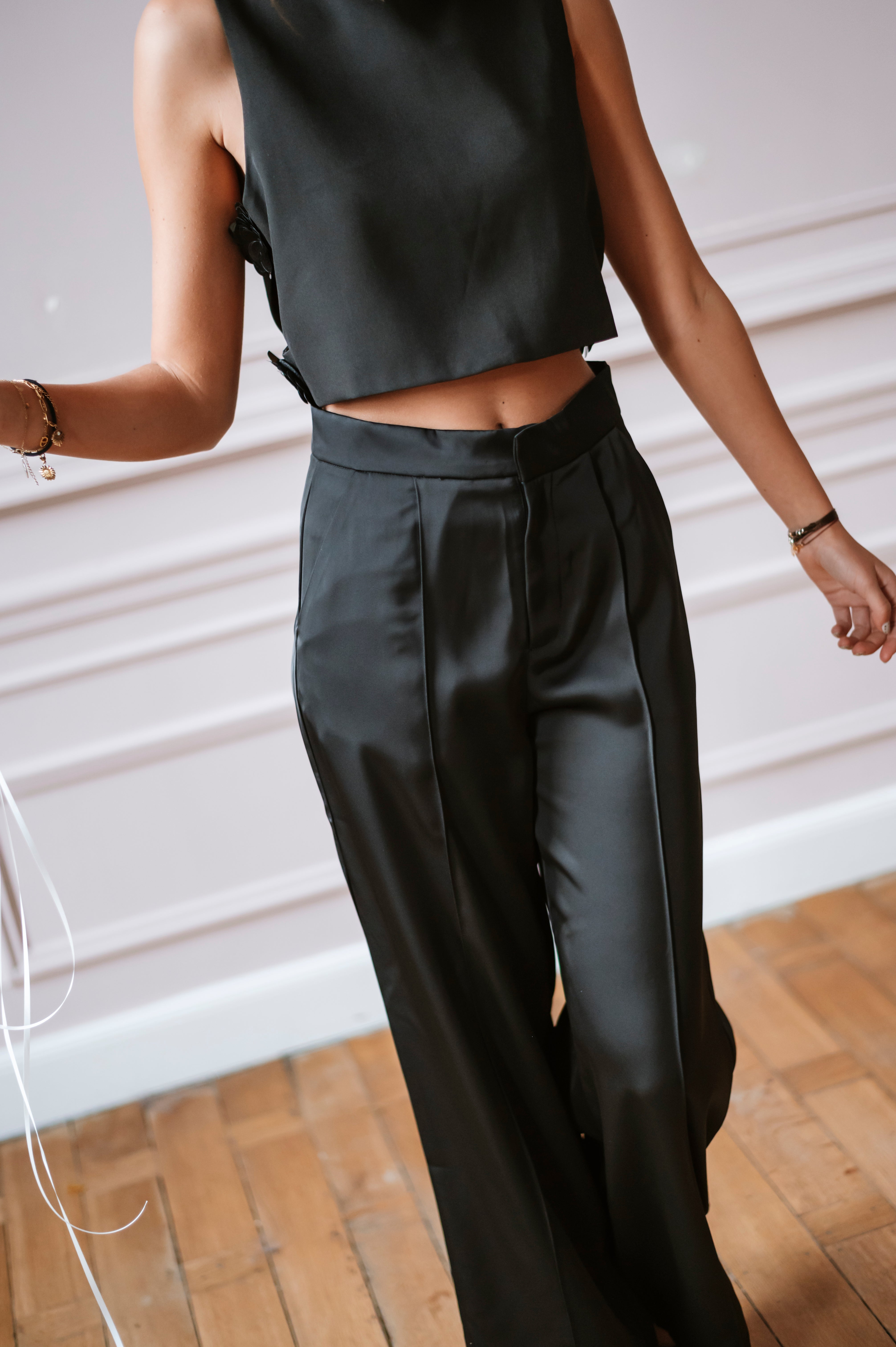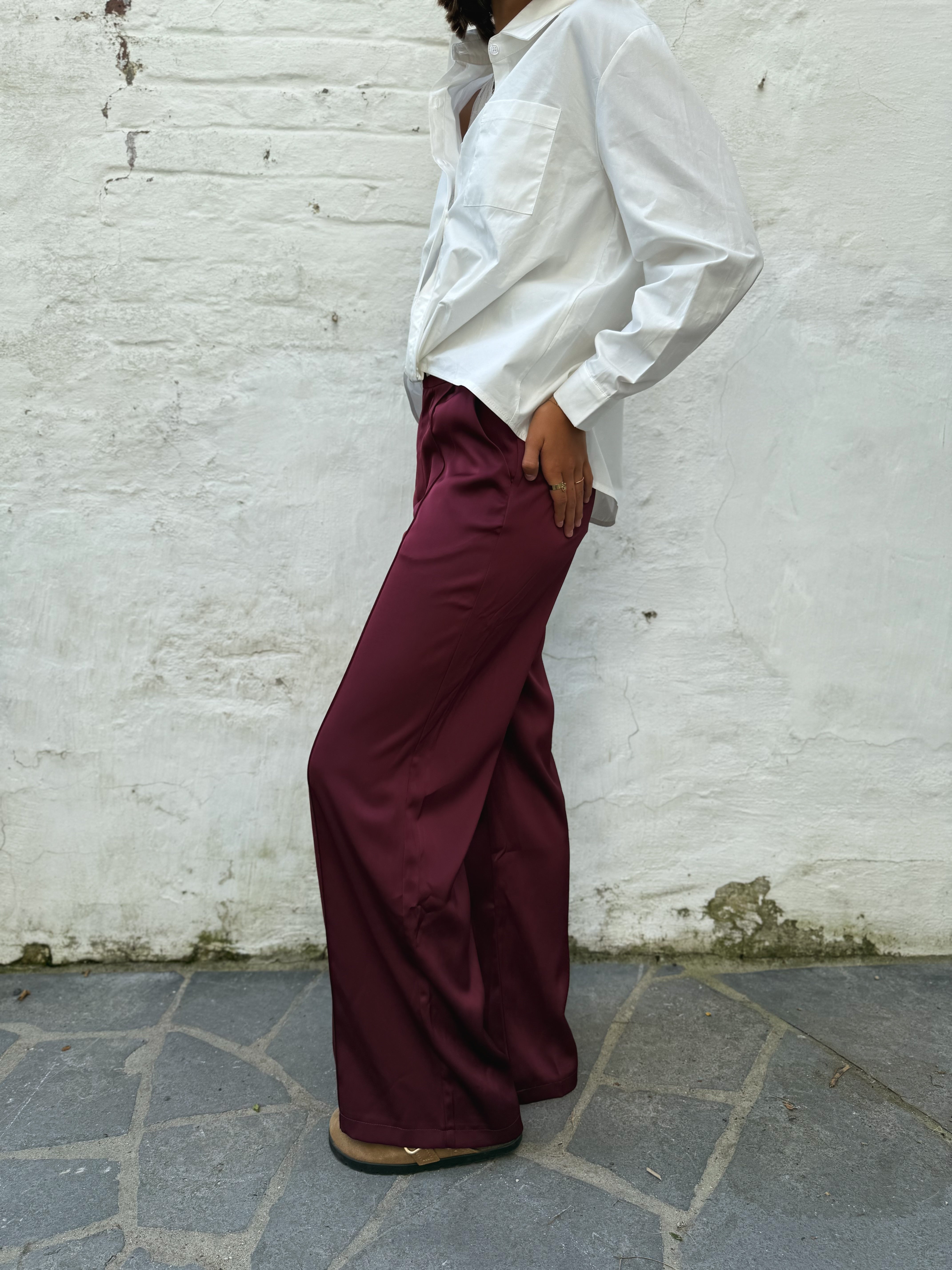 Découvrez ce pantalon fluide en satin couleur chocolat, conçu pour allier élégance et confort. Disponible du XS au XL, il s’adapte parfaitement à toutes les silhouettes.
