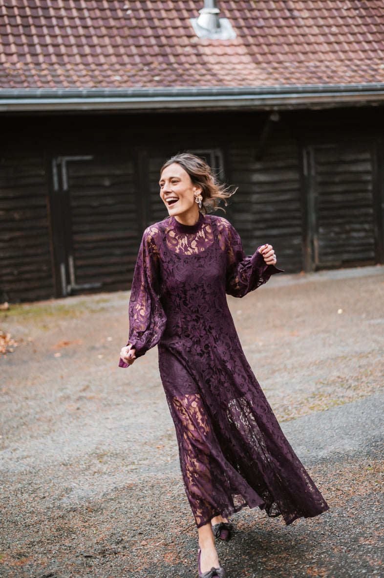 Découvrez la robe SAMANTHA, une pièce alliant élégance et confort. Sa dentelle raffinée et son col montant créent une silhouette sophistiquée, tandis que les longues manches offrent une couverture flatteuse. La sous-robe intégrée assure un port impeccable, et la coupe évasée en bas affine votre silhouette. Fermeture éclair pratique. Disponible en S, M et L.