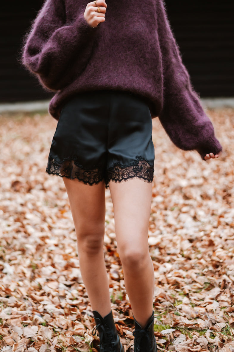 Découvrez le Short LARA, l'allié confort de votre garde-robe. Confectionné en satiné doux, il épouse votre silhouette grâce à son élastique à la taille ajustable. Les finitions en dentelle délicate ajoutent une touche d'élégance intemporelle. Disponible en tailles SM et ML, il se ferme facilement avec sa fermeture éclair pratique. Séduction et bien-être réunis.