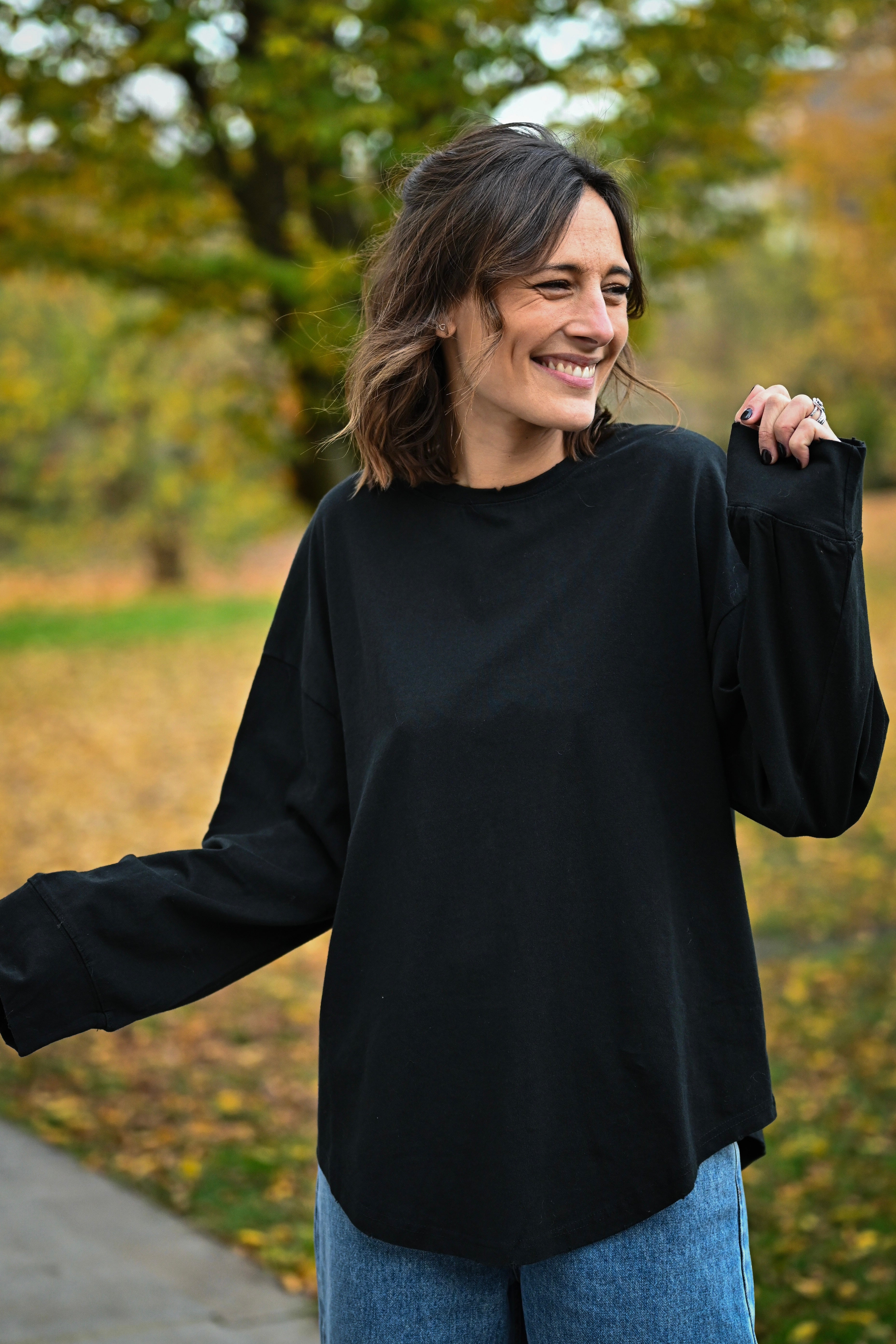 Découvrez le T-shirt BILLIE, un modèle blanc à manches longues avec un col rond confortable. Sa coupe généreuse garantit un style décontracté, parfait pour toutes les occasions. Disponible exclusivement en taille unique, il s’adapte facilement à toutes les silhouettes.