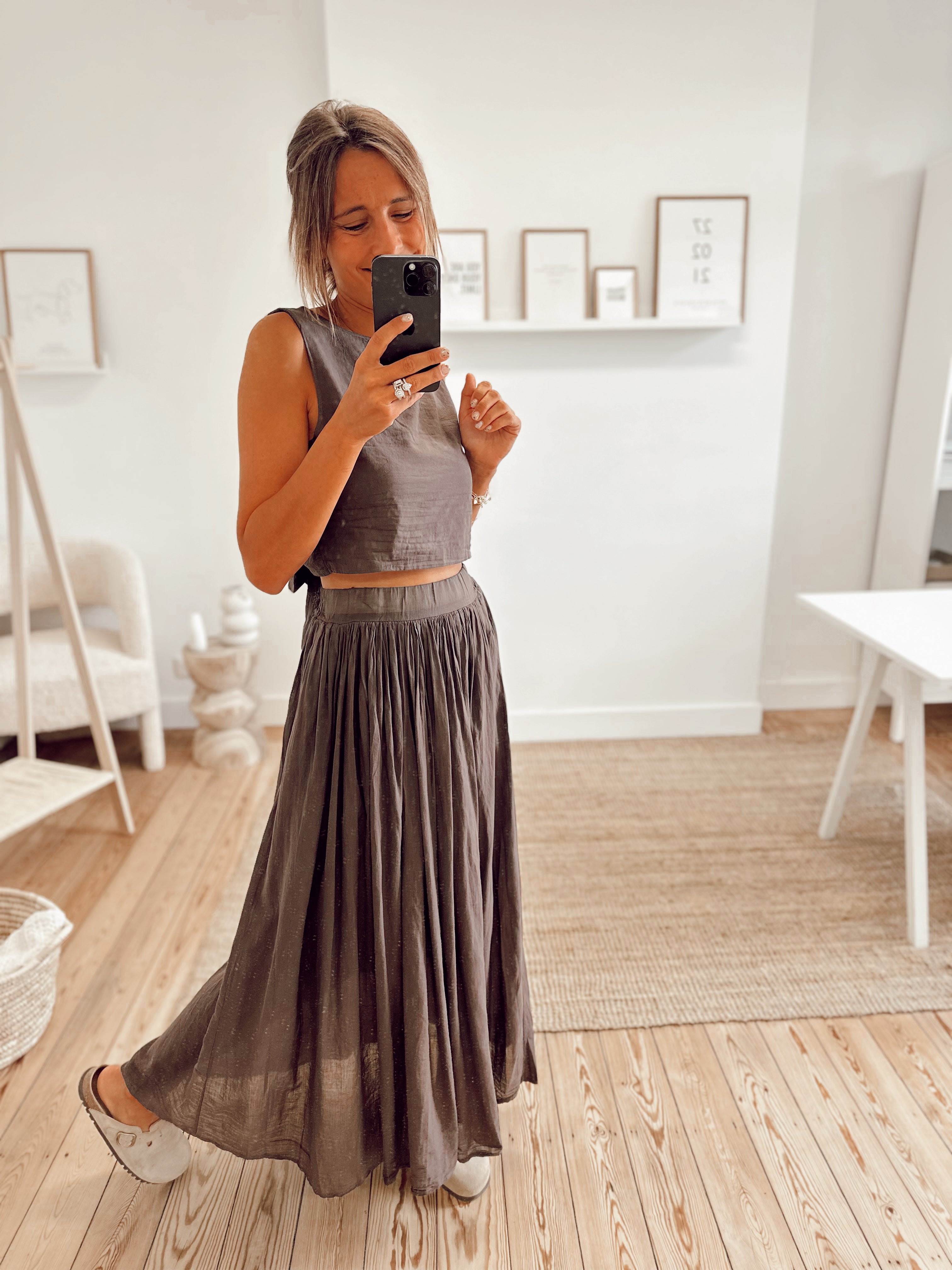 Top léopard, dos nu, à nouer. Existe uniquement en taille unique.