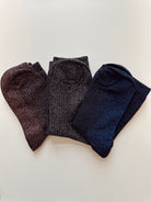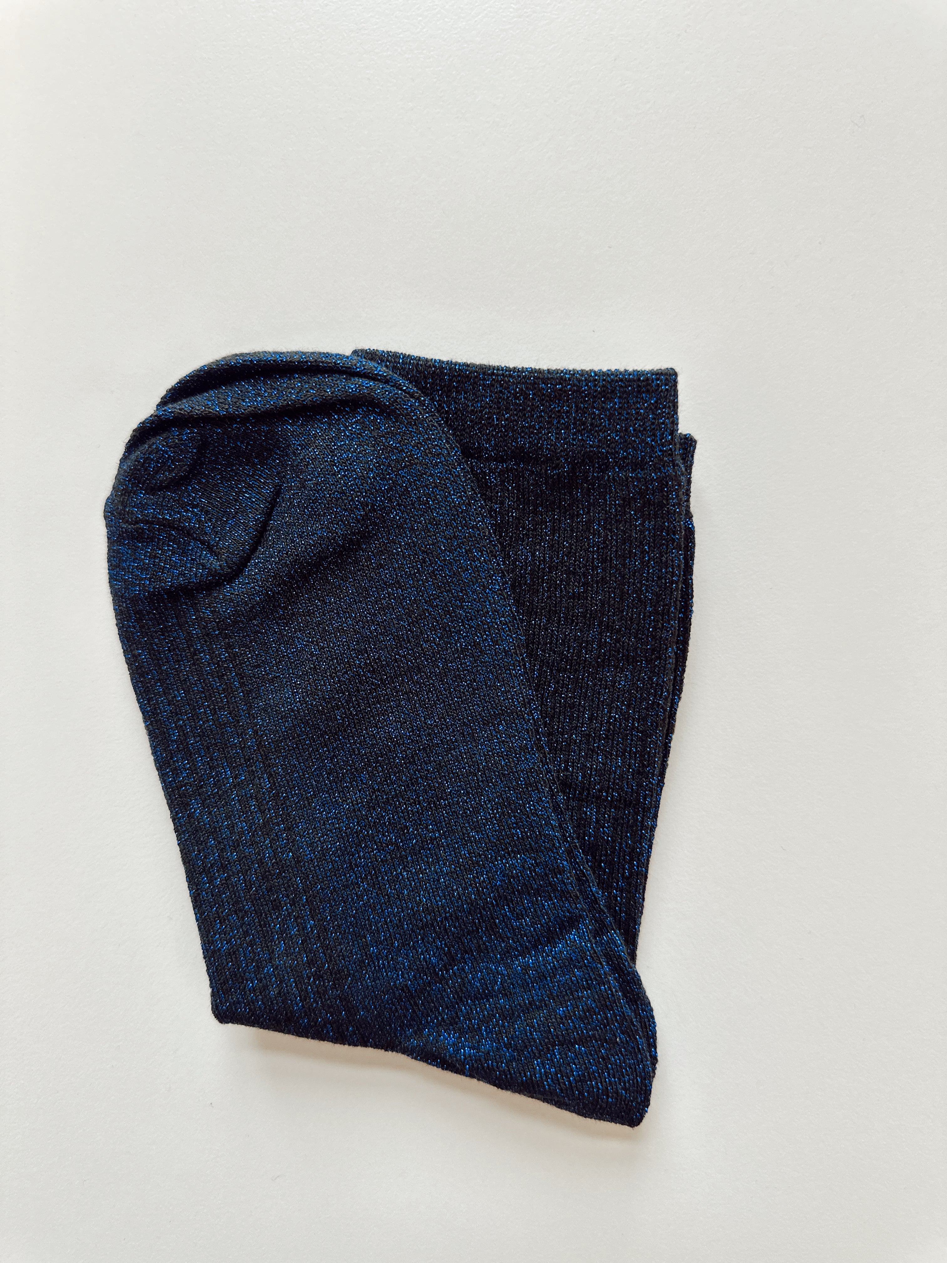 Chaussettes brillantes côtelées, elles sont disponibles en bleu, argenté et rose gold. Elles existent uniquement en taille unique mais s'adaptent à toutes les tailles.