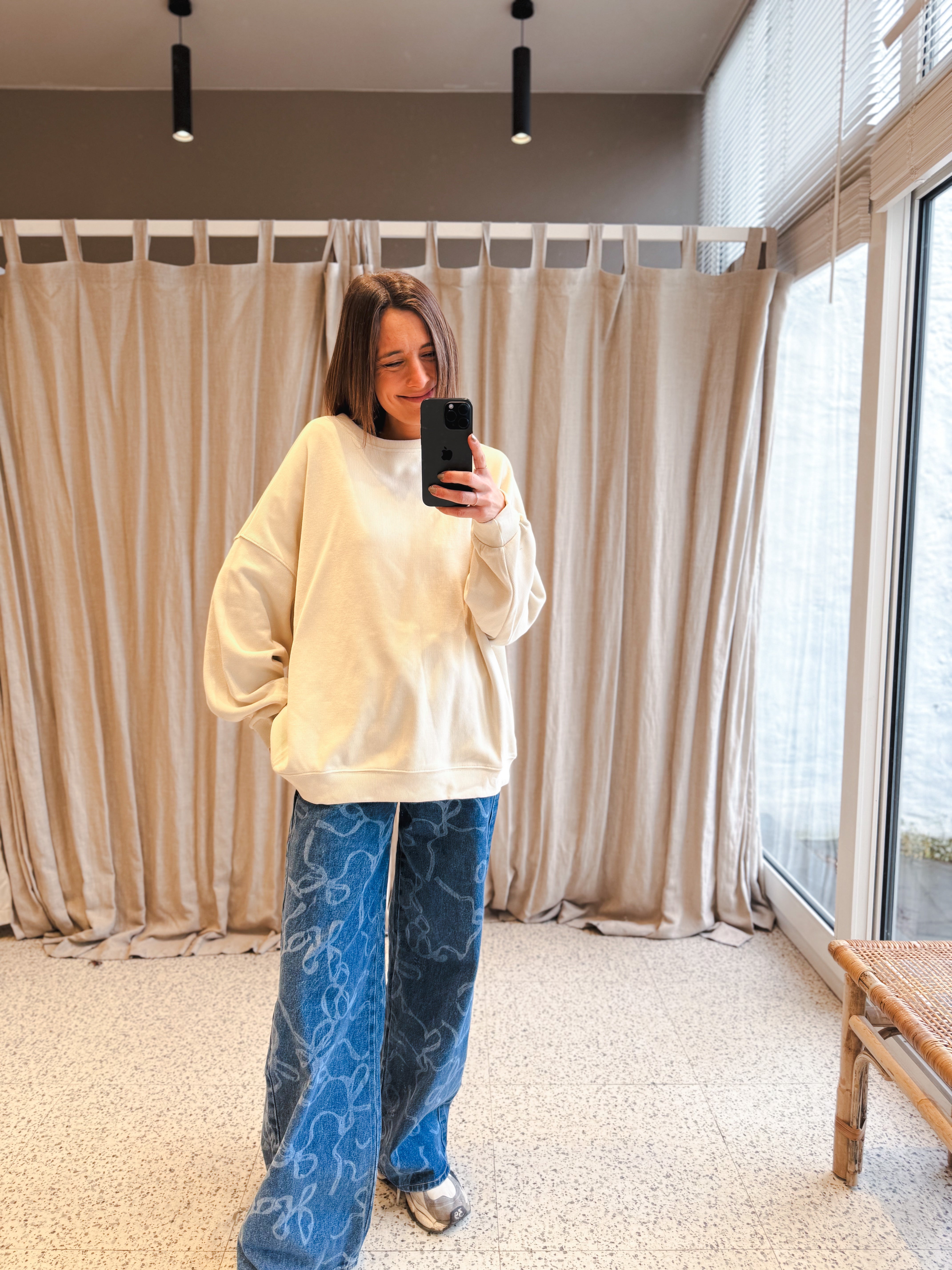 Découvrez le jean LIZZIE, au confort généreux. Avec son motif de nœuds distinctif et sa coupe ample, il épouse vos formes sans contrainte. Disponible de la taille 34 à 42, ce modèle s'adapte à tous les styles et morphologies pour un look décontracté et élégant.