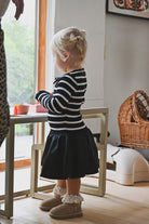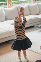 Cette robe pour enfants à manches longues, dotée d'un jupon bouffant, se décline en noir et blanc ainsi qu'en beige et noir, offrant un style adorable et unique.