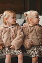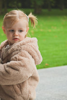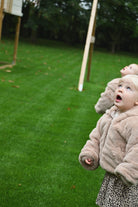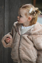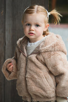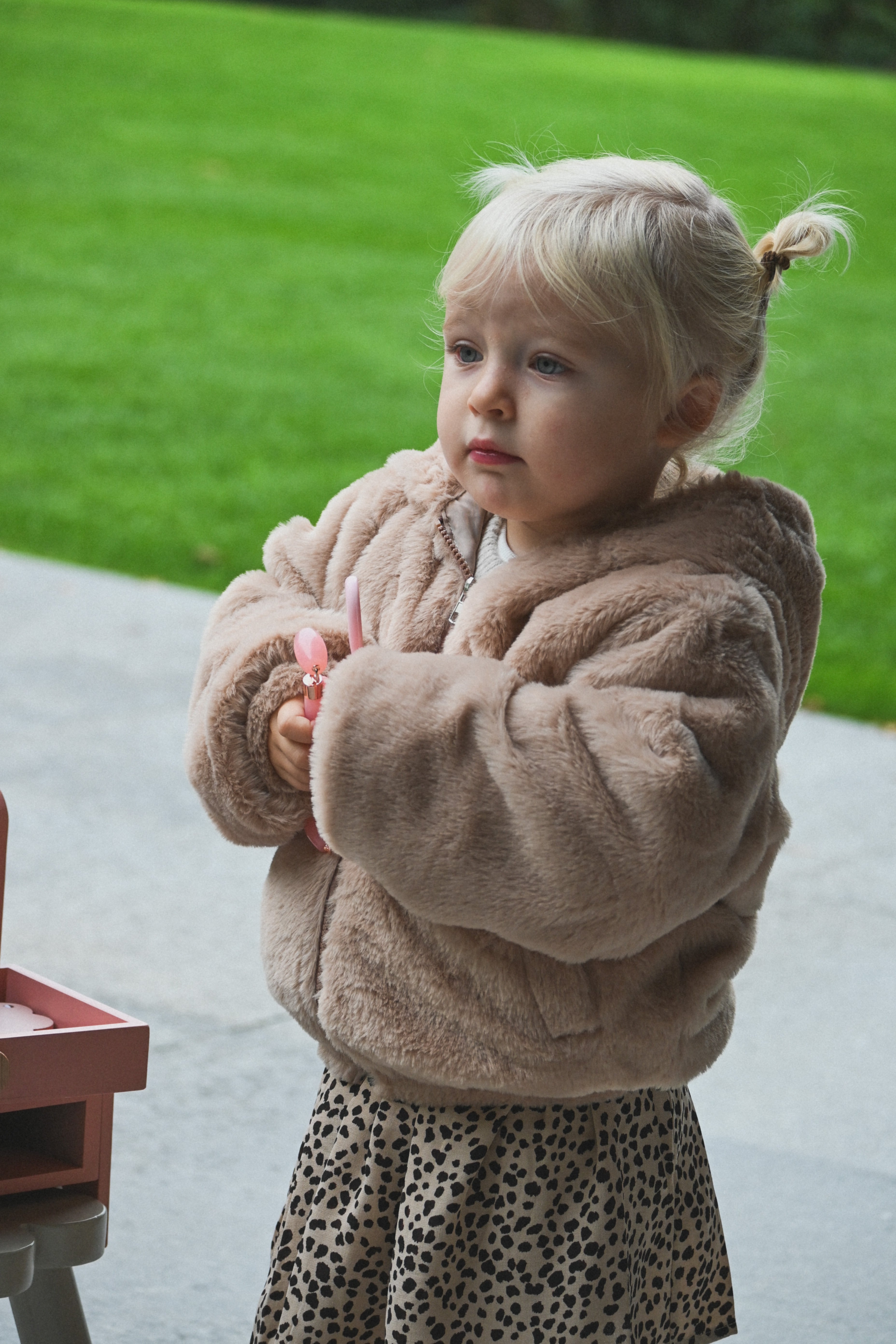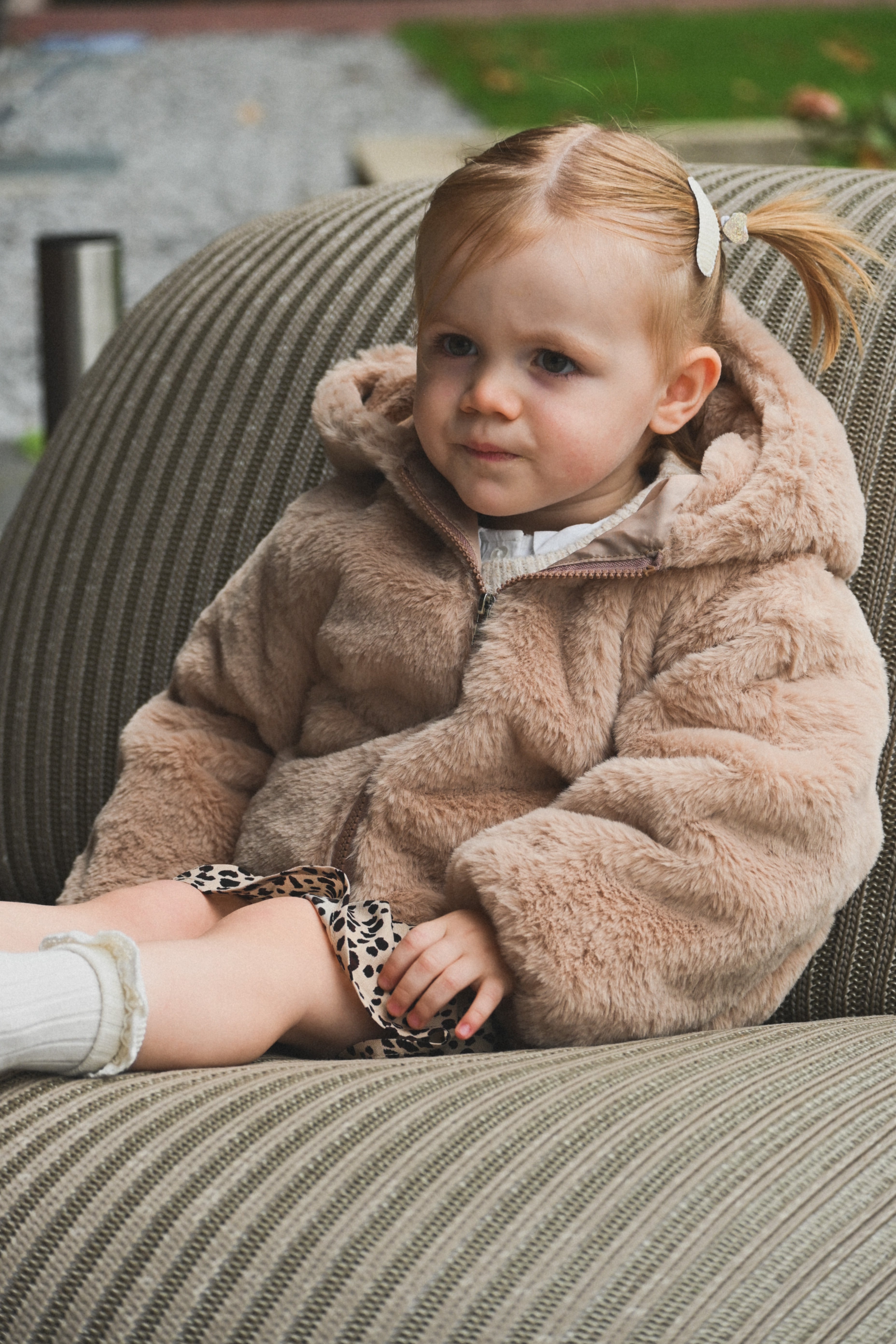 Cette veste mini JULIA en fausse fourrure beige offre une douceur exceptionnelle, agrémentée d’une capuche pratique et d’une fermeture zippée pour un style et un confort optimaux.