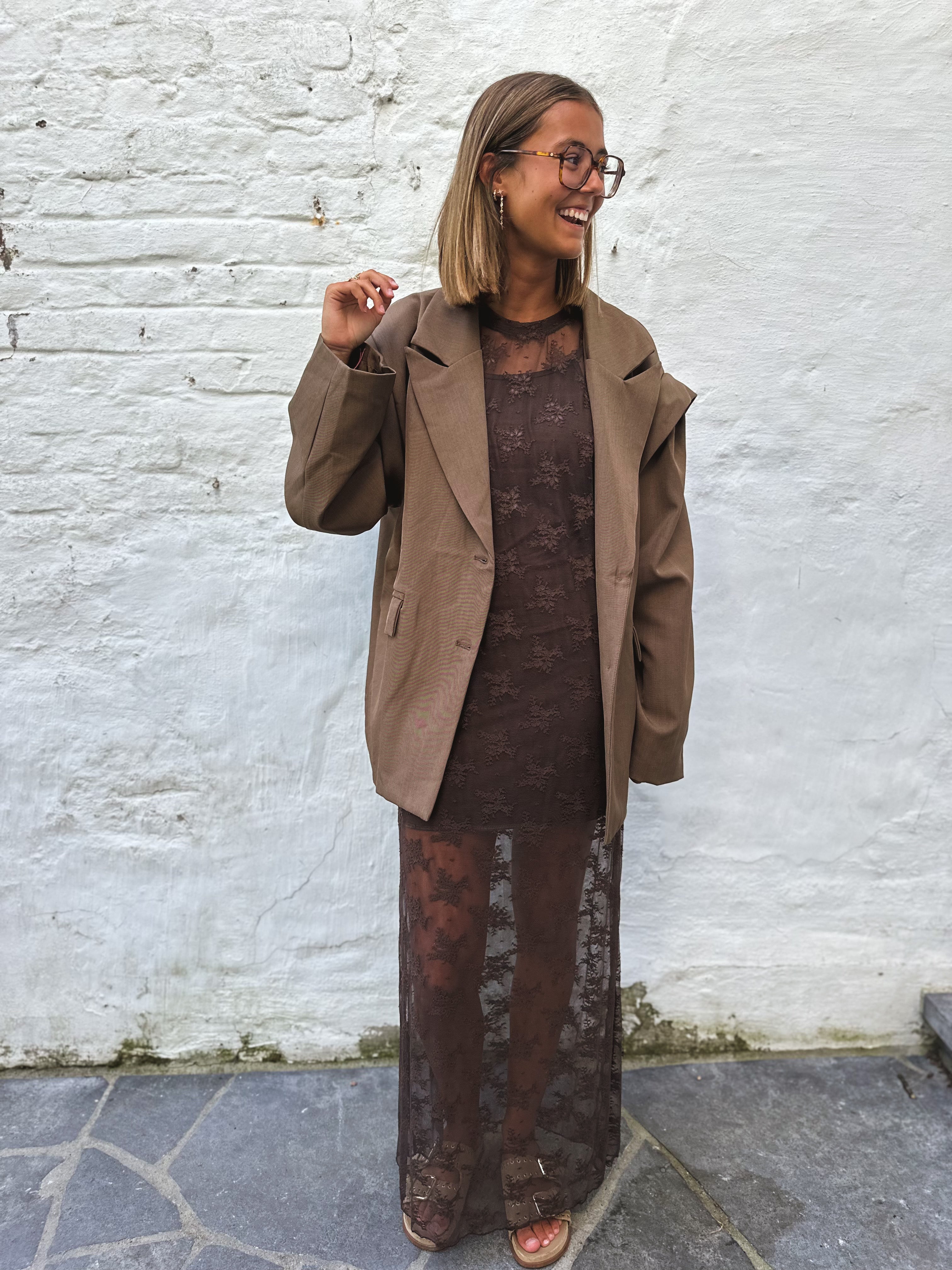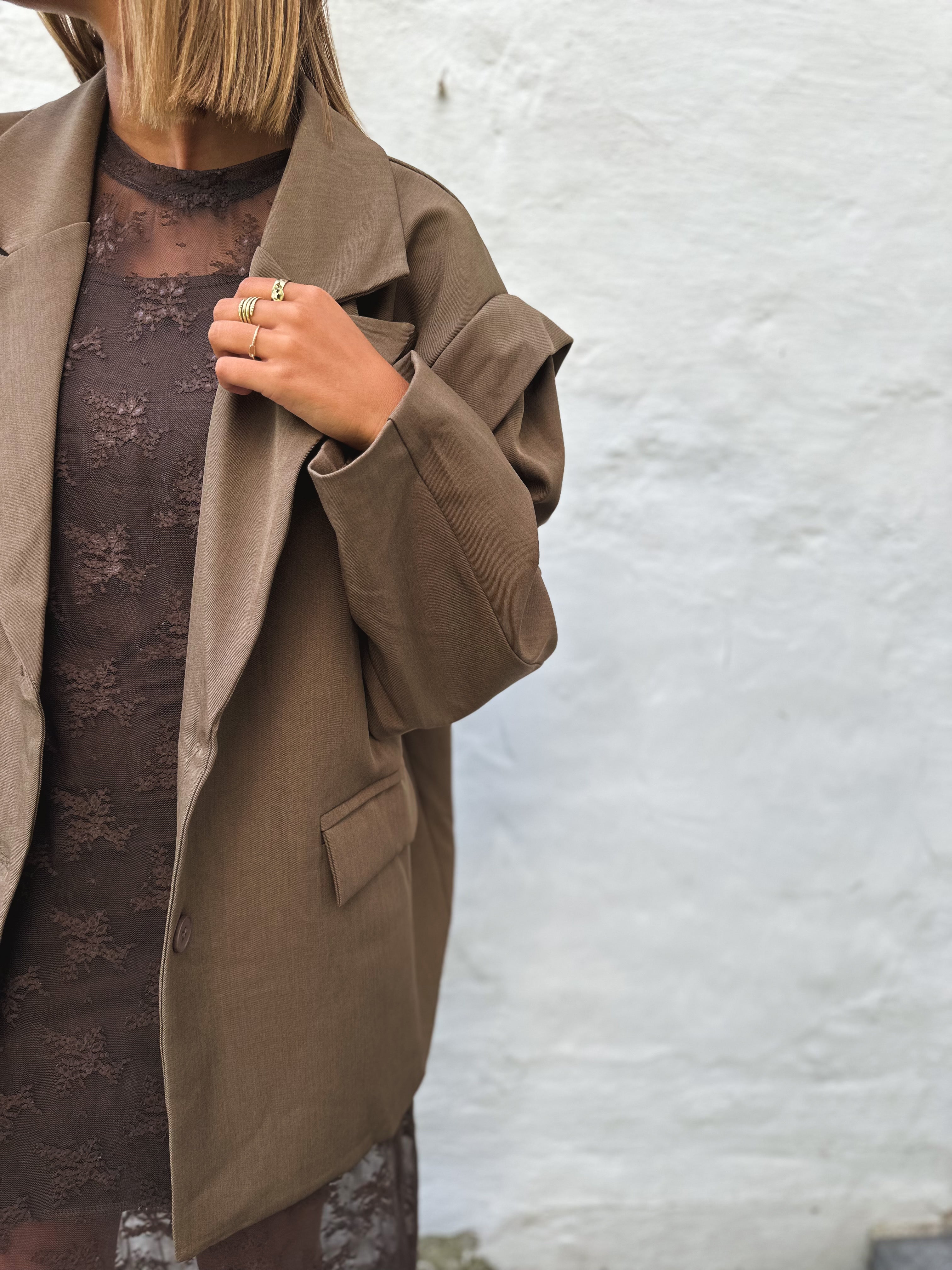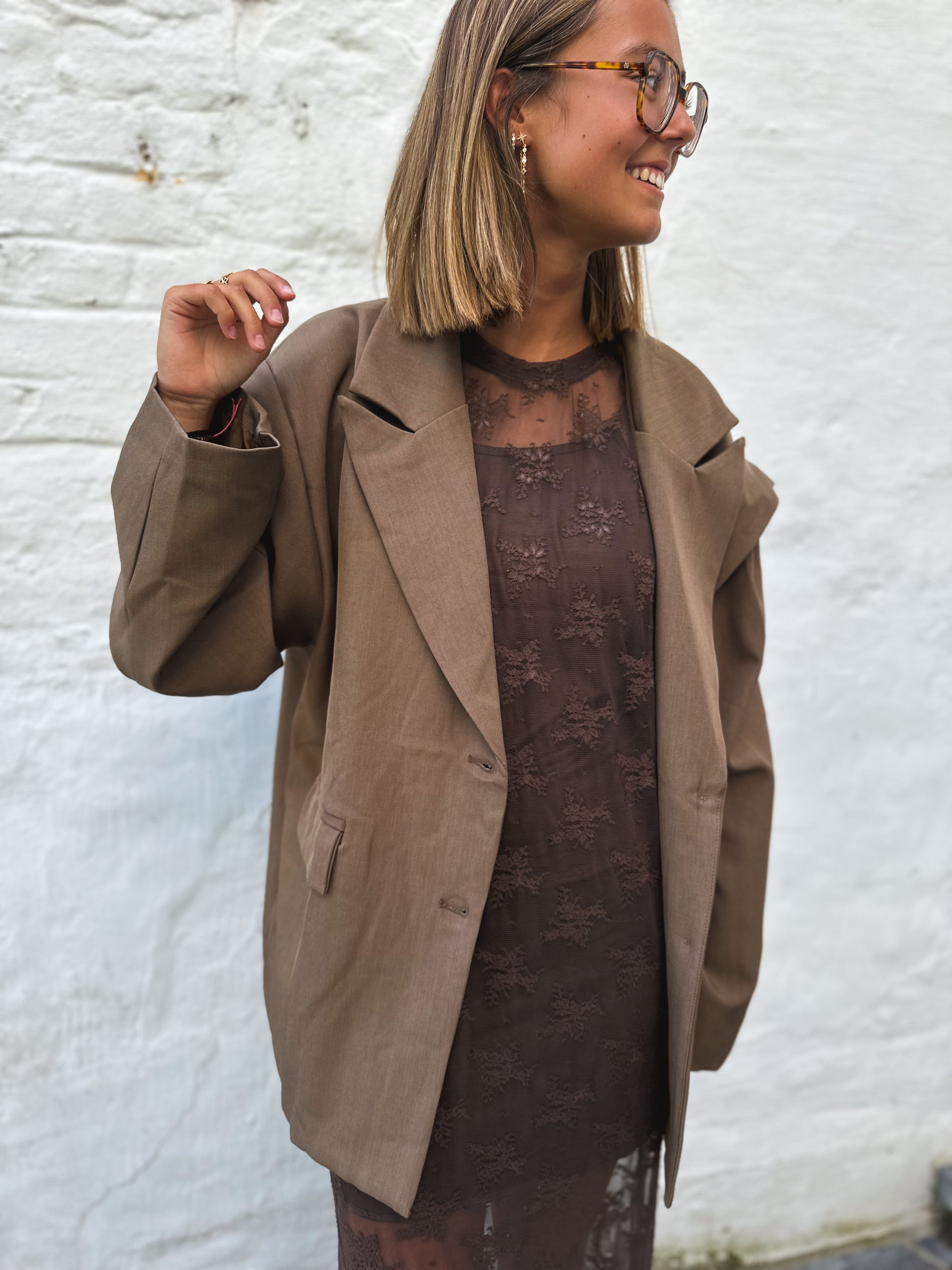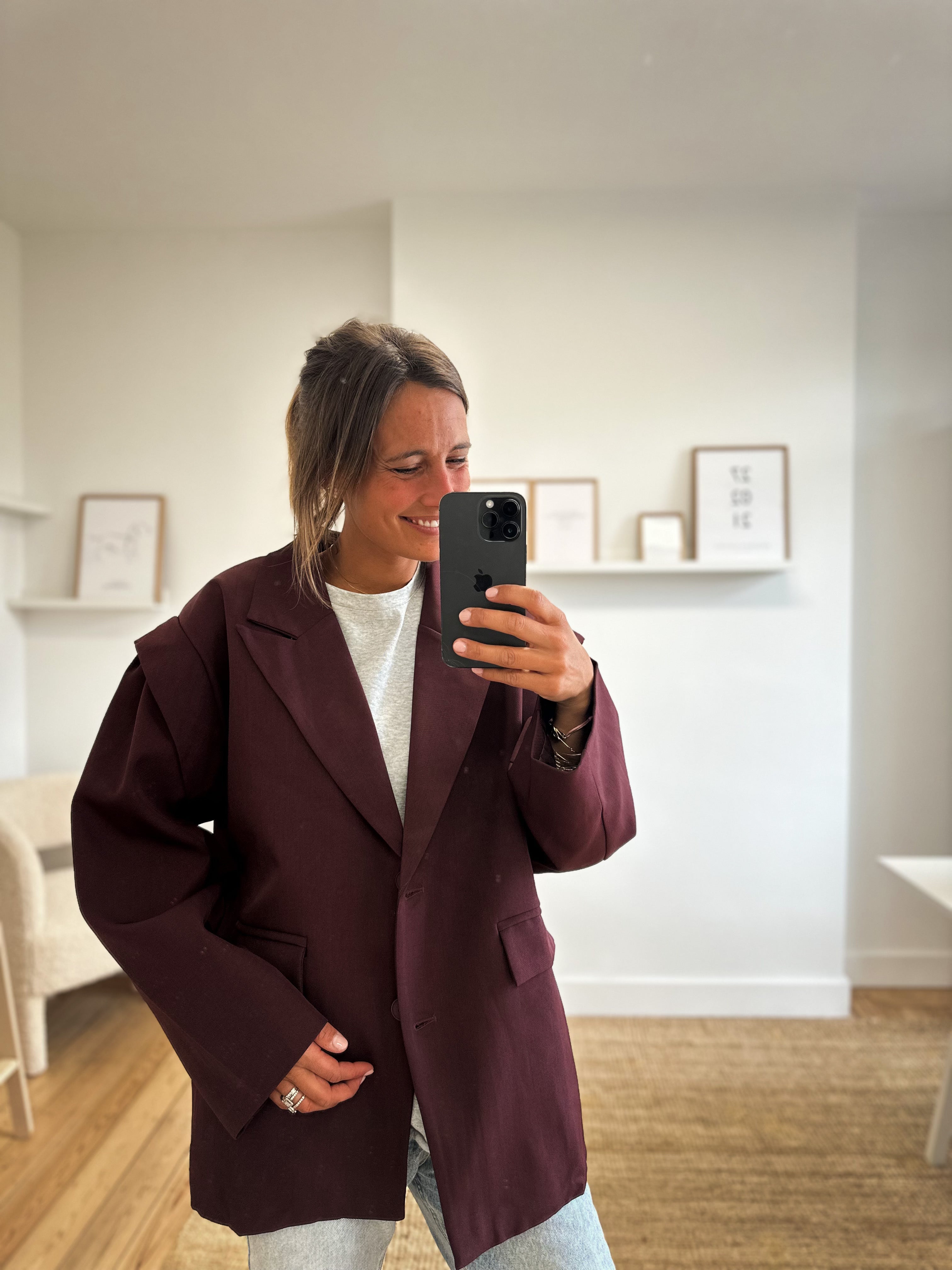 Ce blazer très ample, équipé d'une ceinture sans passant pour que vous puissiez choisir de l’attacher ou non, est disponible en bordeaux, taupe, beige et noir. Disponible en taille 1 ou 2, il s'adapte à toutes les morphologies, garantissant un look élégant et polyvalent qui rehausse n’importe quelle silhouette.