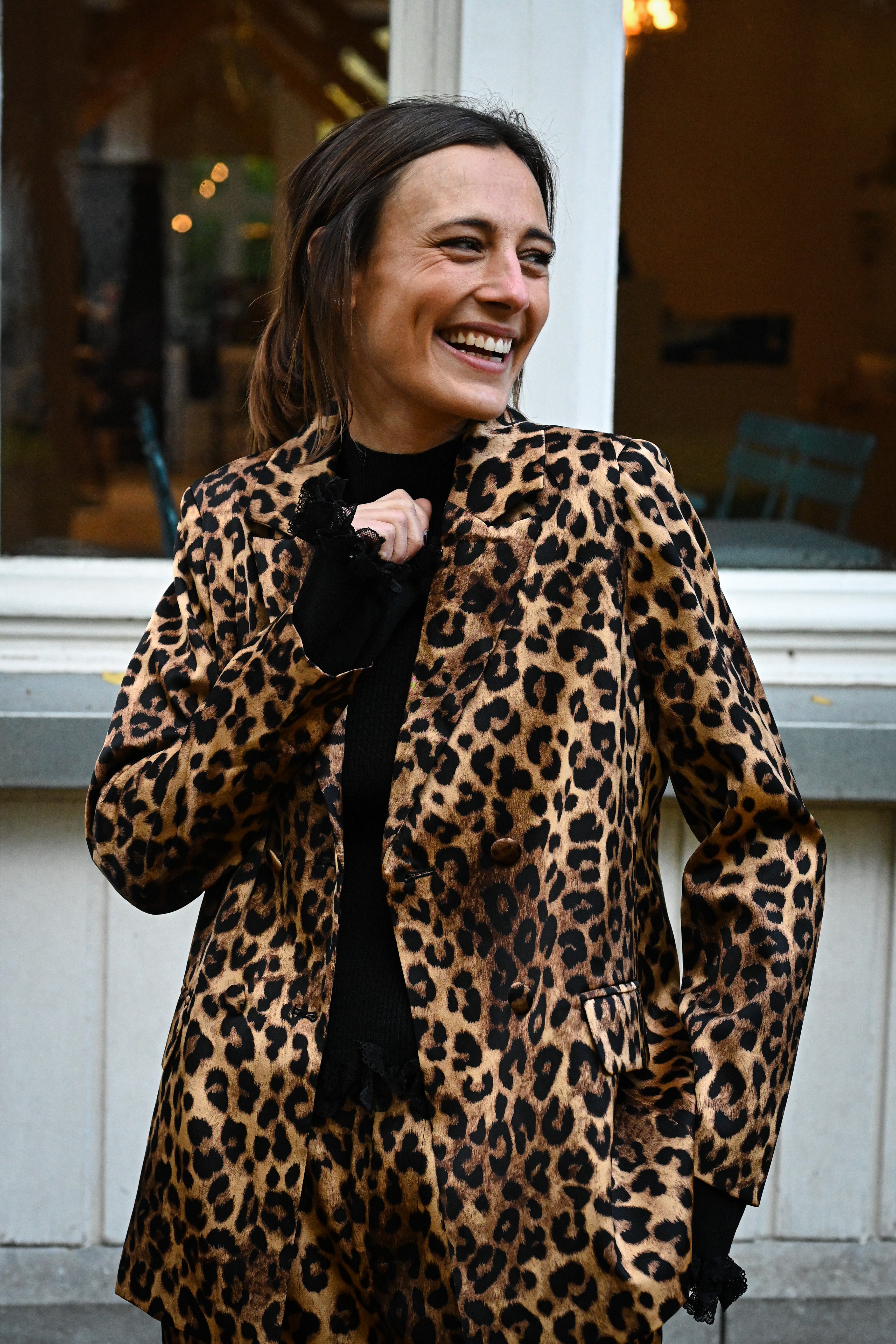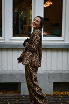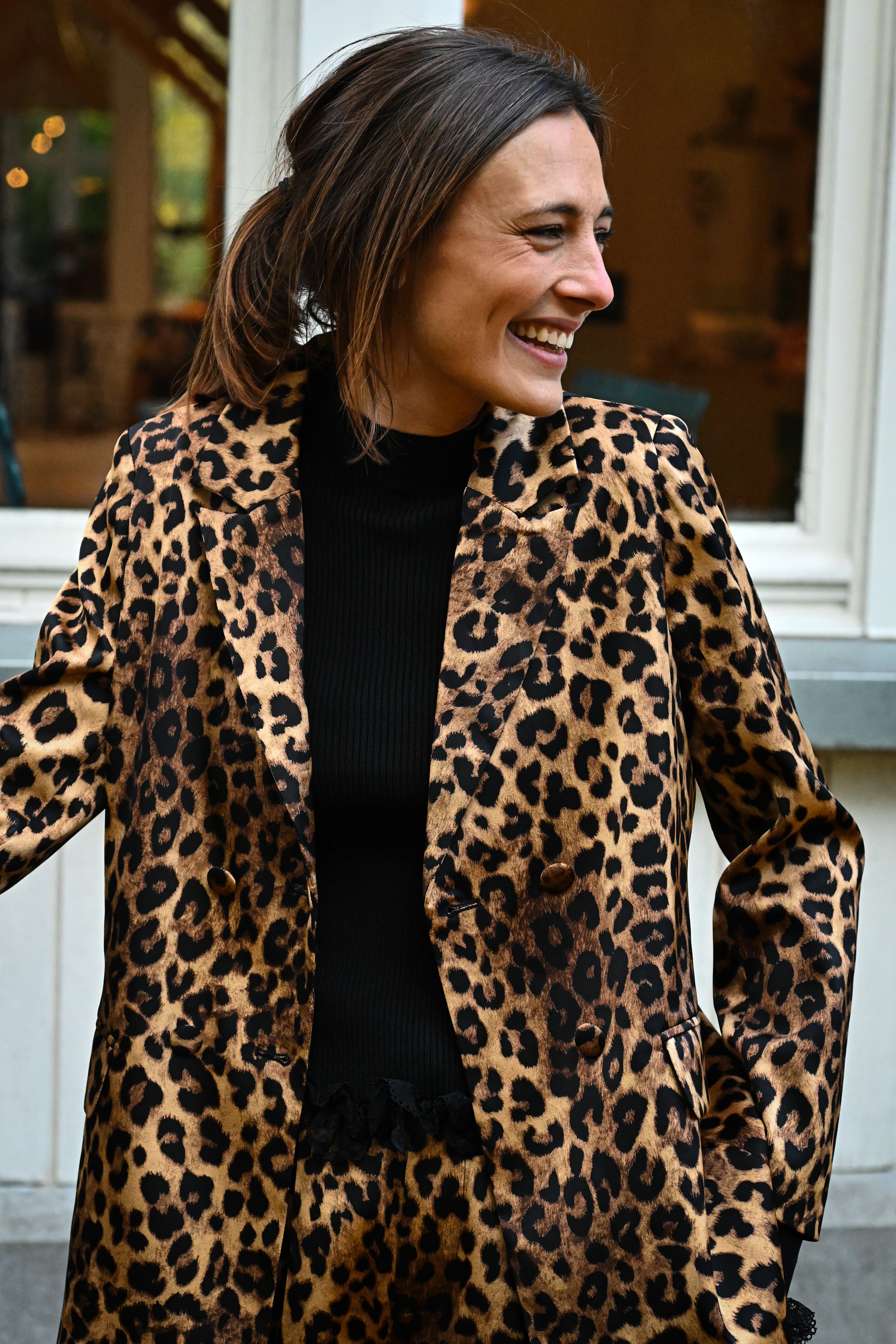 Découvrez le blazer oversize à motif léopard, disponible en tailles S, M et L, offrant une coupe ample pour un style audacieux et confortable.