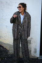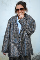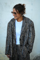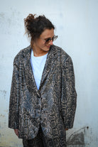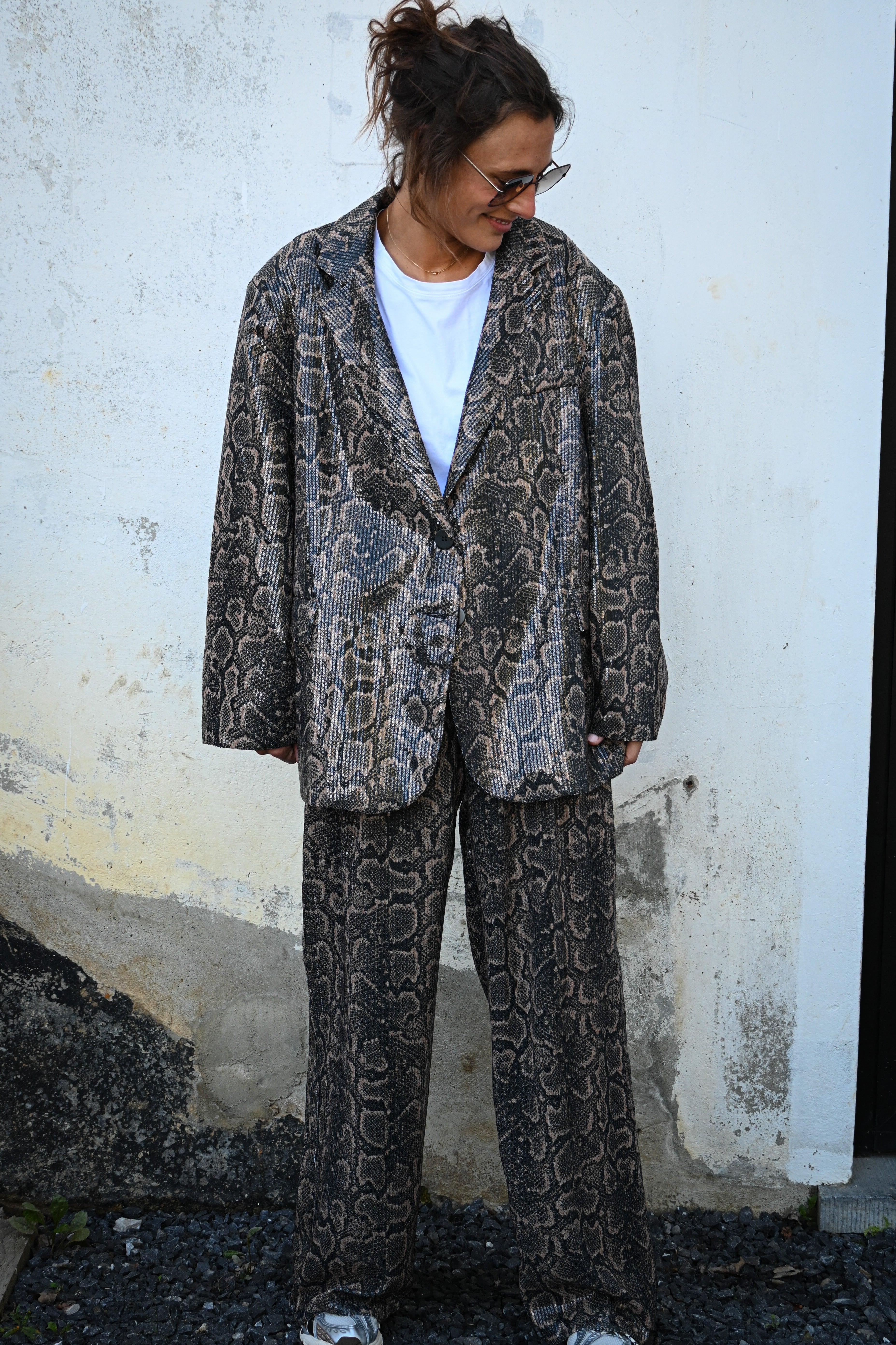 Blazer à motif serpent en sequins, conçu en taille unique pour s’ajuster parfaitement à toutes les silhouettes grâce à sa coupe ample et confortable.