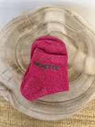 Ces chaussettes scintillantes arborent l’inscription "Bichette" et sont proposées en taille unique, adaptée du 36 au 40. Apportez une touche d’éclat à votre style avec ce modèle incontournable.