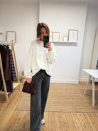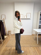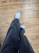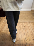 Ce pantalon en jean gris rayé est orné de strass ton sur ton pour une touche élégante. Sa coupe droite et ample offre un confort optimal, disponible du XS au L pour s’adapter à toutes les silhouettes.