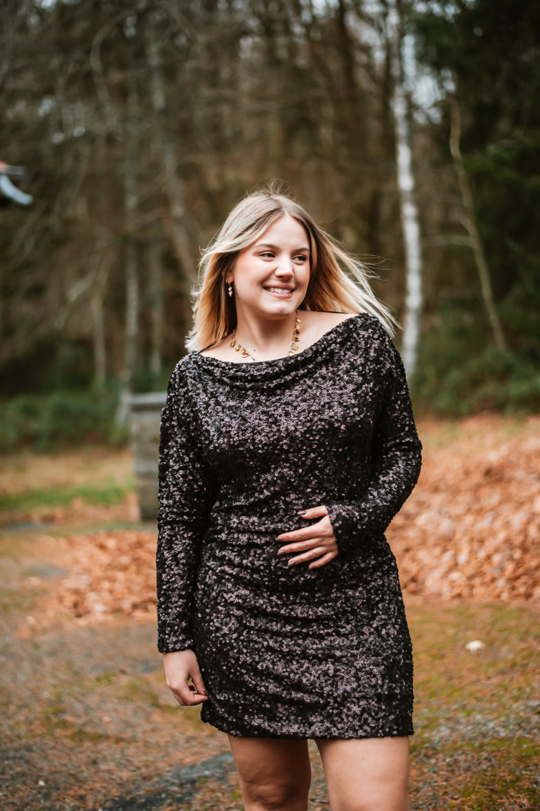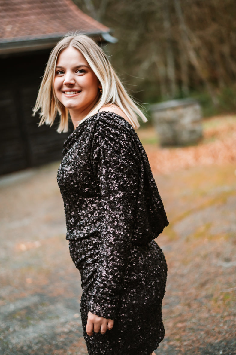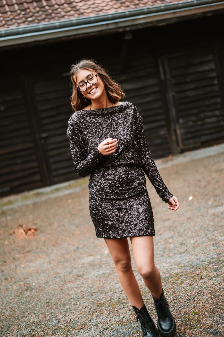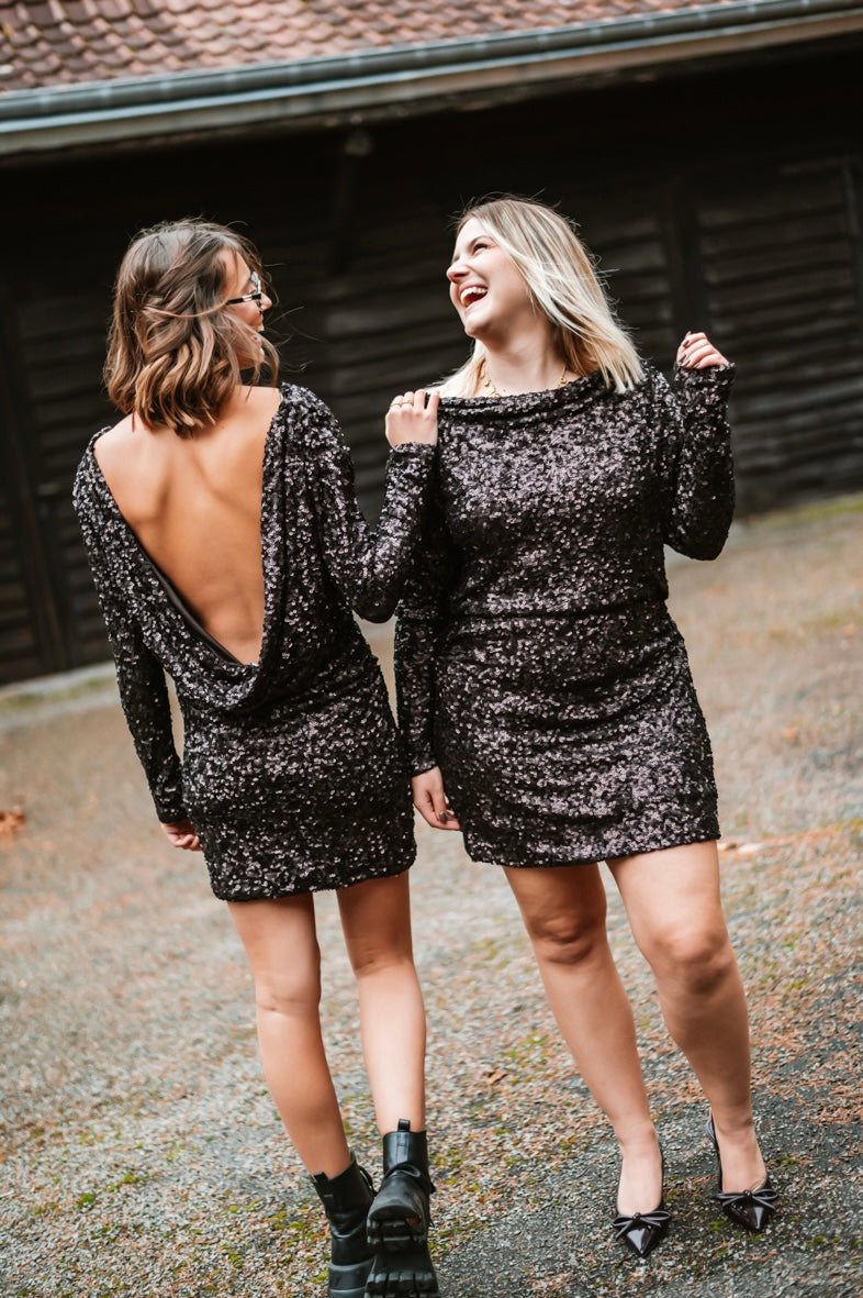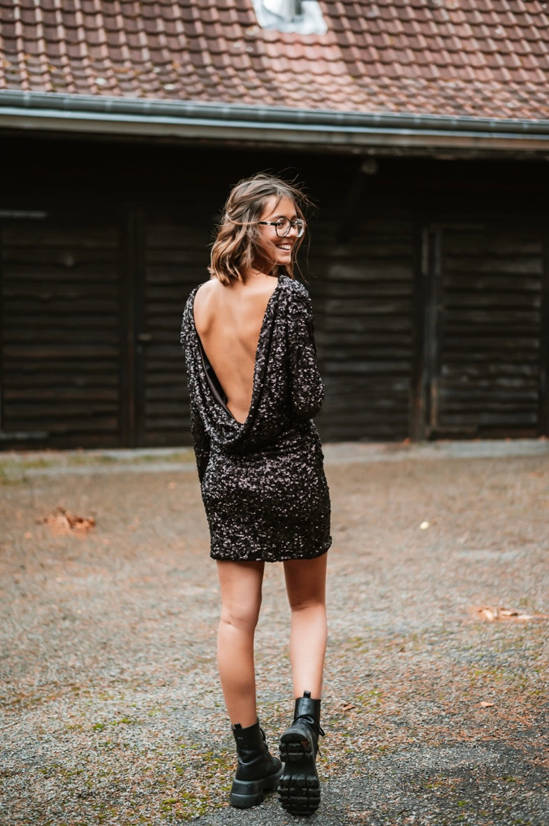 Découvrez la Robe LIDIA, une pièce pour vos soirées glamour. Avec ses sequins scintillants, ses manches longues élégantes et son dos plongeant audacieux, elle garantit une allure irrésistible. Disponible en S, M et L pour un ajustement parfait.