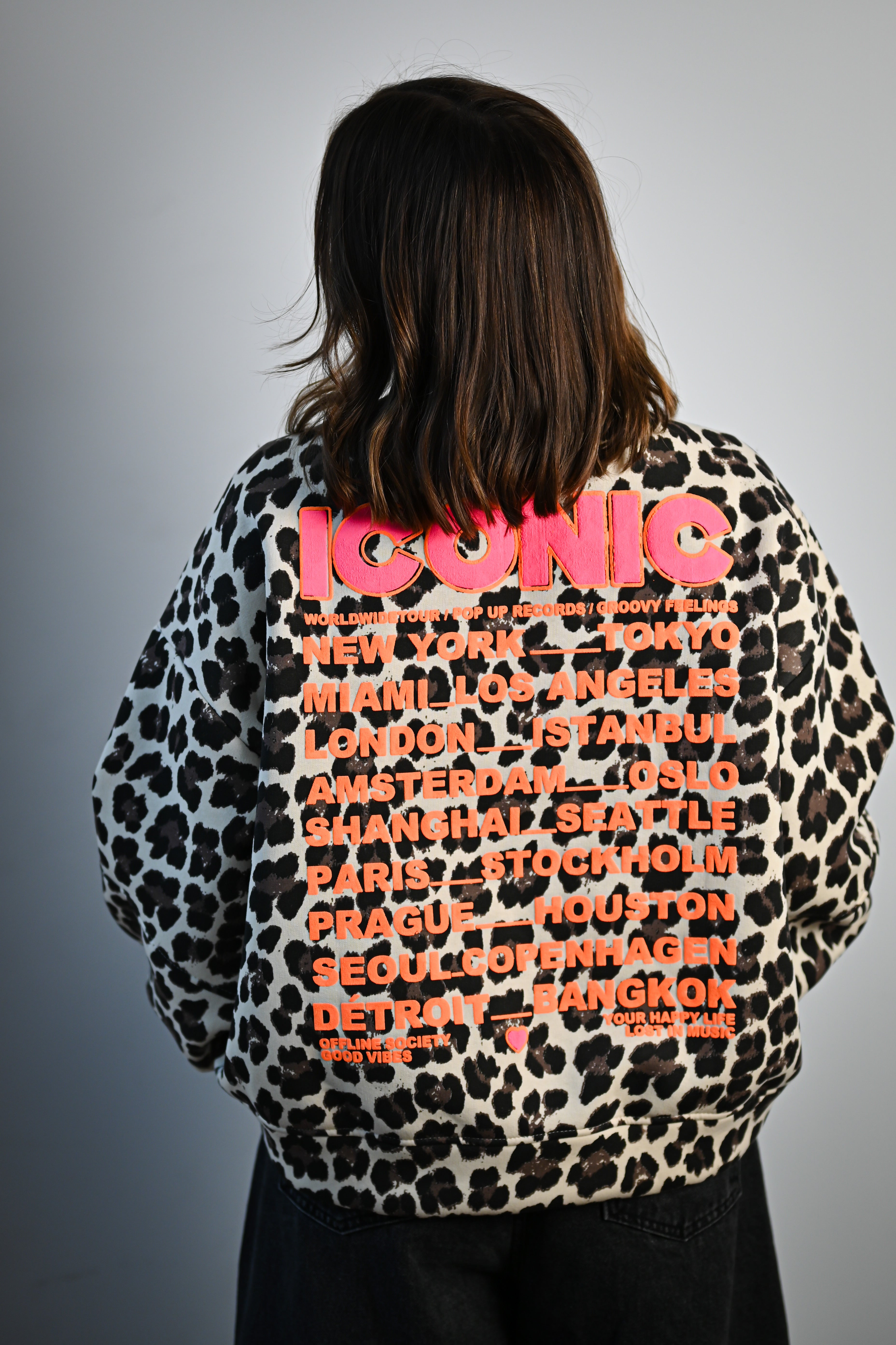 Découvrez notre sweat oversize léopard qui allie style sauvage et détails iconiques. Arborez l'écriture rose signature sur l'avant et l'arrière, complétée par un patch blanc distinctif sur la manche. Coupe généreuse et taille unique pour un confort maximal. L'accessoire incontournable pour affirmer votre look avec caractère.