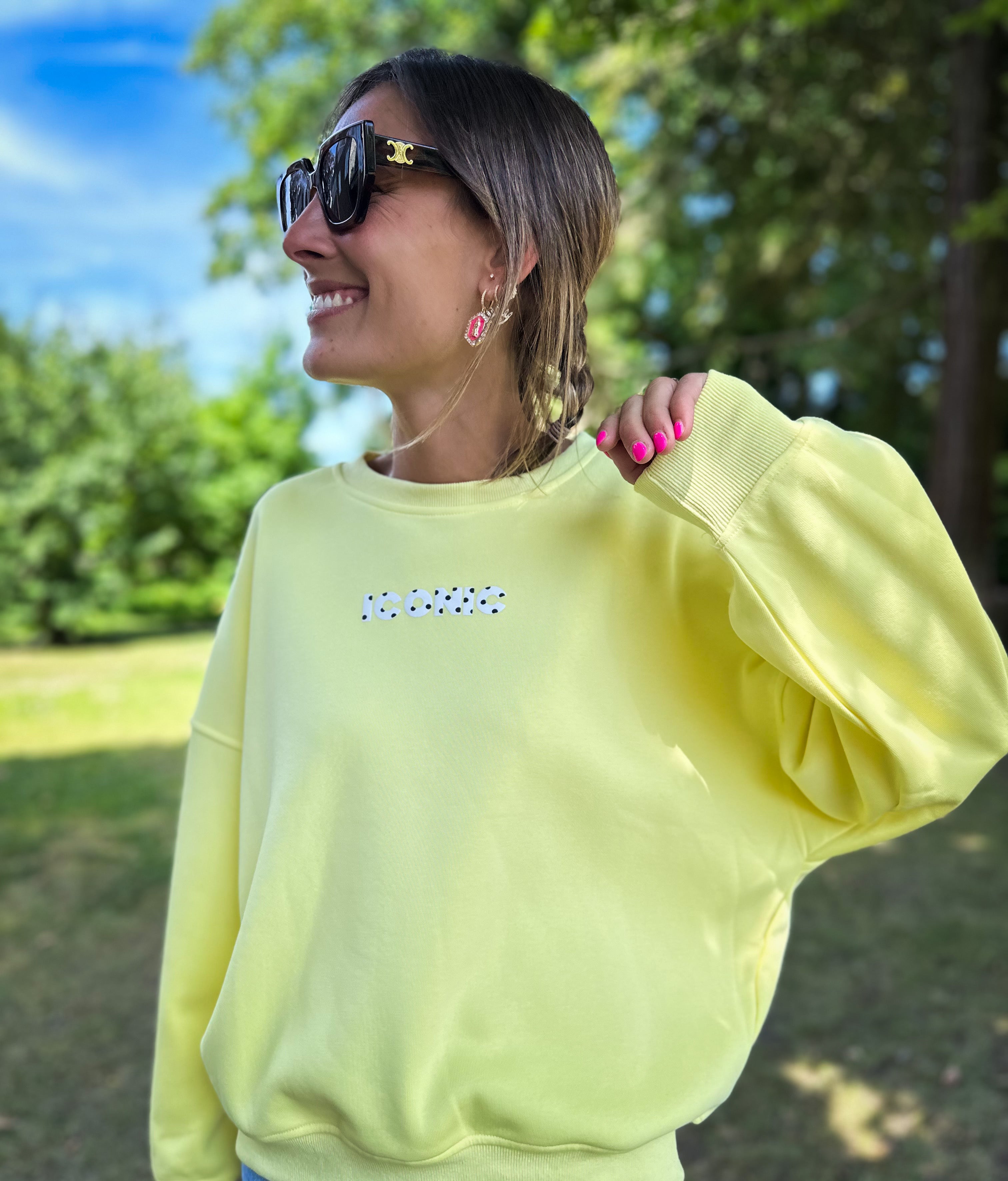 Découvrez notre Sweat ICONIC, le basique incontournable qui allie confort et style. Cet intemporel arbore un col rond épuré et des inscriptions signature à l'avant et au dos pour affirmer votre personnalité. Entièrement doublé pour une chaleur optimale, il épouse parfaitement votre silhouette en taille unique, s'adaptant facilement du 34 au 42. Un vêtement polyvalent qui devient rapidement un favori de votre garde-robe.