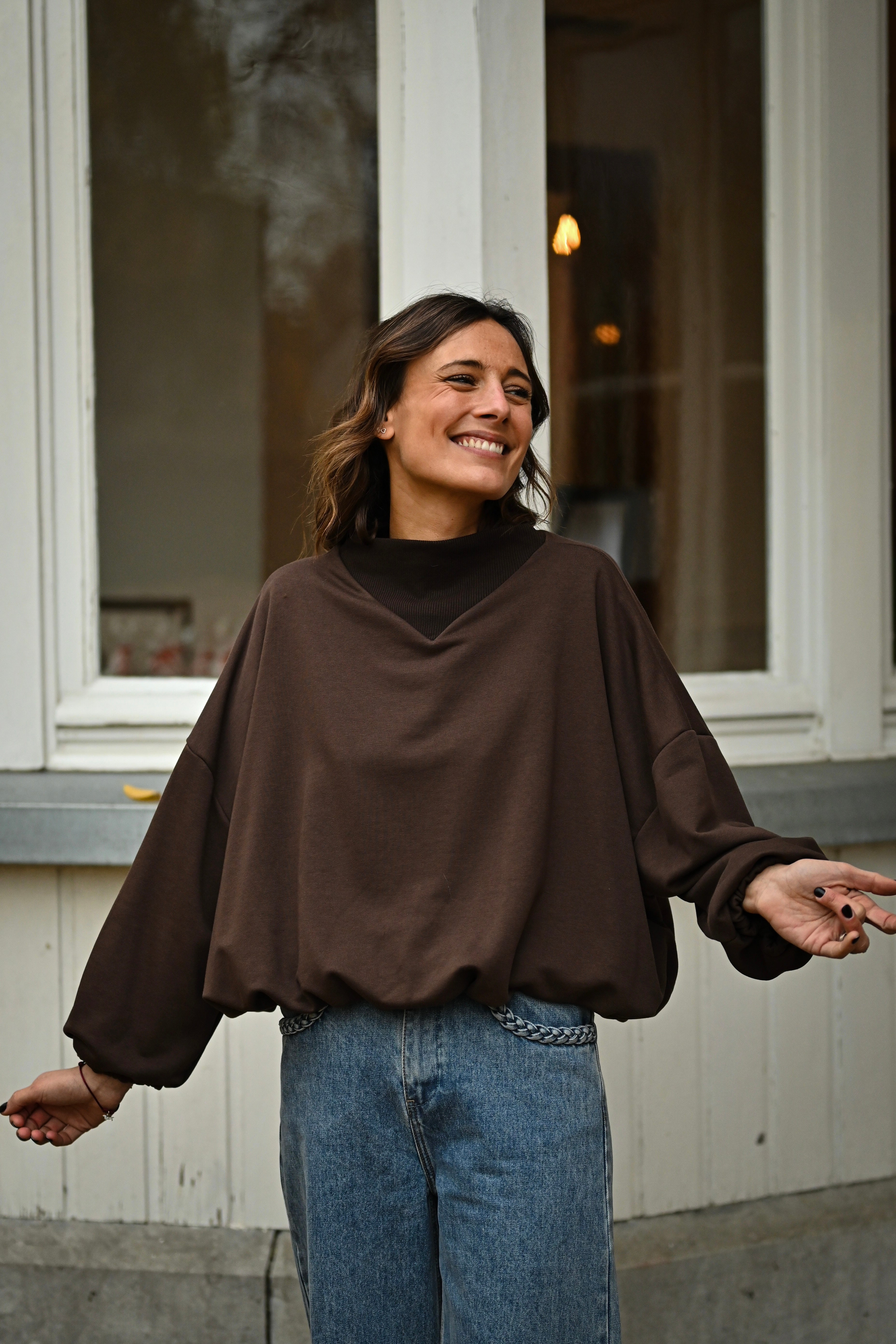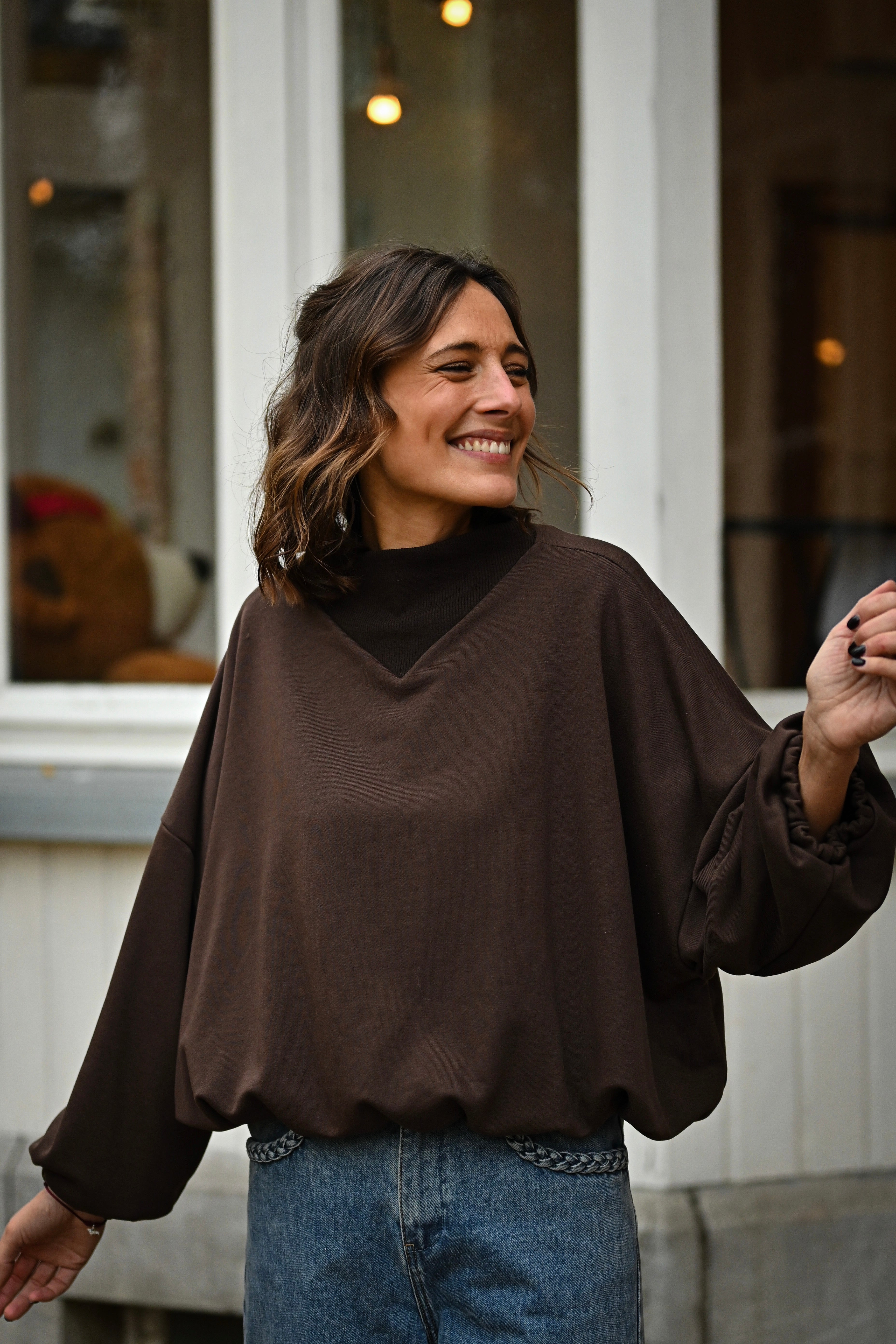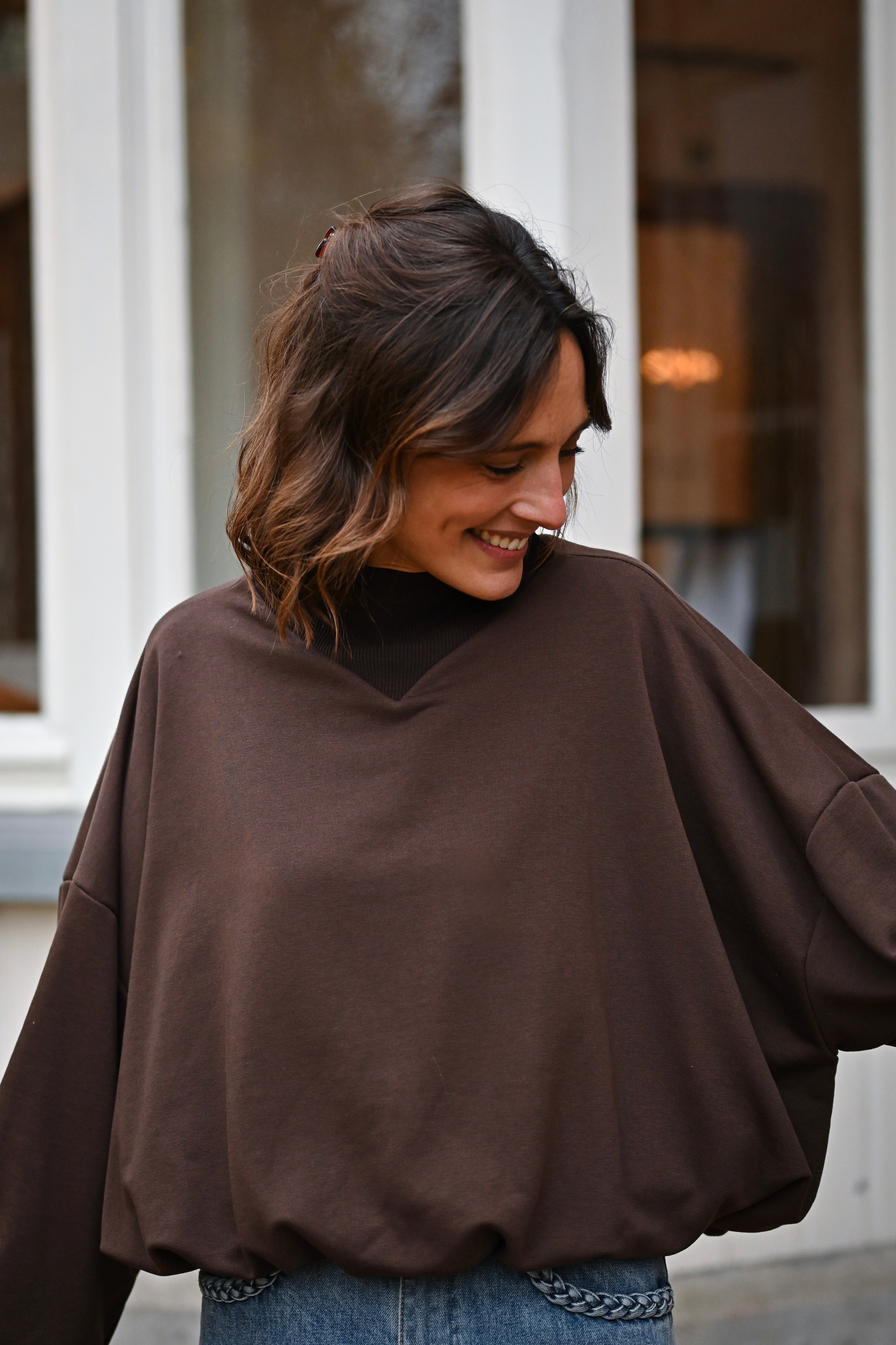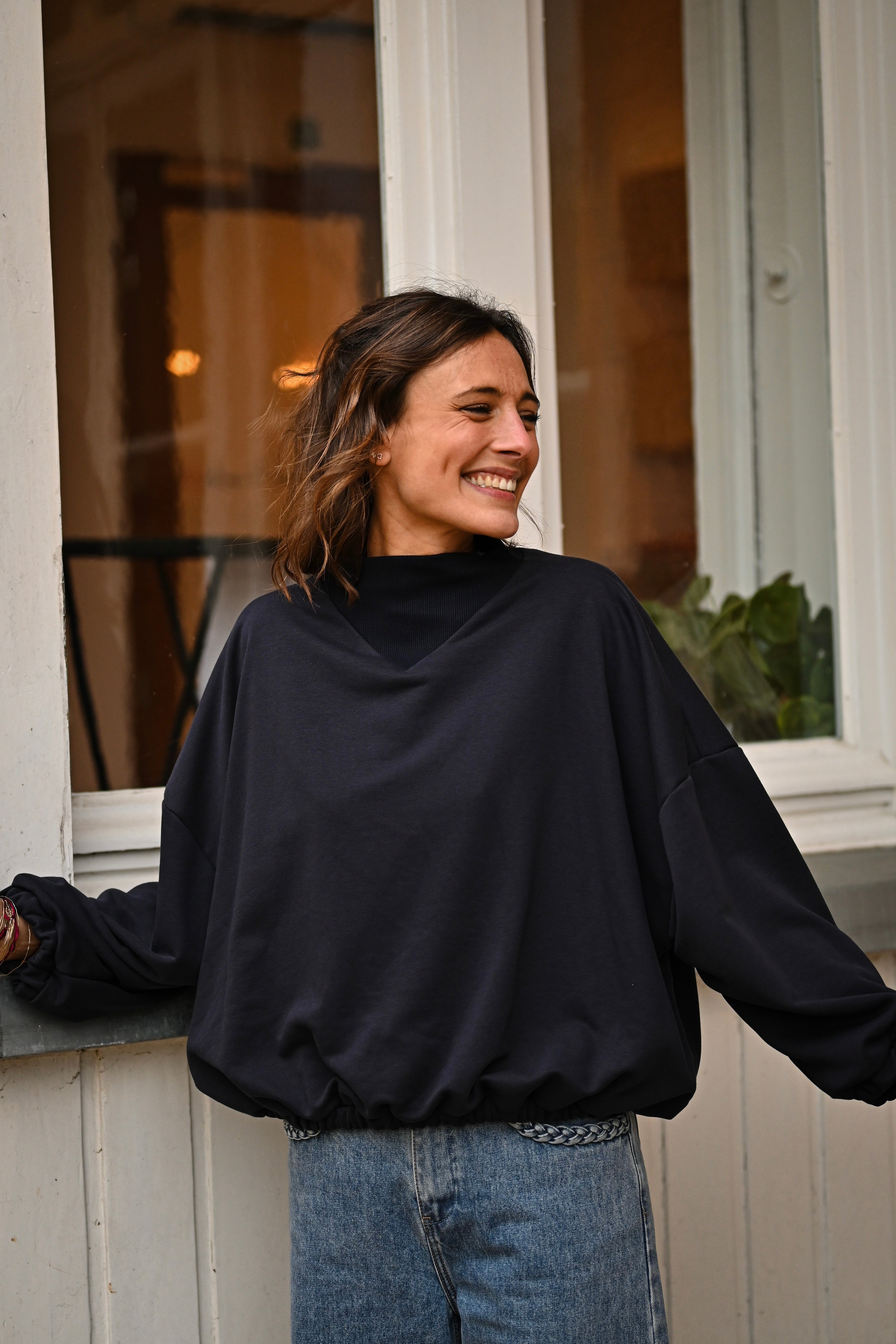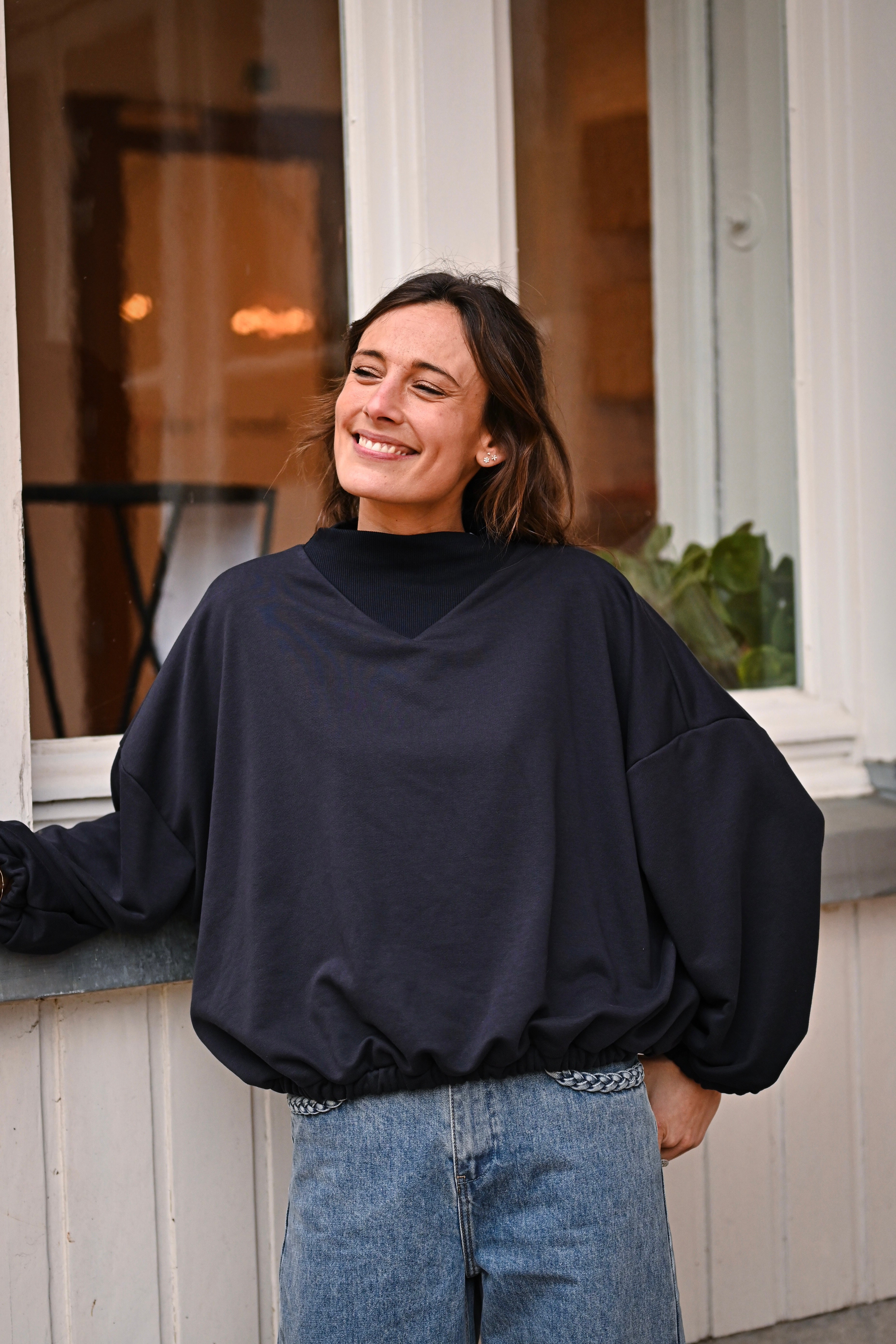 Découvrez le Sweat MALIA, un incontournable de votre garde-robe avec son col montant élégant et ses manches généreuses. Conçu en taille unique pour s'adapter à tous, ce sweat allie confort et style pour un look effortless au quotidien.