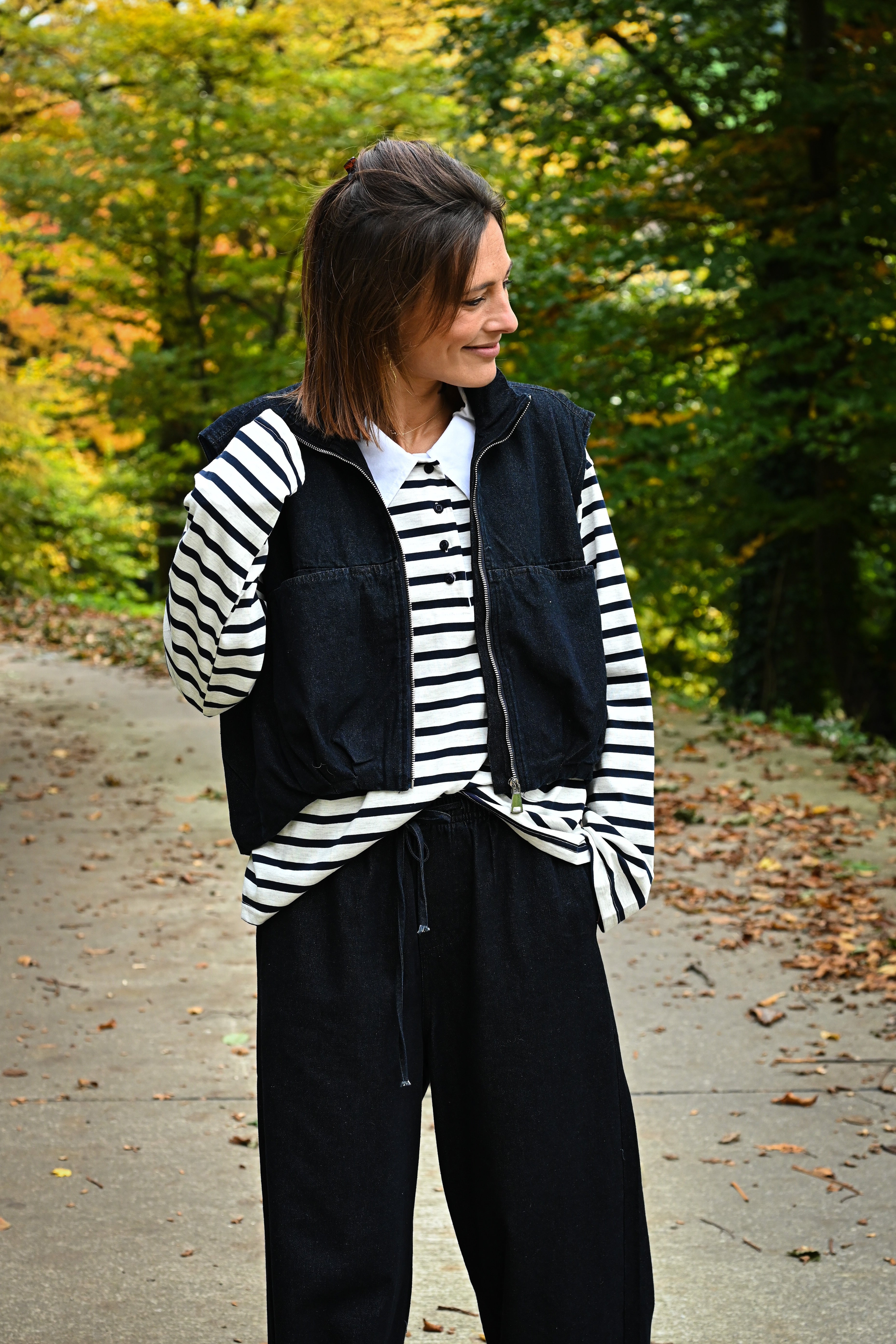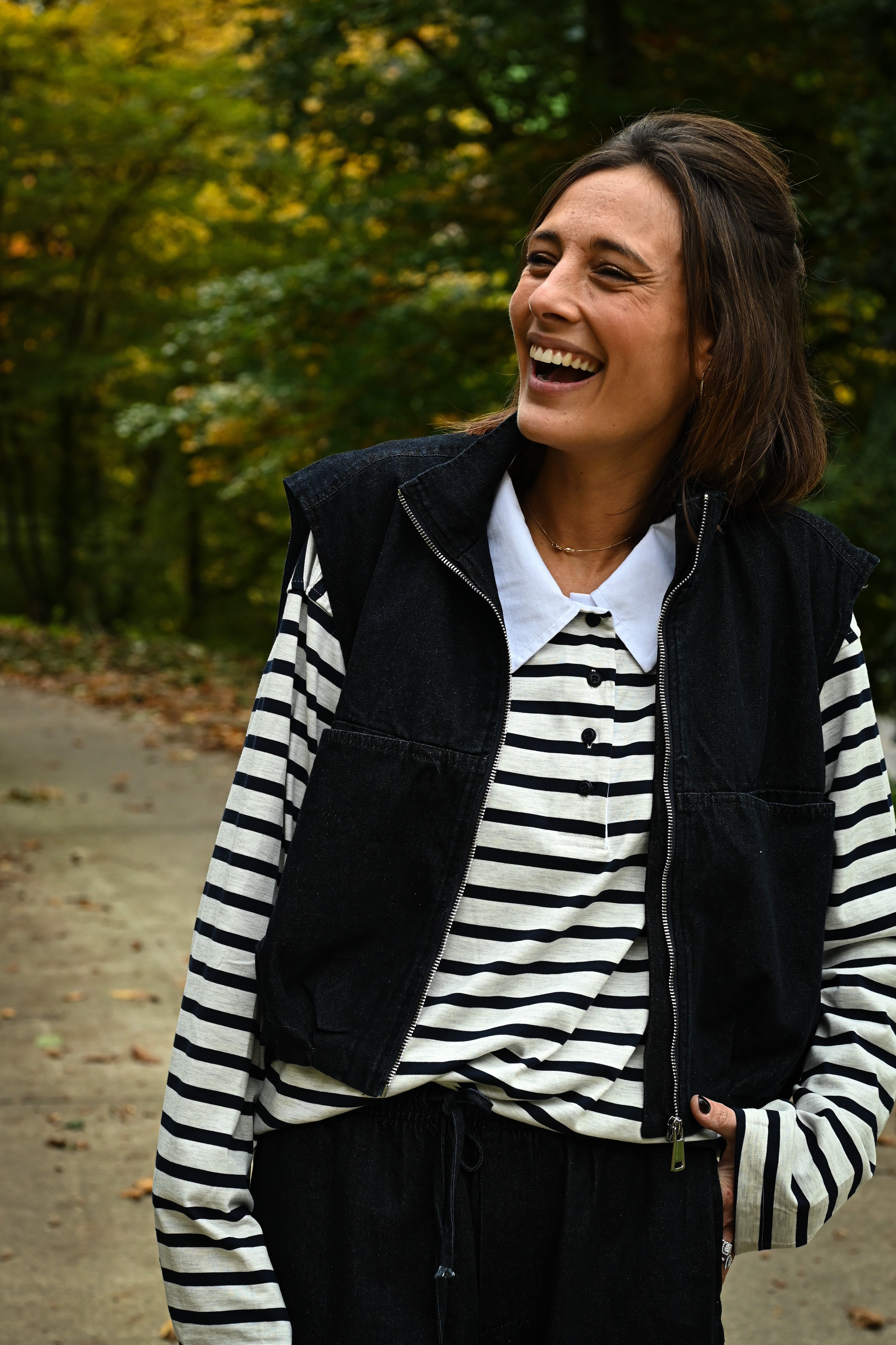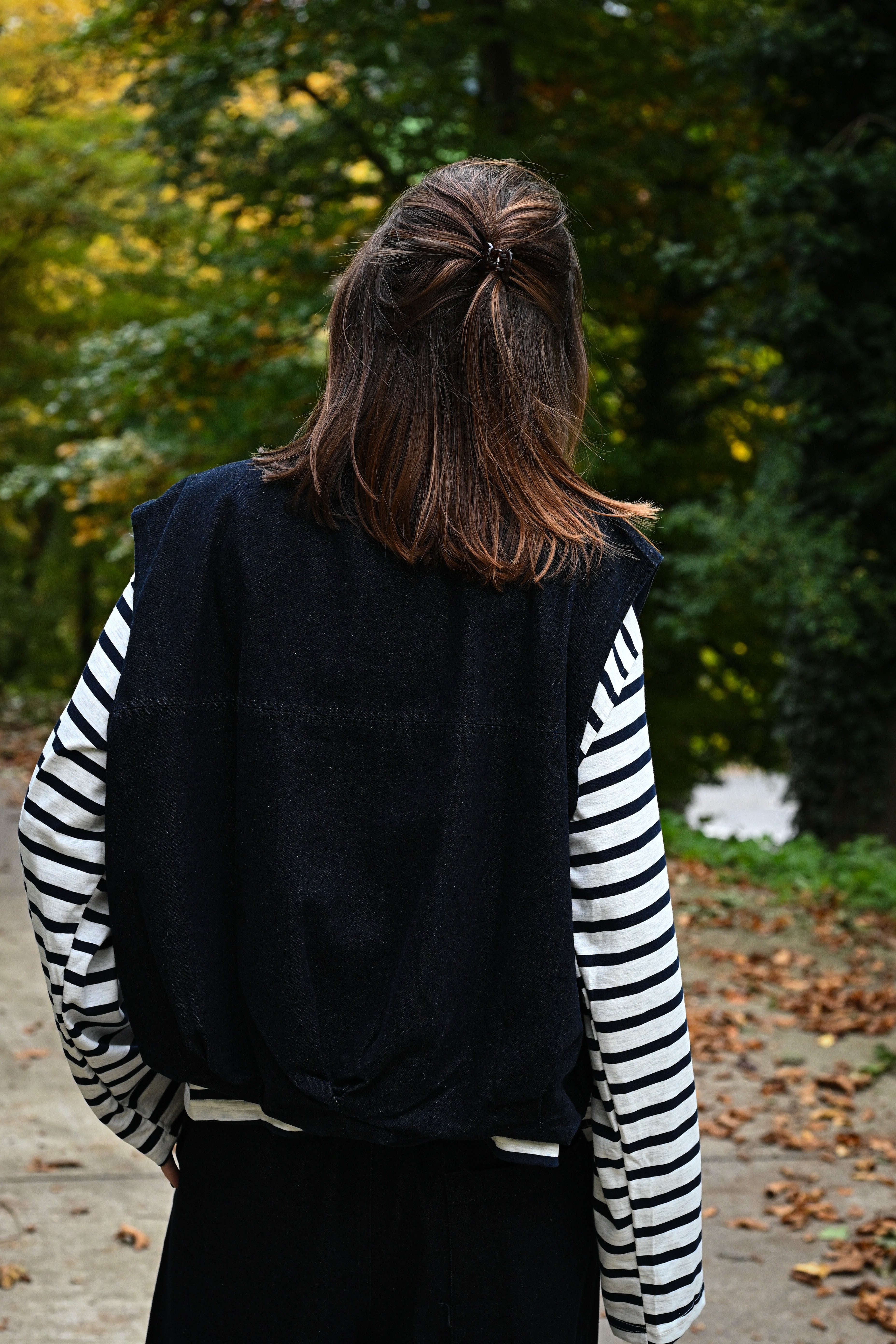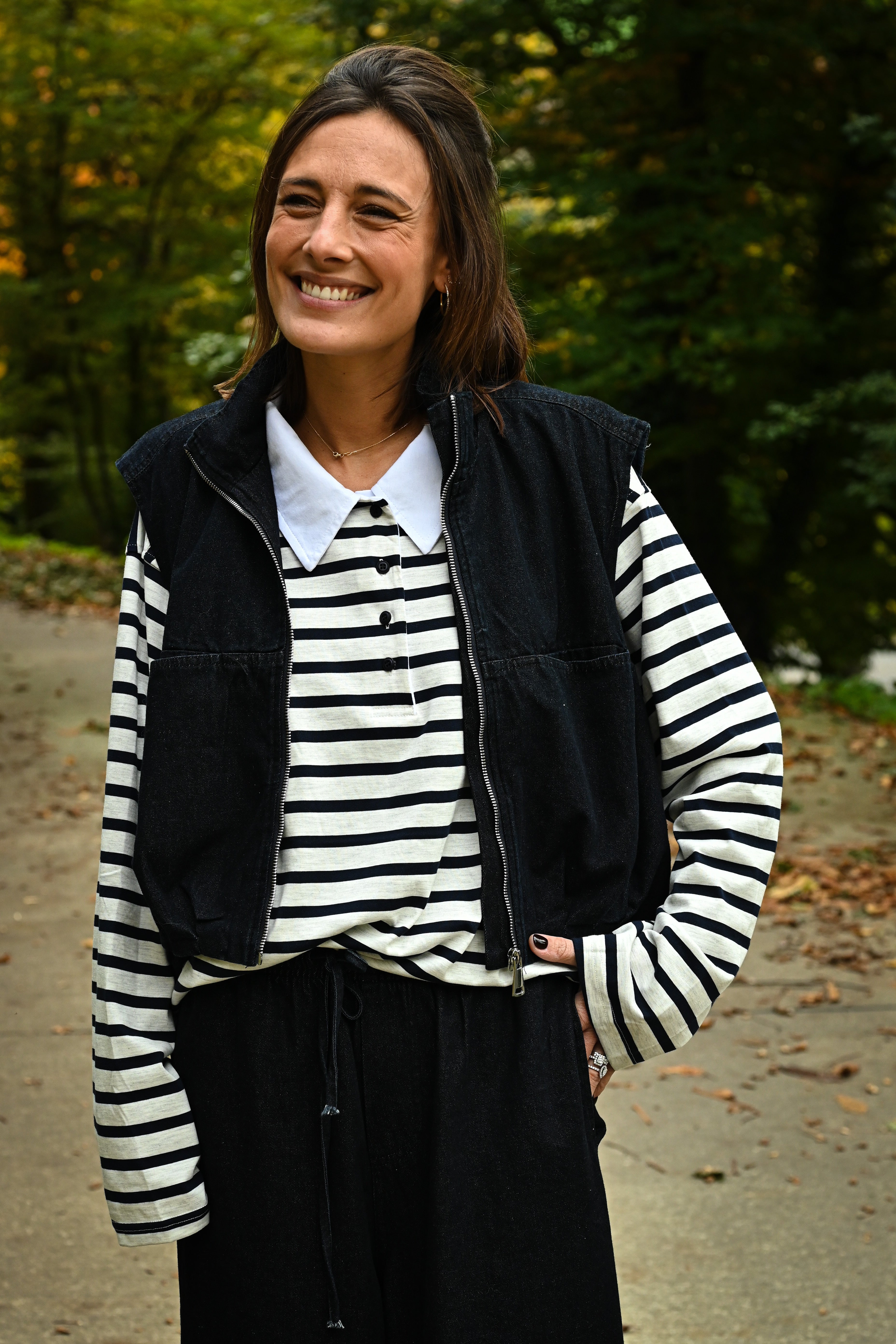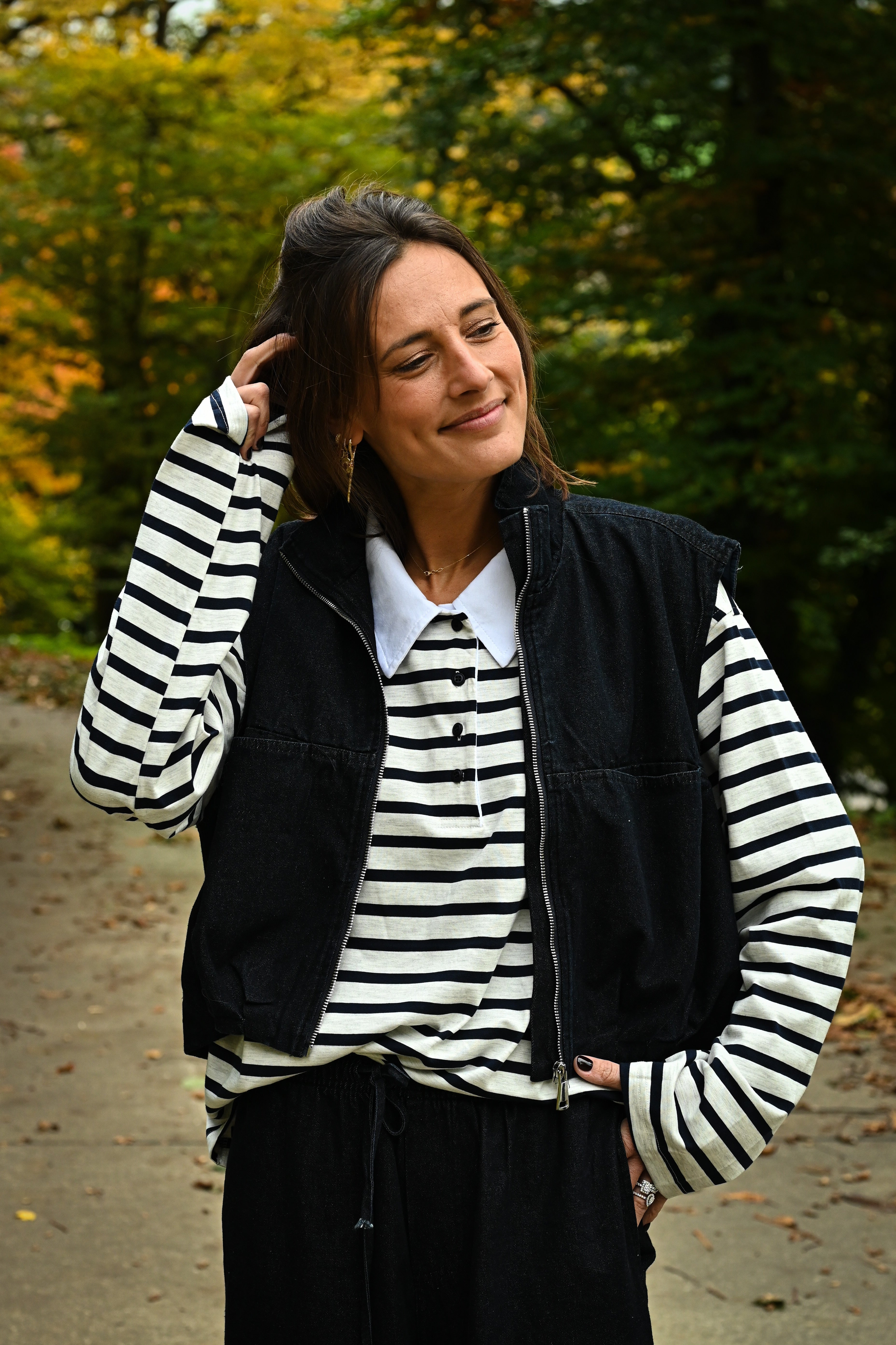 Cette veste sans manches zippée avec col montant présente une coupe légèrement bouffante, alliant style et confort. Elle est disponible en taille unique. Convient d'une taille 34 à 42.