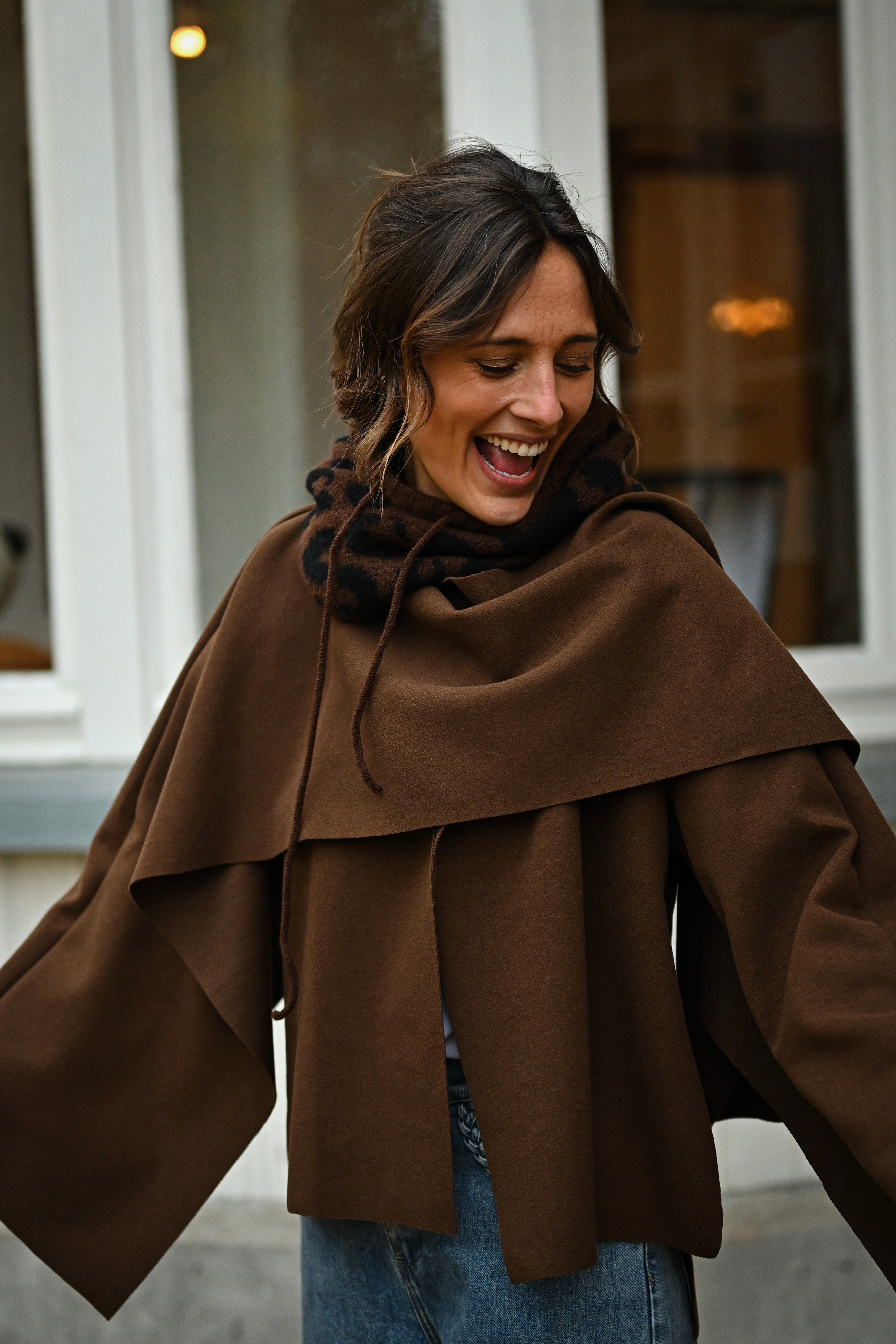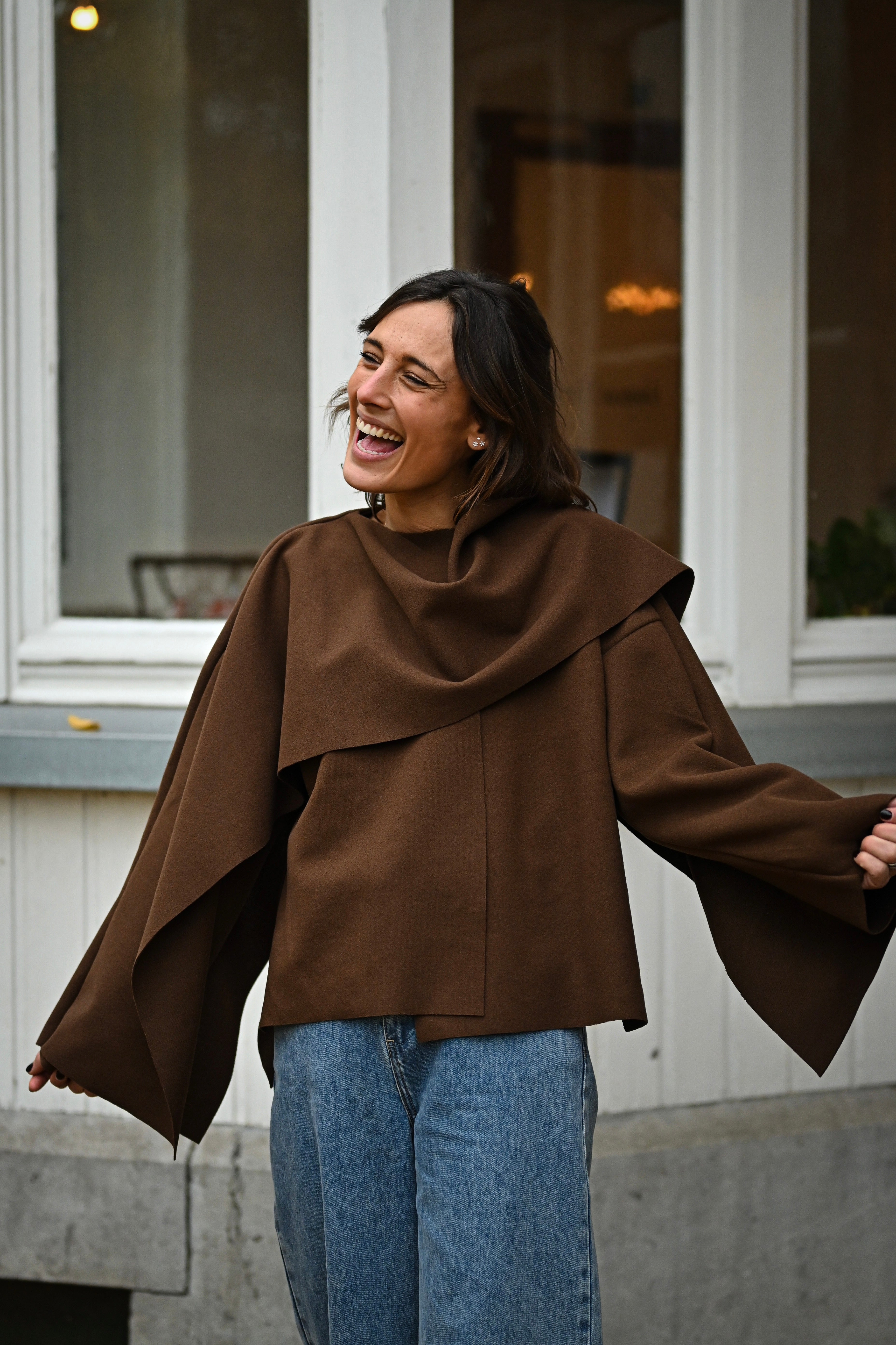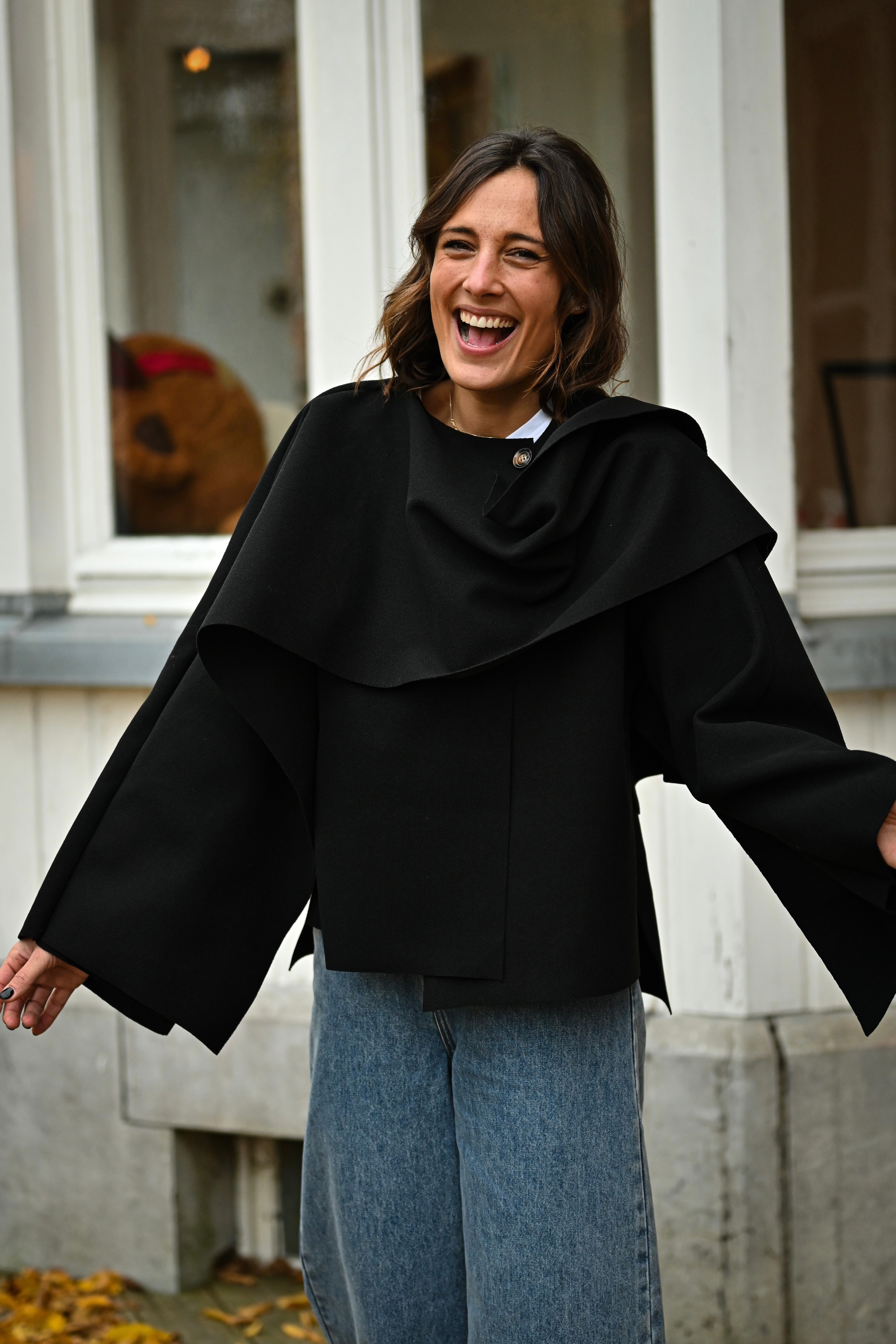 Découvrez la Veste MILA, une pièce incontournable qui allie style et polyvalence. Son design cape sophistiqué, agrémenté d'un rabat élégant au col, crée une silhouette flatteuse et intemporelle. Disponible en noir classique ou chocolat chaleureux, cette veste coupe généreuse s'adapte à toutes les morphologies. Parfaite pour sublimer vos tenues quotidiennes ou créer des looks plus affirmés, elle devient rapidement un basique indispensable de votre garde-robe.