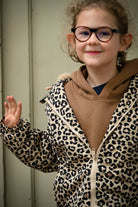 Cette veste imperméable, dotée d’une capuche et d’une doublure chaude, arbore un motif léopard tendance. Elle est idéale pour accompagner les enfants de 2-3 ans jusqu’à 12 ans avec style et confort.