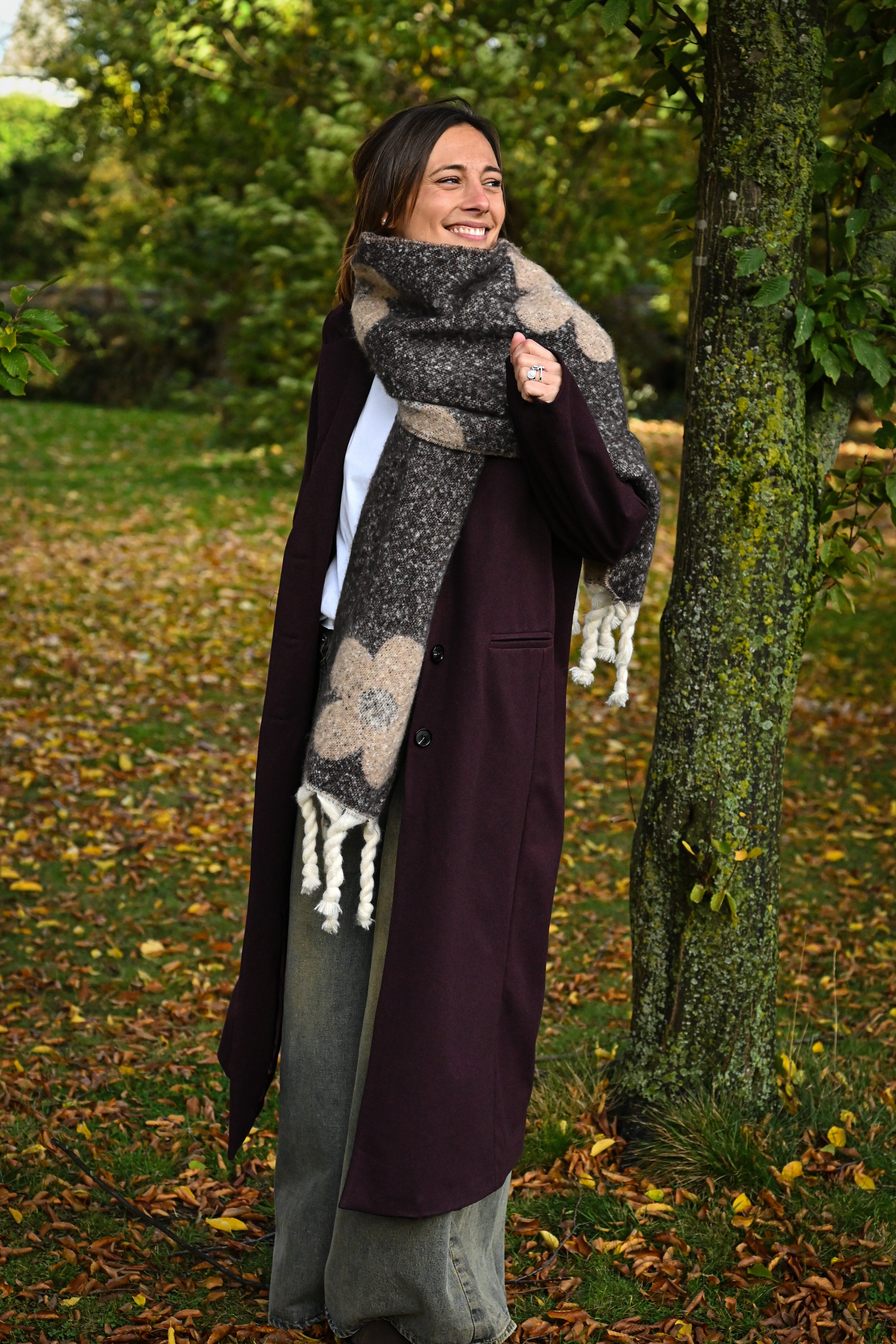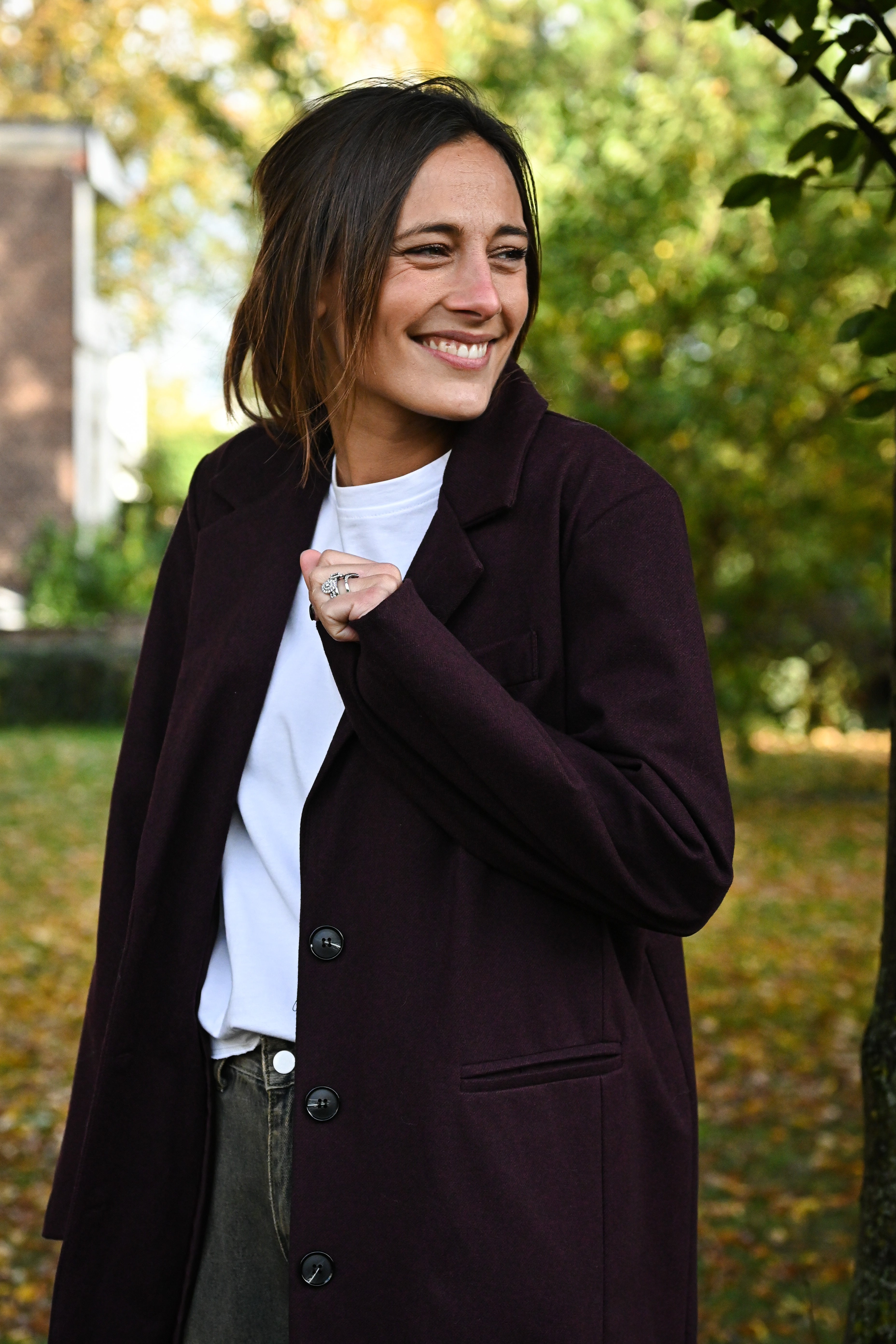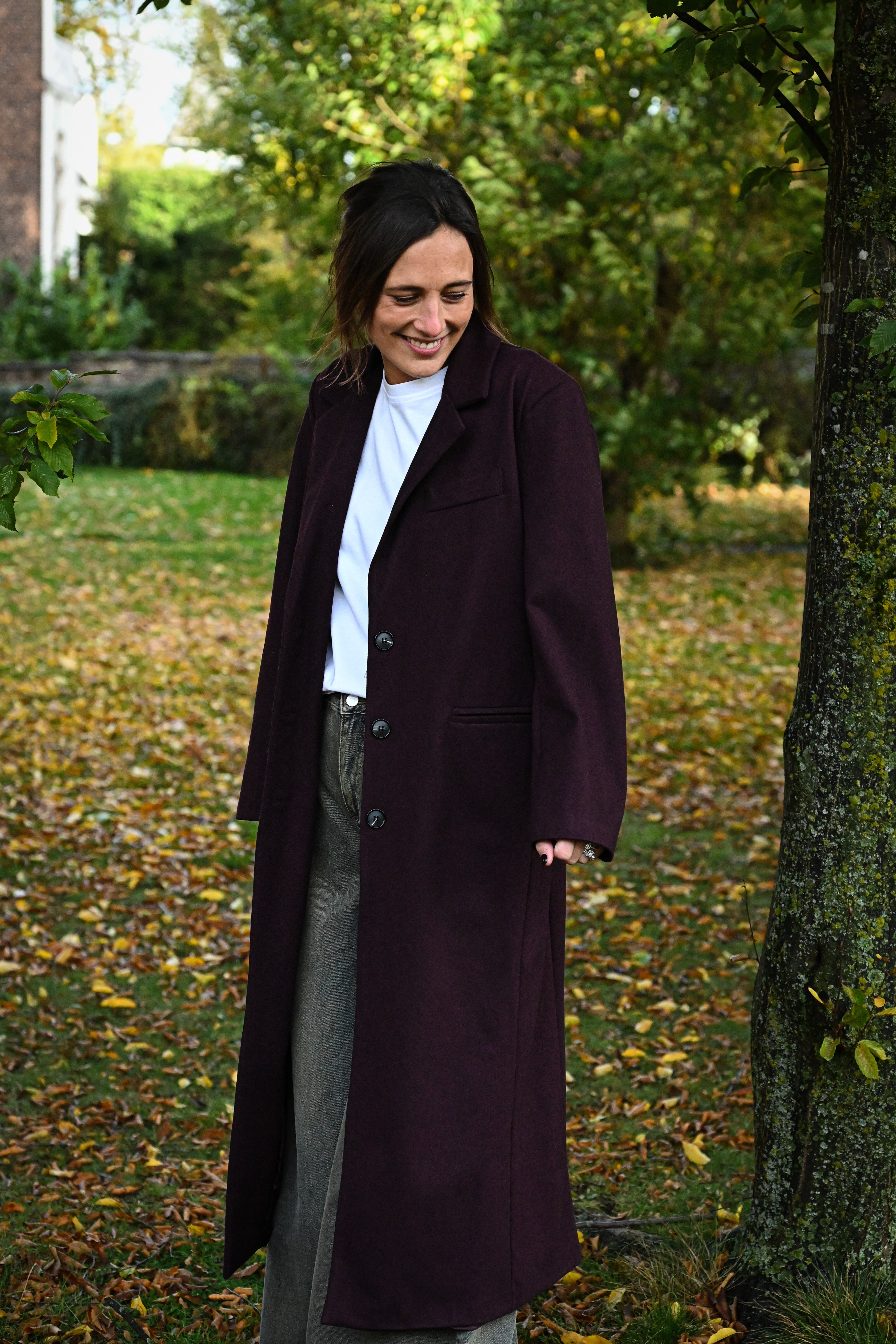Découvrez la veste SYLVIE, un manteau long en feutrine légère, doublé d’un élégant tissu bordeaux. Disponible en tailles S, M et L, il allie confort et style pour sublimer votre silhouette.